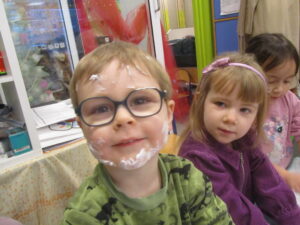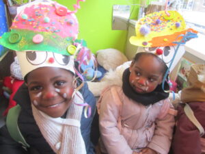 Ik maak van sneeuw een witte reus, sjaal, bezem, wortelneus. Op zijn hoofd een hoge hoed, dag meneer de sneeuwman, het staat je goed!