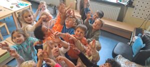Uitnodigingen, verjaardagskalenders en kronen maken, zingen, dansen, bellen blazen, ballonnen gooien,… Het waren twee feestelijke weken in onze klas !