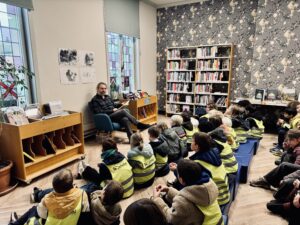 Tijdens de voorleeswandeling hebben de kinderen volop genoten van een reeks vrolijke en warme verhalen. Ze luisterden geboeid naar vertelsels over heerlijke chocolade, een drakeneiland…