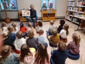 De kleuters van de 2de en 3de kleuterklas mochten op vrijdagnamiddag naar de bib. We leerden de bib een beetje beter kennen (pictogrammen), mochten memory…