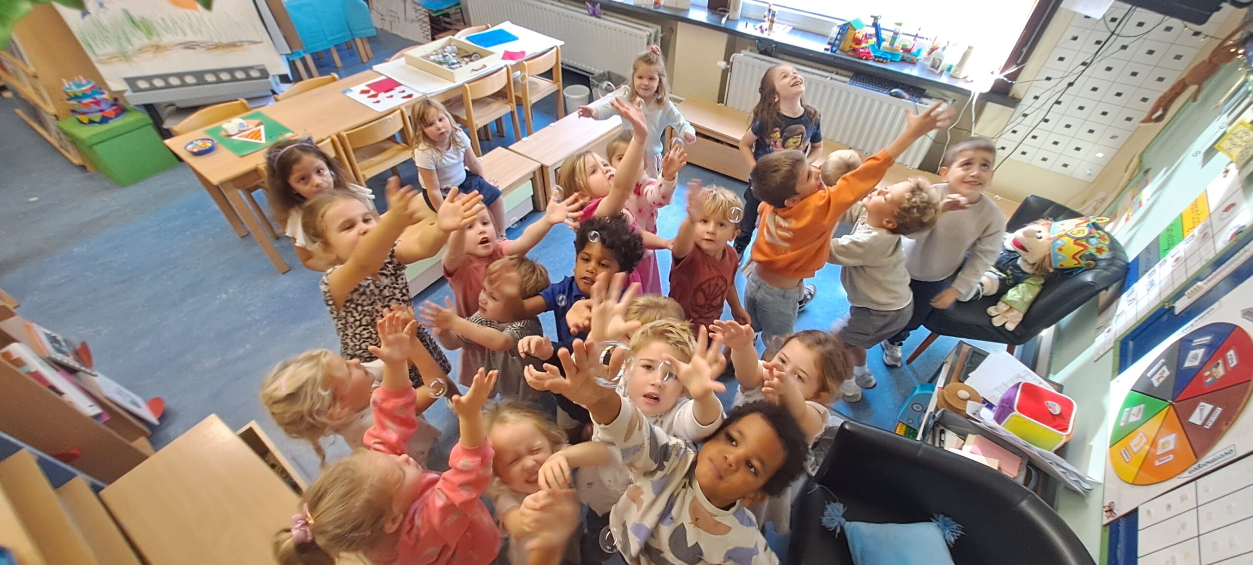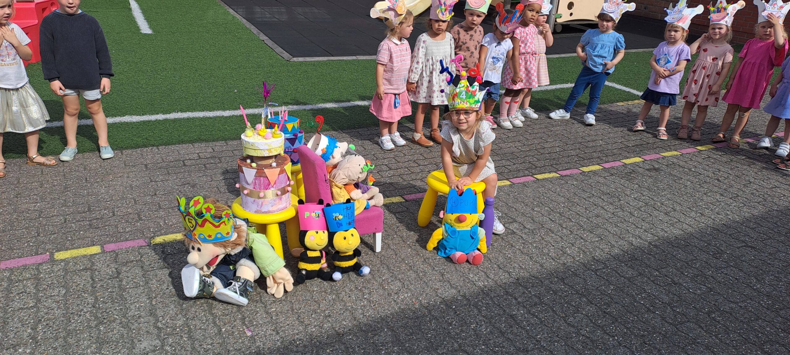 Uitnodigingen, verjaardagskalenders en kronen maken, zingen, dansen, bellen blazen, ballonnen gooien,… Het waren twee feestelijke weken in onze klas !