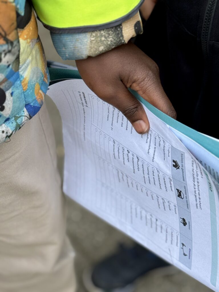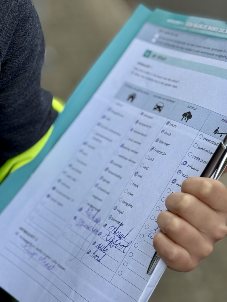 Vandaag verkenden we de buurt rond onze school. We moesten letten op heel veel zaken: