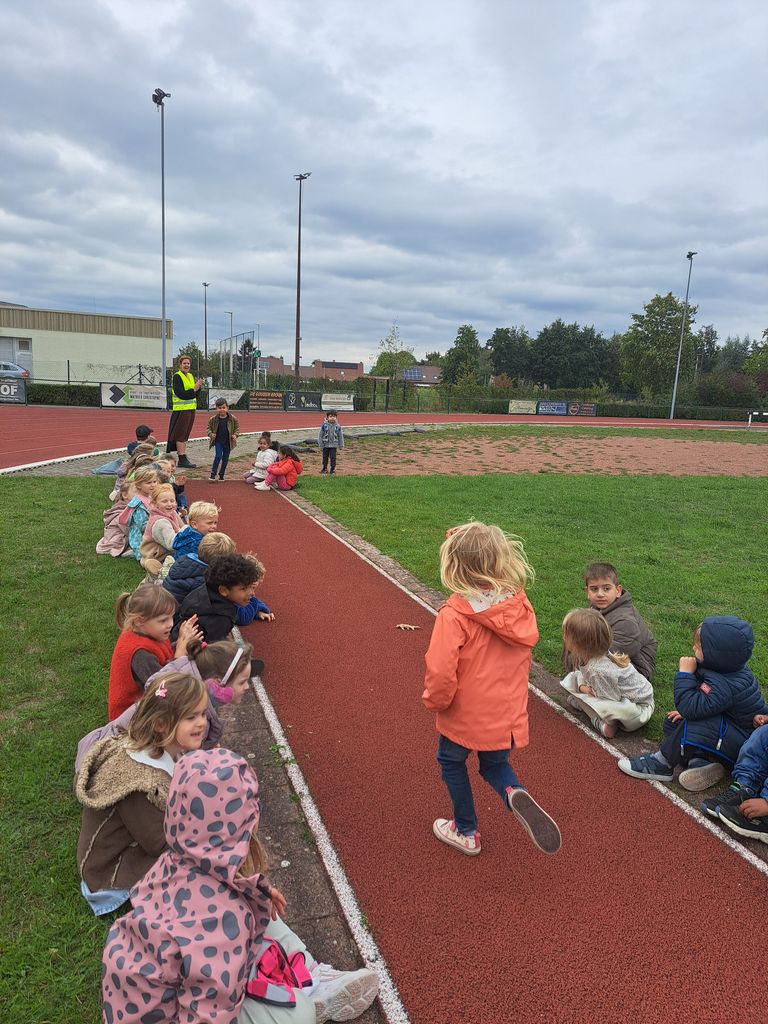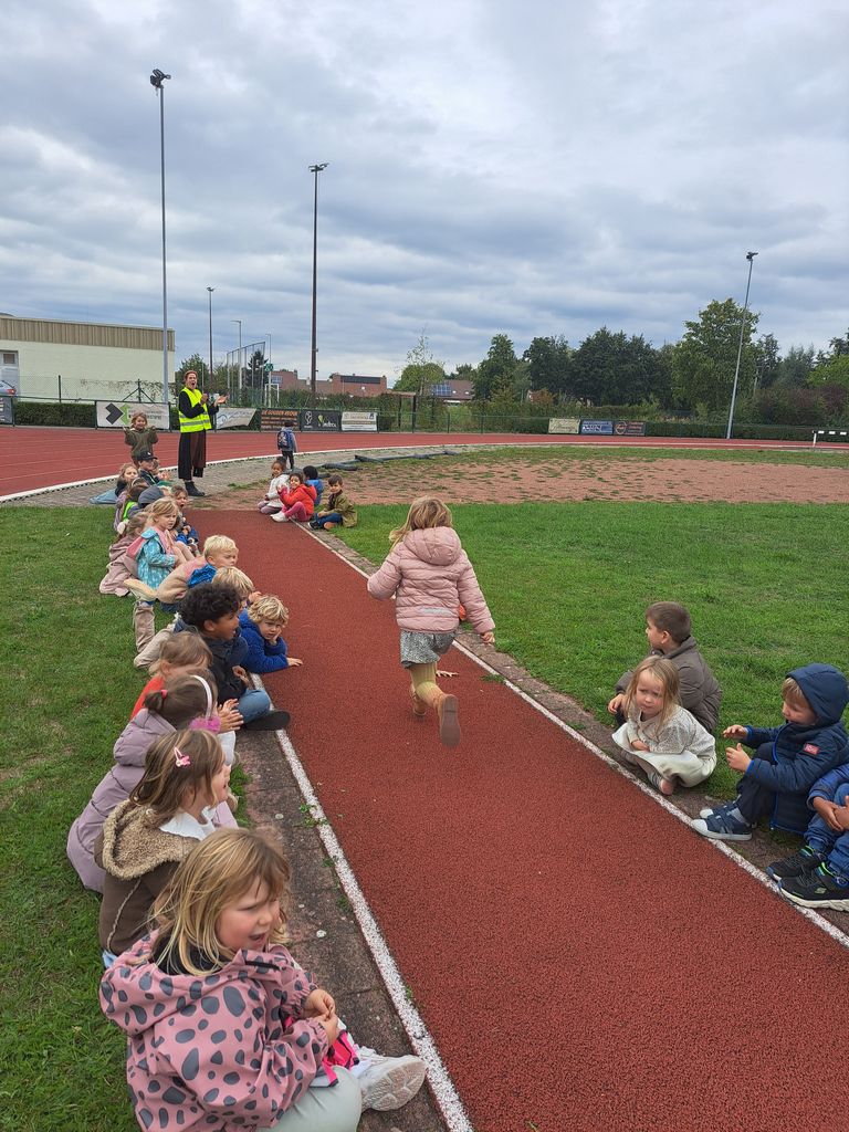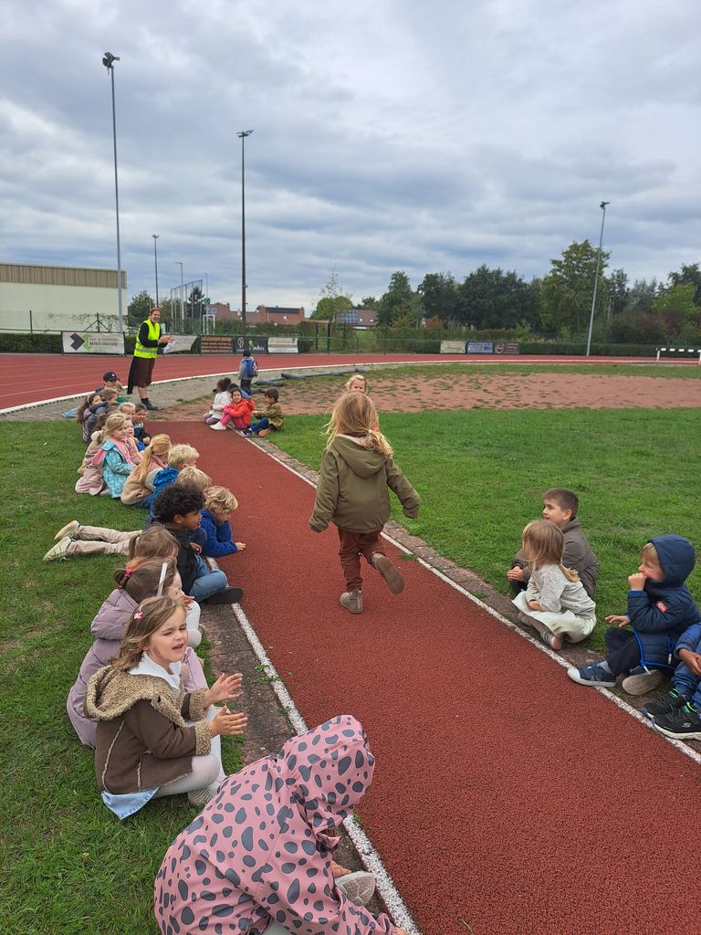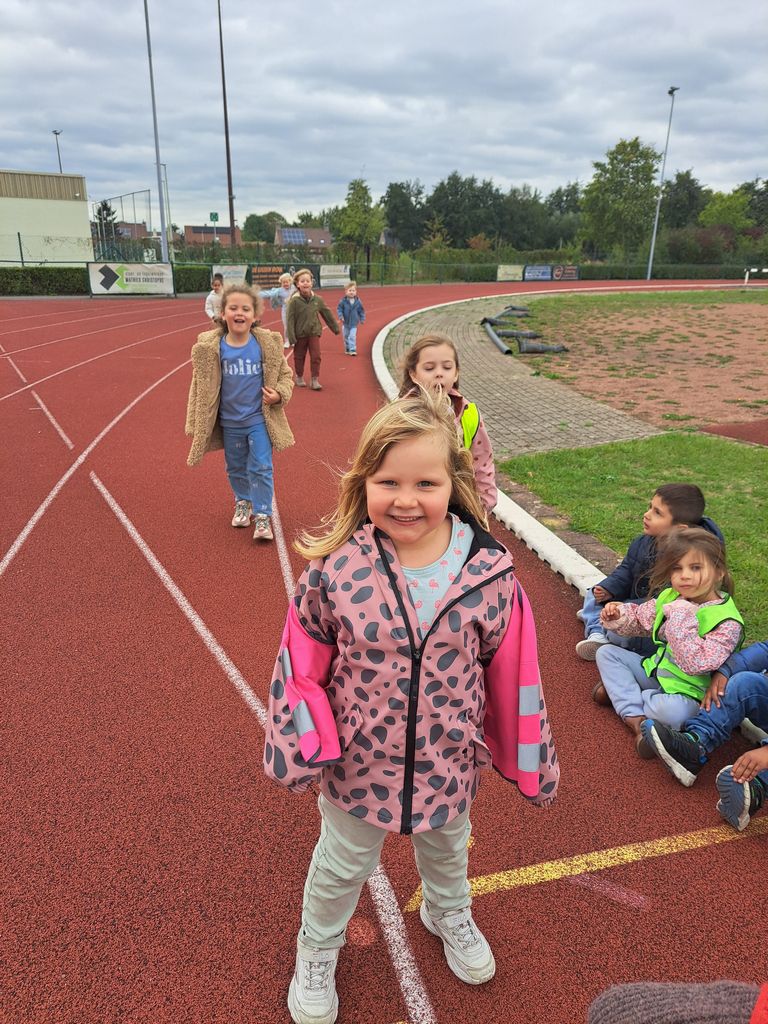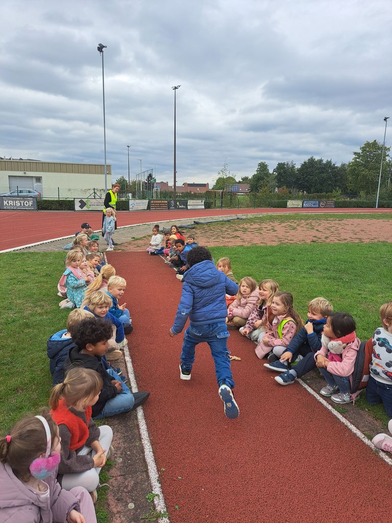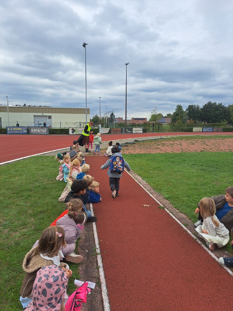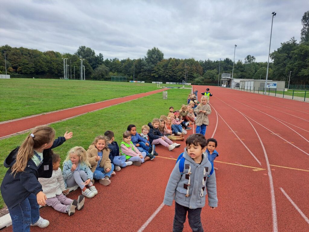 De kleuters van de vlinder- en kikkerklas trokken er afgelopen donderdag op uit. We stapten flink richting de Hoge Wal om de atletiekpiste eens van dicht te bekijken. De kleuters konden een rondje lopen van 400m! Bijna alle kinderen hebben het volledige rondje gelopen! De juffen waren trots! Proficiat aan Göktug die als eerste over de finishlijn liep! Daarna oefende we eens op verspringen en keken we wie het verste zou geraken. Nadat alle kindjes een poging waagden, konden we June uitroepen tot de grote winnares! Proficiat! Om af te sluiten, speelden we nog even op de speeltuin om daarna onze wandeltocht naar school aan te zetten.