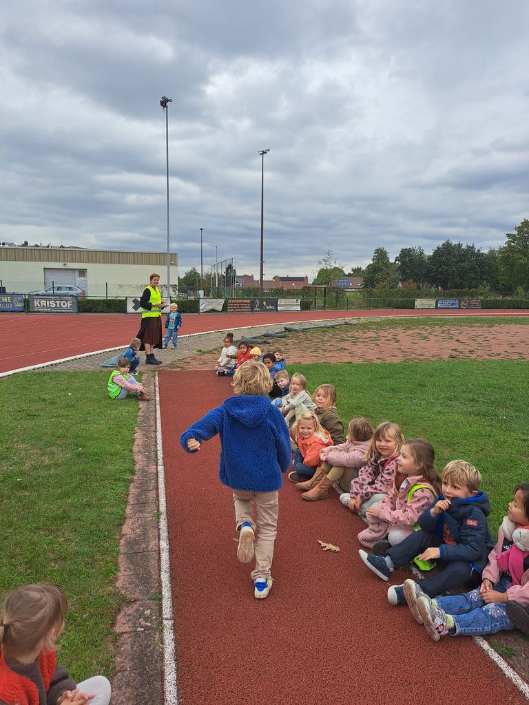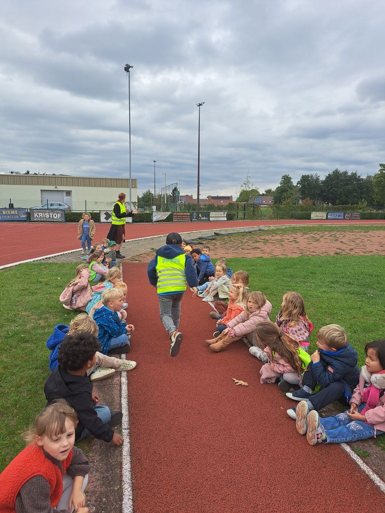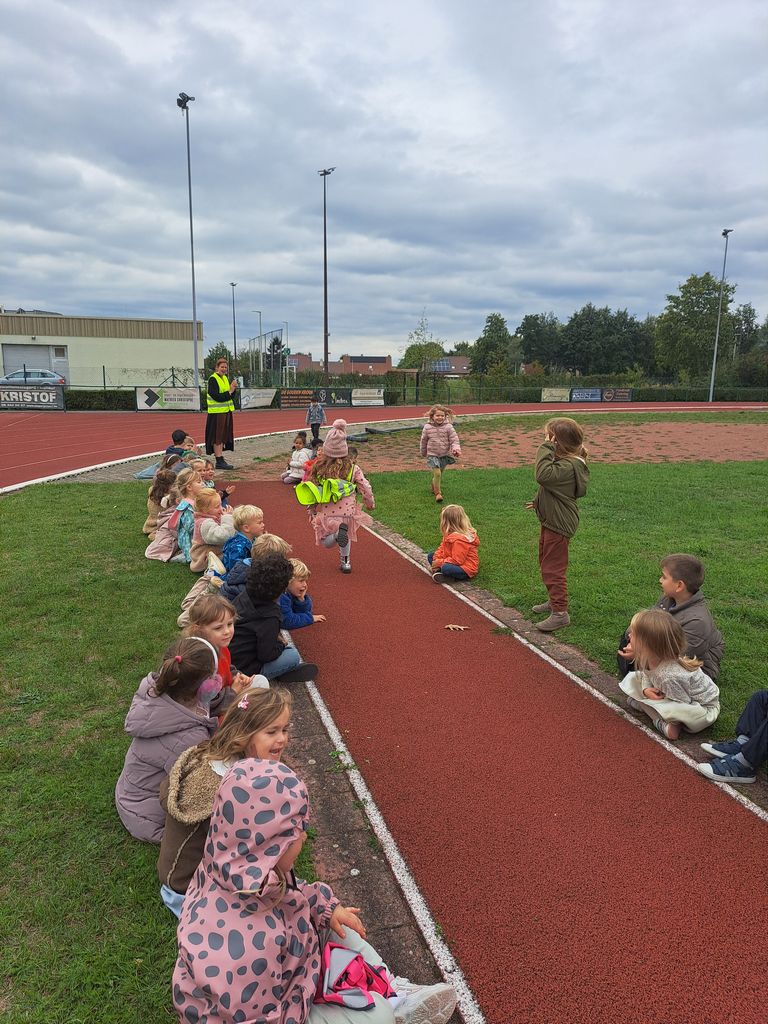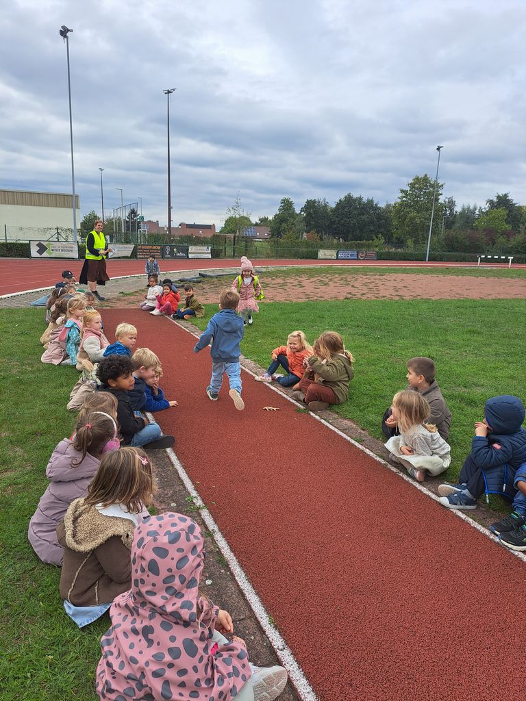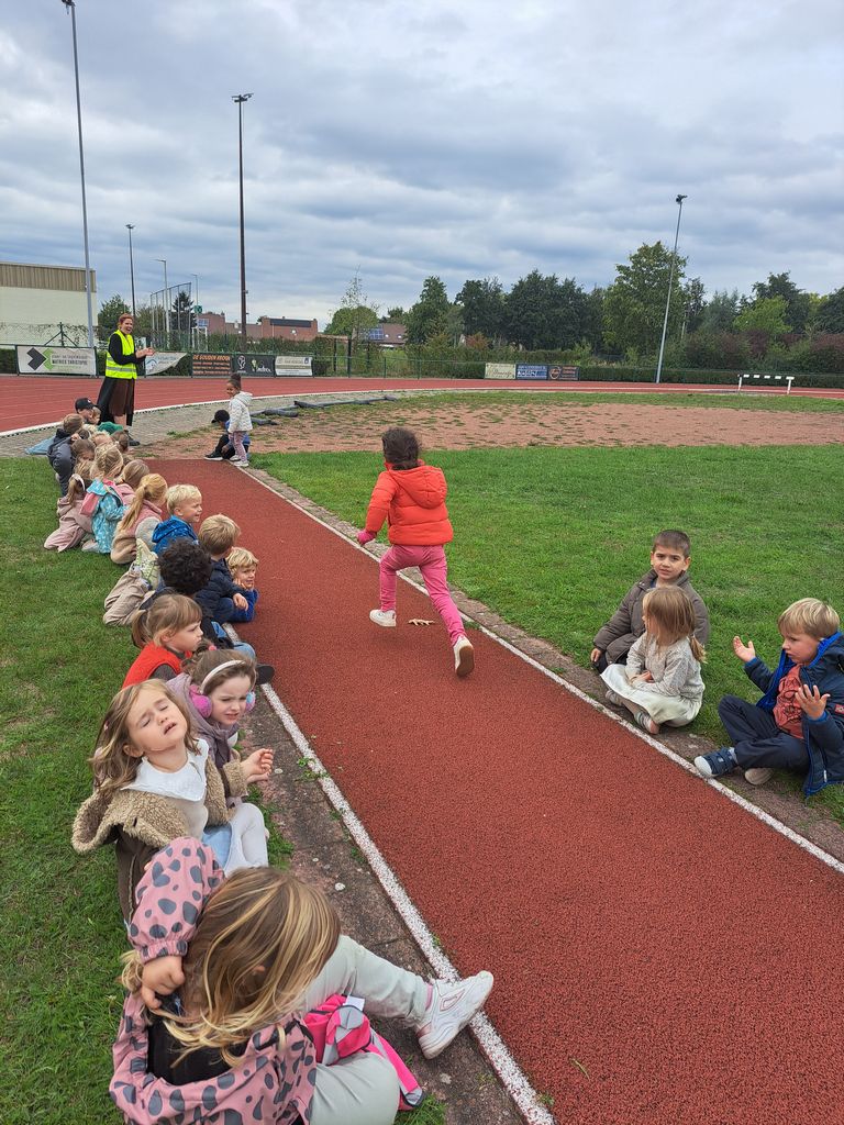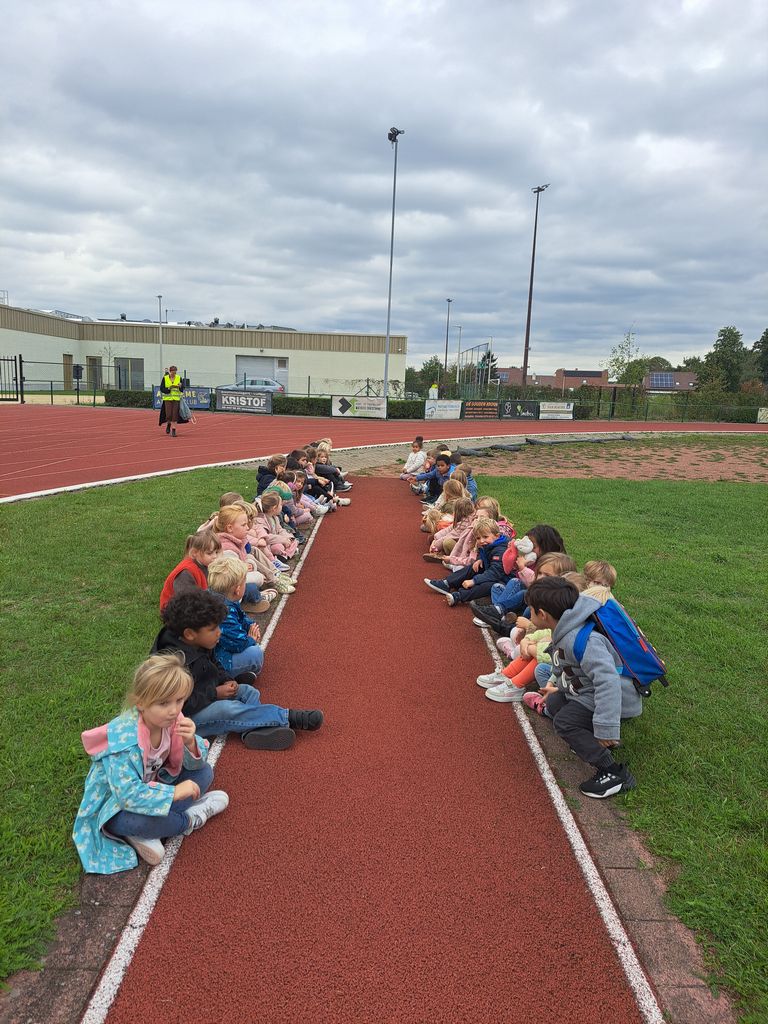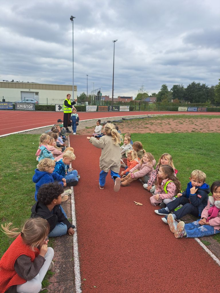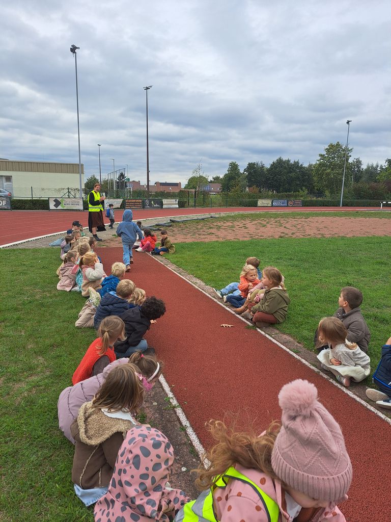 De kleuters van de vlinder- en kikkerklas trokken er afgelopen donderdag op uit. We stapten flink richting de Hoge Wal om de atletiekpiste eens van dicht te bekijken. De kleuters konden een rondje lopen van 400m! Bijna alle kinderen hebben het volledige rondje gelopen! De juffen waren trots! Proficiat aan Göktug die als eerste over de finishlijn liep! Daarna oefende we eens op verspringen en keken we wie het verste zou geraken. Nadat alle kindjes een poging waagden, konden we June uitroepen tot de grote winnares! Proficiat! Om af te sluiten, speelden we nog even op de speeltuin om daarna onze wandeltocht naar school aan te zetten.