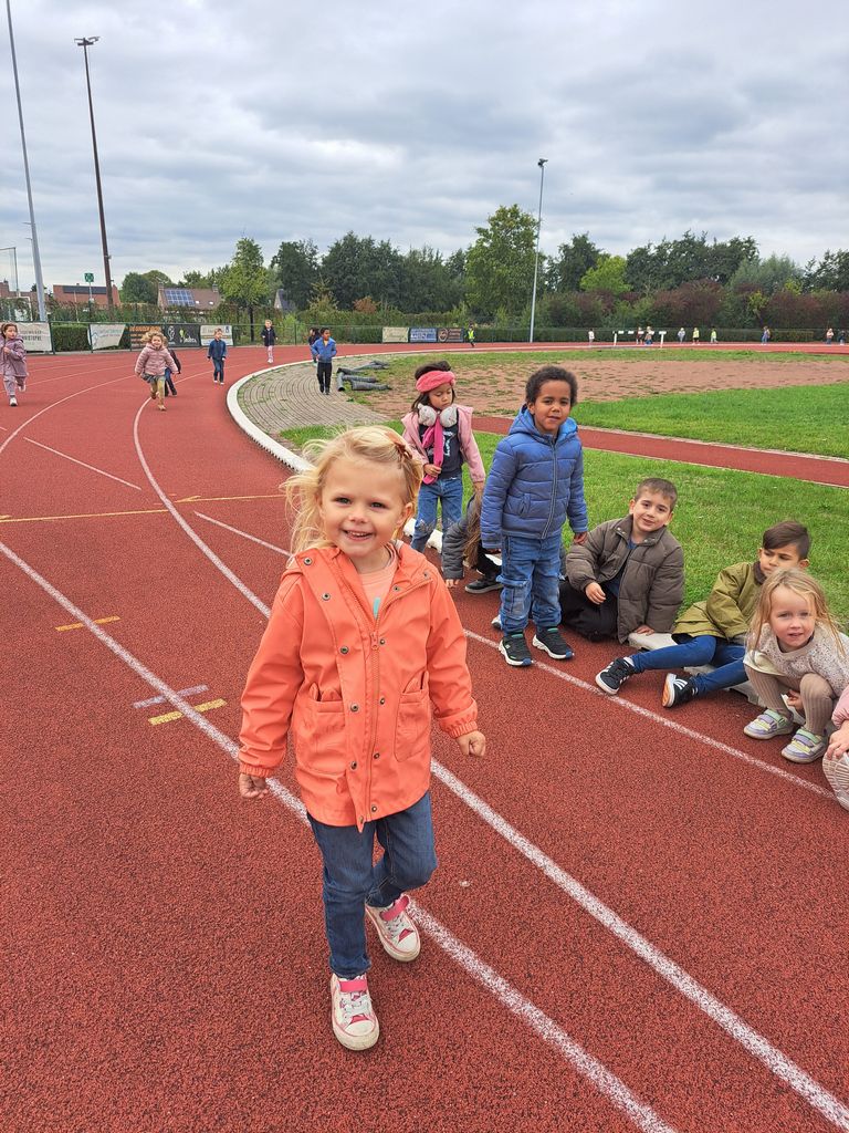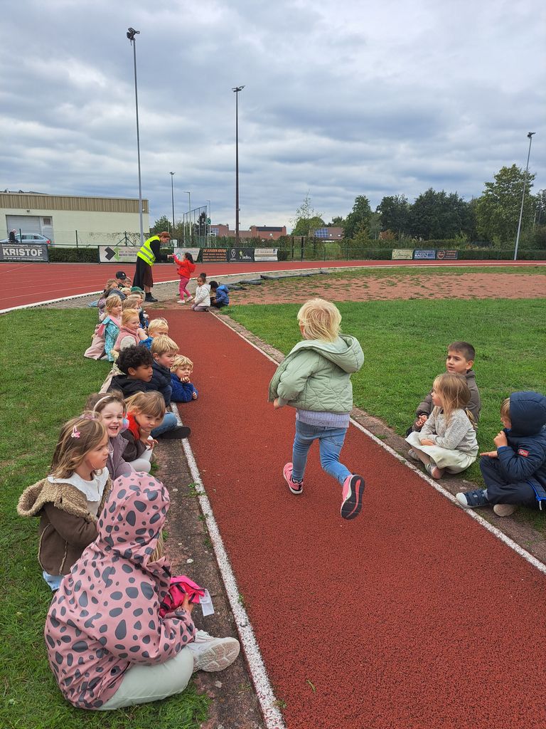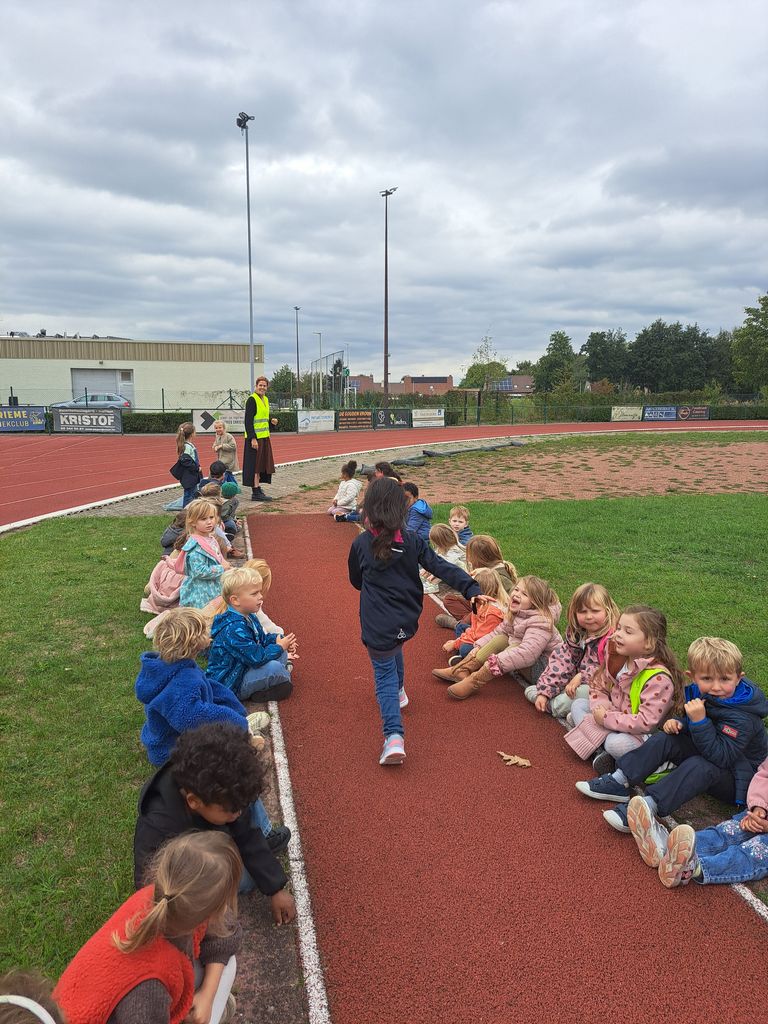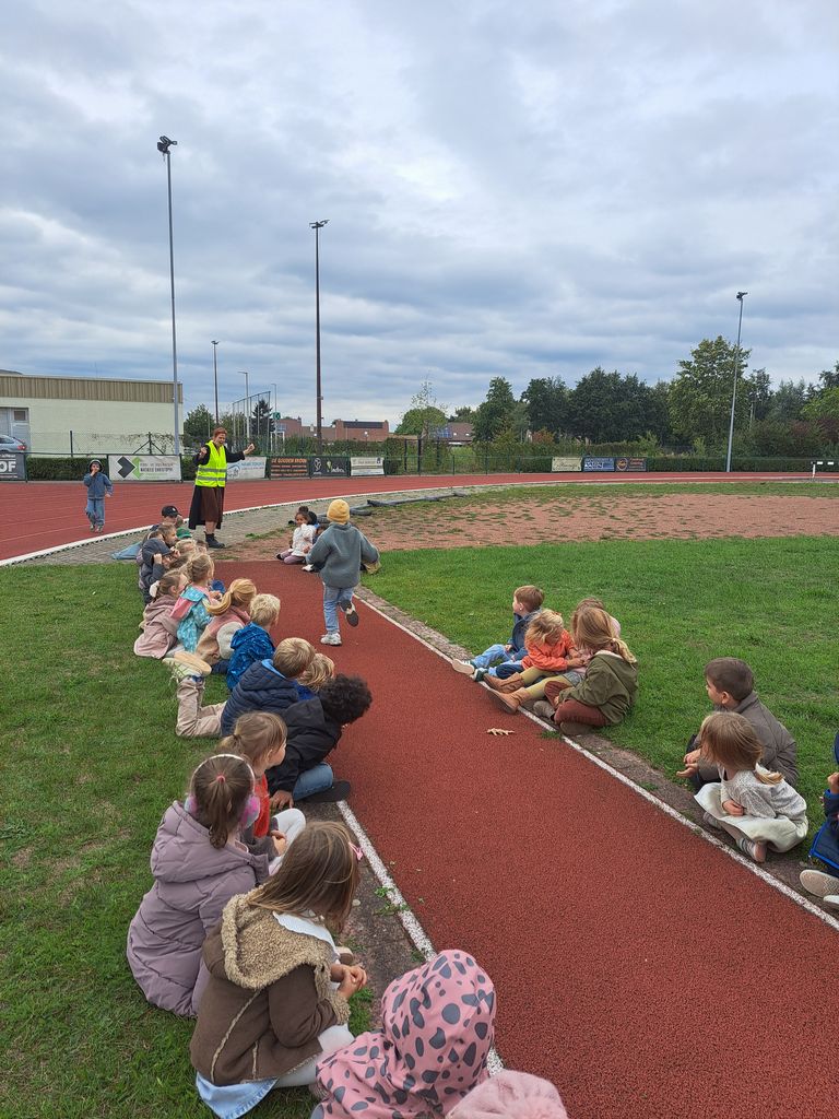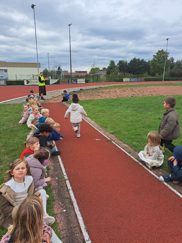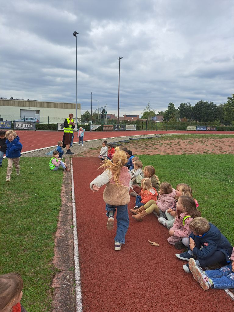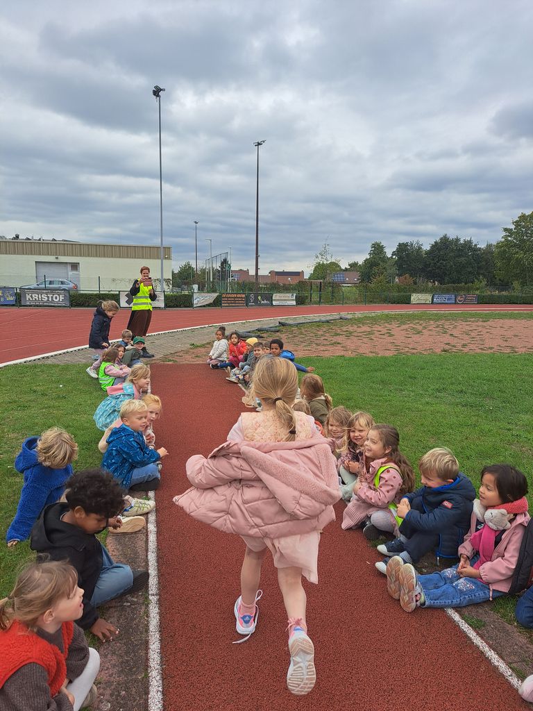 De kleuters van de vlinder- en kikkerklas trokken er afgelopen donderdag op uit. We stapten flink richting de Hoge Wal om de atletiekpiste eens van dicht te bekijken. De kleuters konden een rondje lopen van 400m! Bijna alle kinderen hebben het volledige rondje gelopen! De juffen waren trots! Proficiat aan Göktug die als eerste over de finishlijn liep! Daarna oefende we eens op verspringen en keken we wie het verste zou geraken. Nadat alle kindjes een poging waagden, konden we June uitroepen tot de grote winnares! Proficiat! Om af te sluiten, speelden we nog even op de speeltuin om daarna onze wandeltocht naar school aan te zetten.