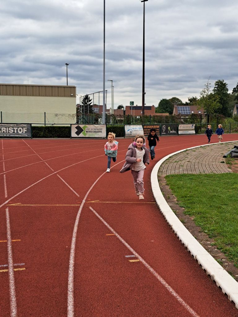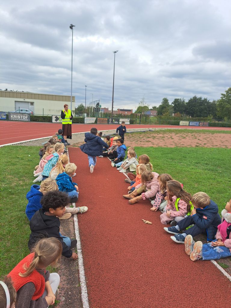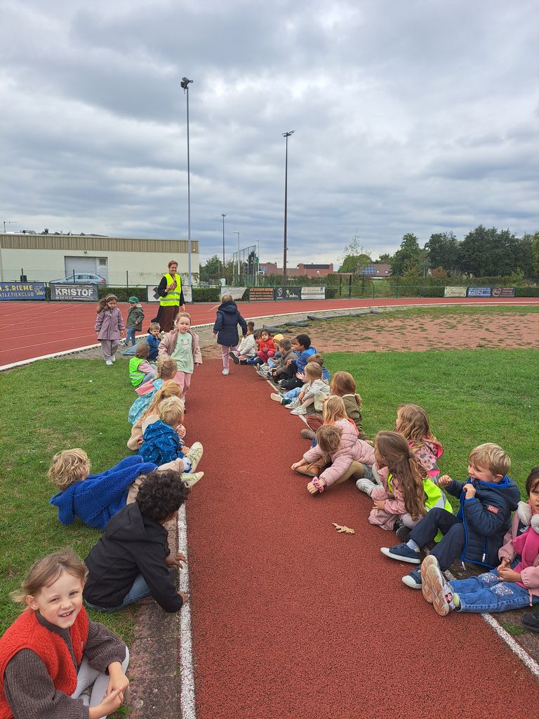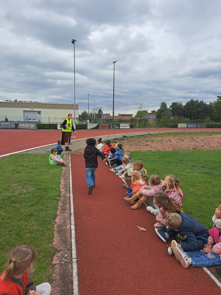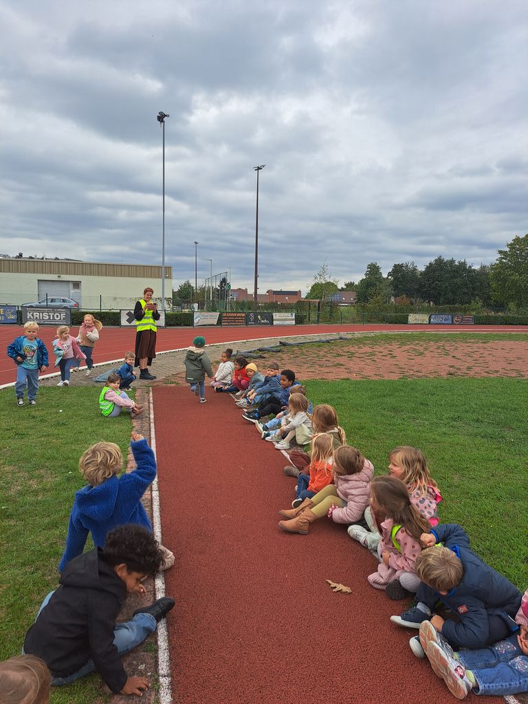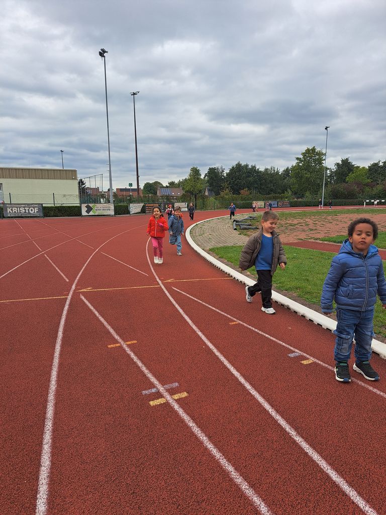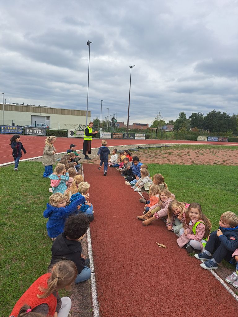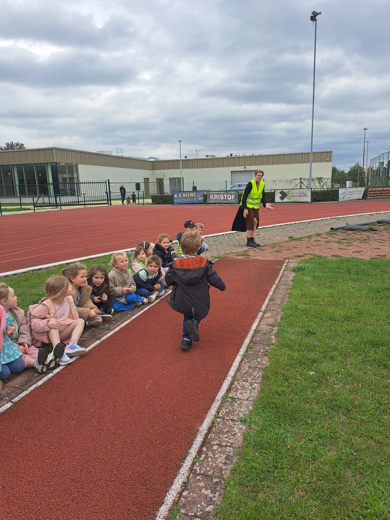 De kleuters van de vlinder- en kikkerklas trokken er afgelopen donderdag op uit. We stapten flink richting de Hoge Wal om de atletiekpiste eens van dicht te bekijken. De kleuters konden een rondje lopen van 400m! Bijna alle kinderen hebben het volledige rondje gelopen! De juffen waren trots! Proficiat aan Göktug die als eerste over de finishlijn liep! Daarna oefende we eens op verspringen en keken we wie het verste zou geraken. Nadat alle kindjes een poging waagden, konden we June uitroepen tot de grote winnares! Proficiat! Om af te sluiten, speelden we nog even op de speeltuin om daarna onze wandeltocht naar school aan te zetten.