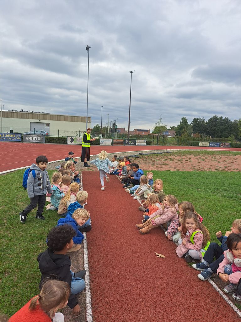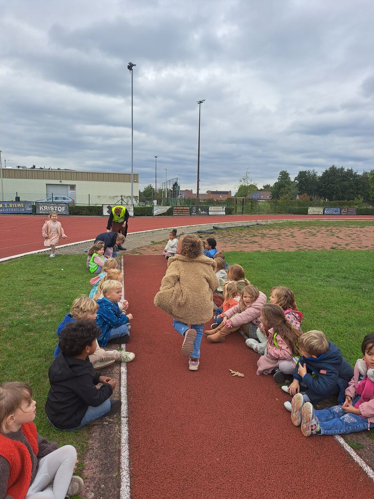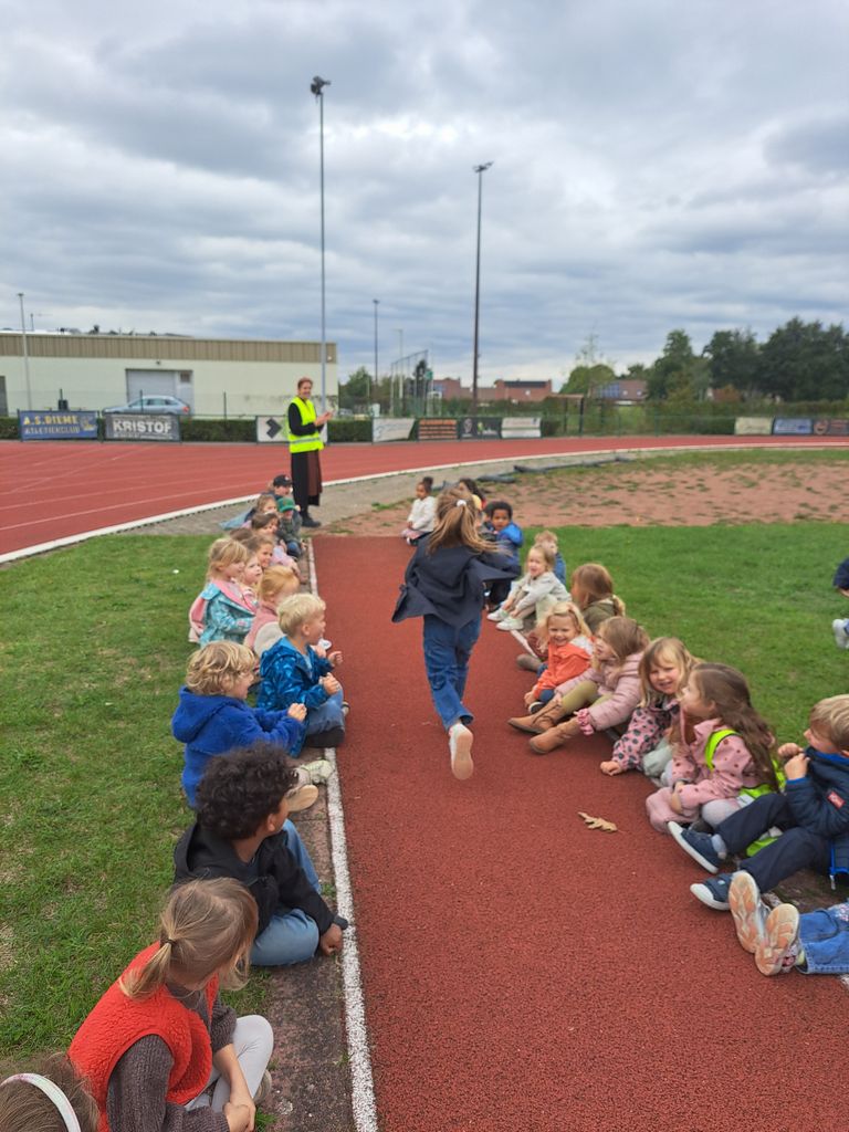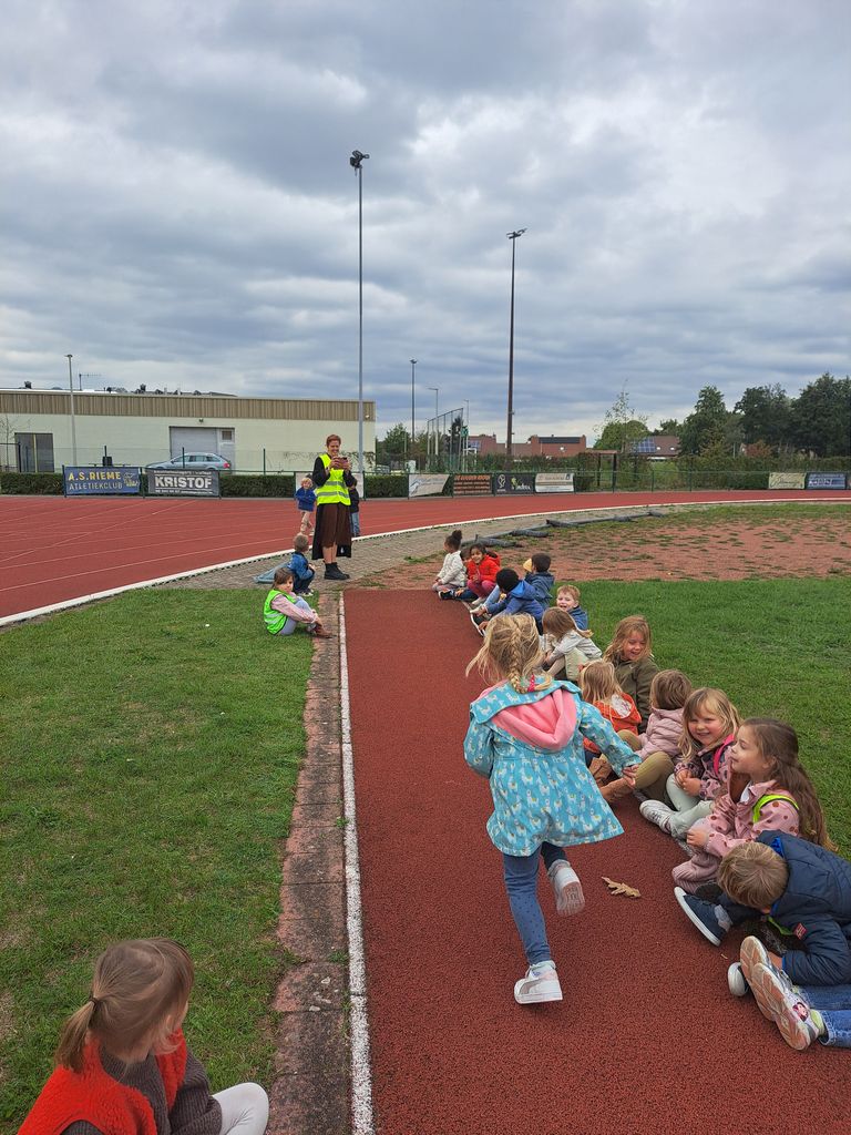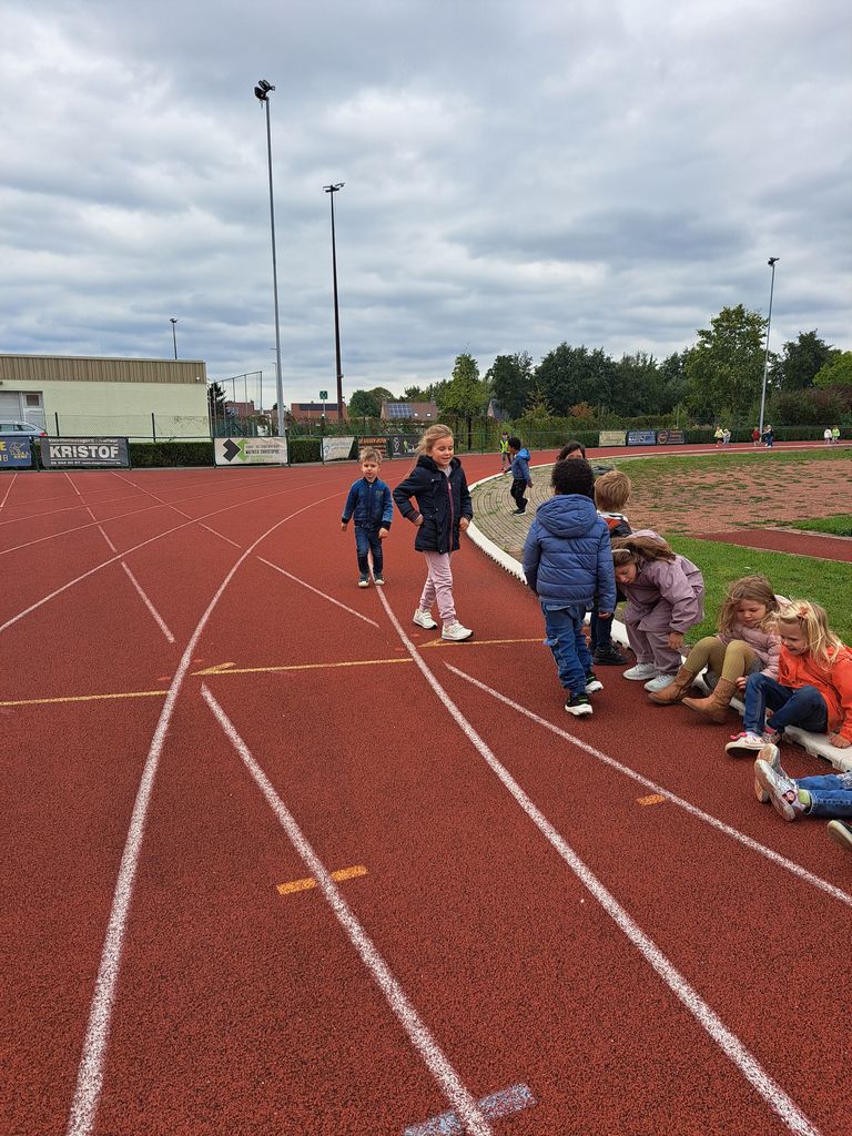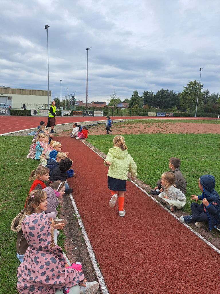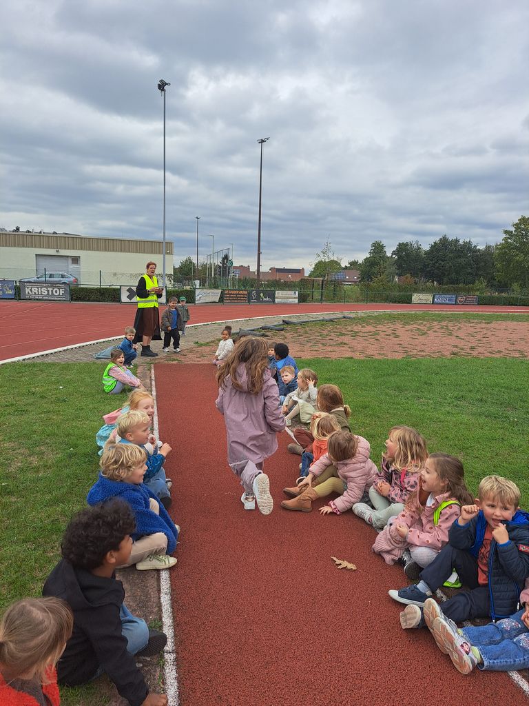 De kleuters van de vlinder- en kikkerklas trokken er afgelopen donderdag op uit. We stapten flink richting de Hoge Wal om de atletiekpiste eens van dicht te bekijken. De kleuters konden een rondje lopen van 400m! Bijna alle kinderen hebben het volledige rondje gelopen! De juffen waren trots! Proficiat aan Göktug die als eerste over de finishlijn liep! Daarna oefende we eens op verspringen en keken we wie het verste zou geraken. Nadat alle kindjes een poging waagden, konden we June uitroepen tot de grote winnares! Proficiat! Om af te sluiten, speelden we nog even op de speeltuin om daarna onze wandeltocht naar school aan te zetten.