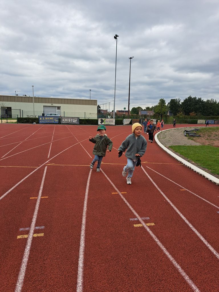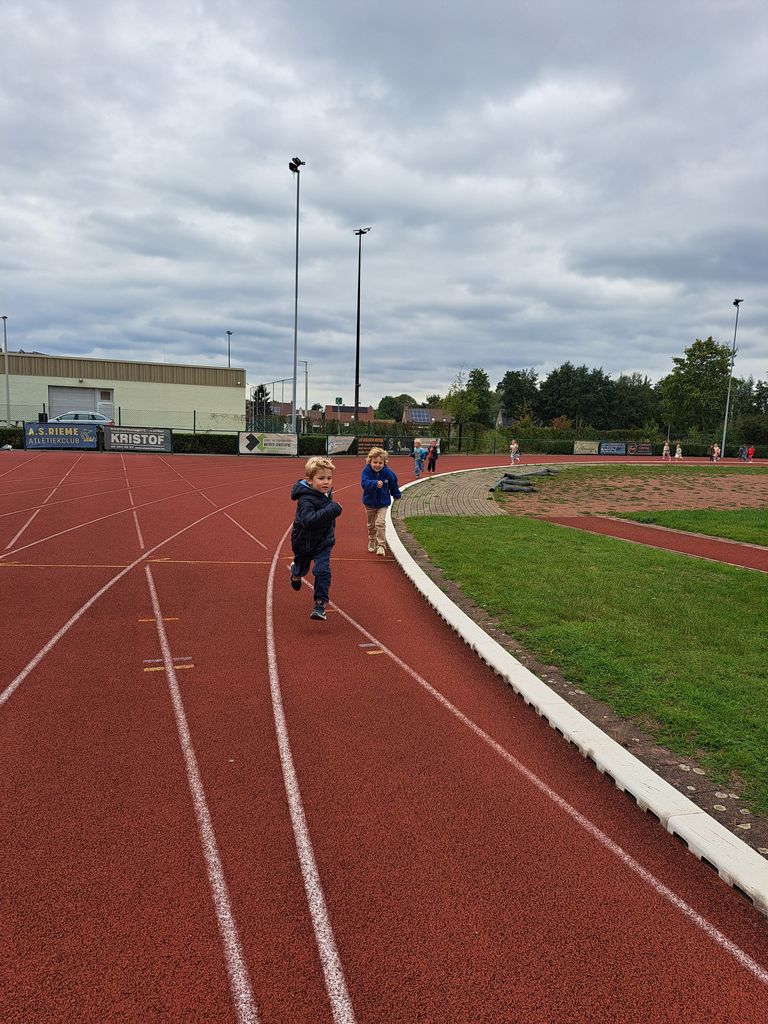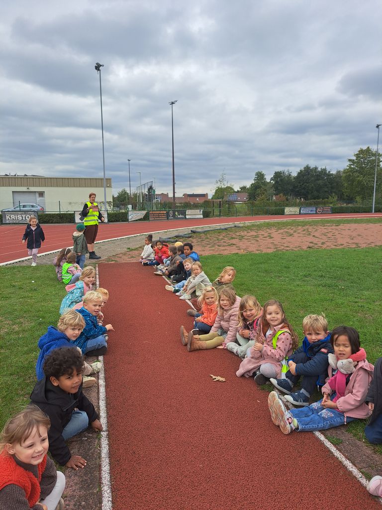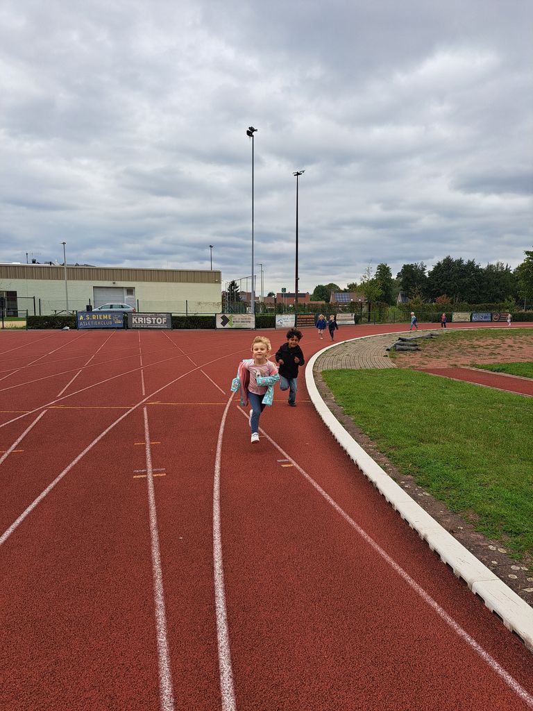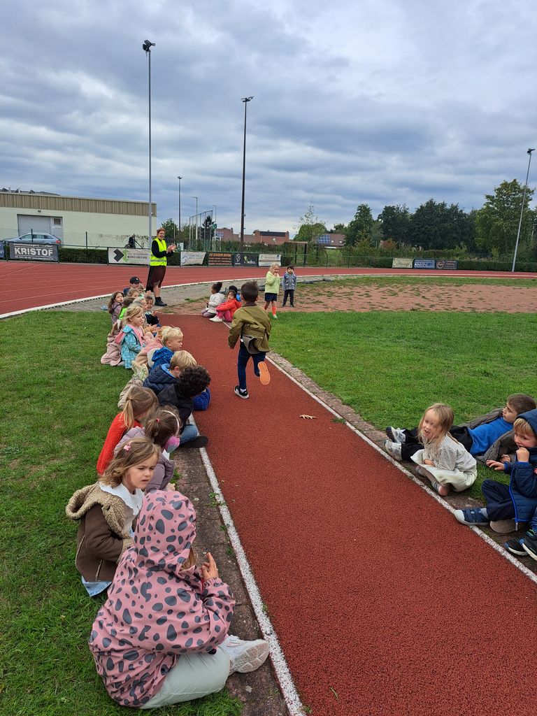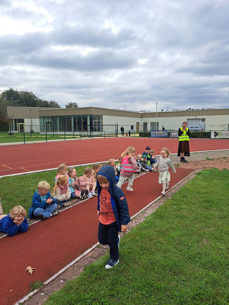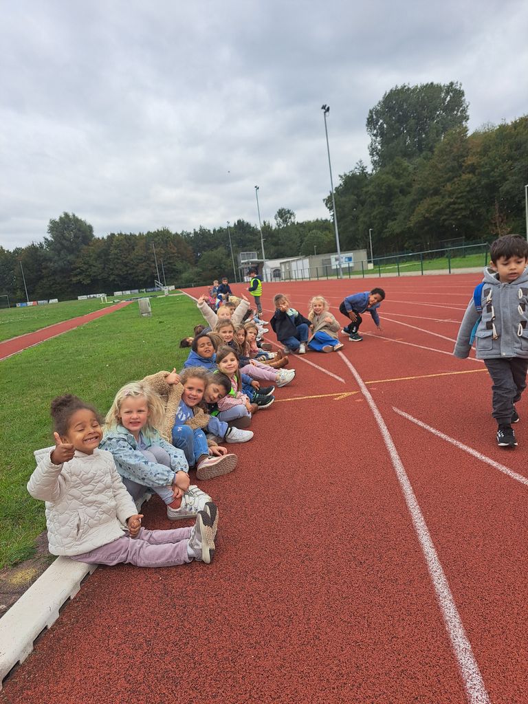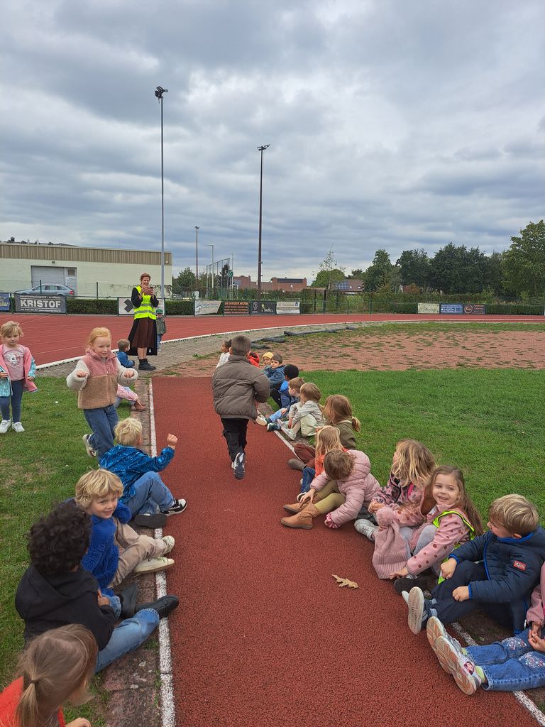 De kleuters van de vlinder- en kikkerklas trokken er afgelopen donderdag op uit. We stapten flink richting de Hoge Wal om de atletiekpiste eens van dicht te bekijken. De kleuters konden een rondje lopen van 400m! Bijna alle kinderen hebben het volledige rondje gelopen! De juffen waren trots! Proficiat aan Göktug die als eerste over de finishlijn liep! Daarna oefende we eens op verspringen en keken we wie het verste zou geraken. Nadat alle kindjes een poging waagden, konden we June uitroepen tot de grote winnares! Proficiat! Om af te sluiten, speelden we nog even op de speeltuin om daarna onze wandeltocht naar school aan te zetten.
