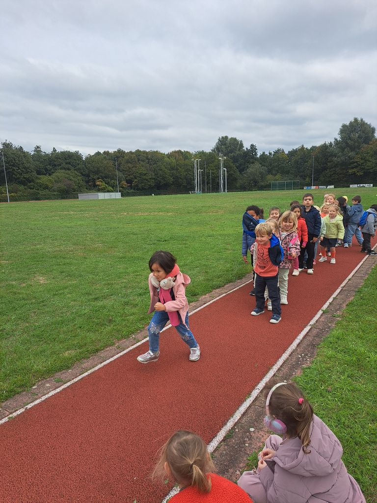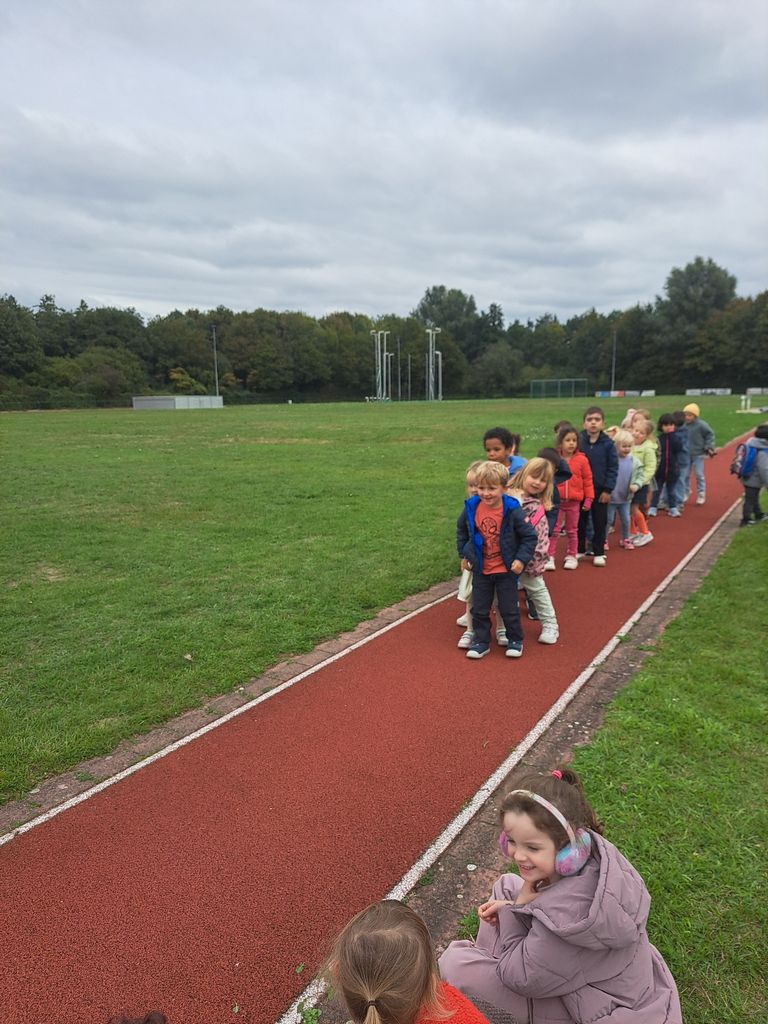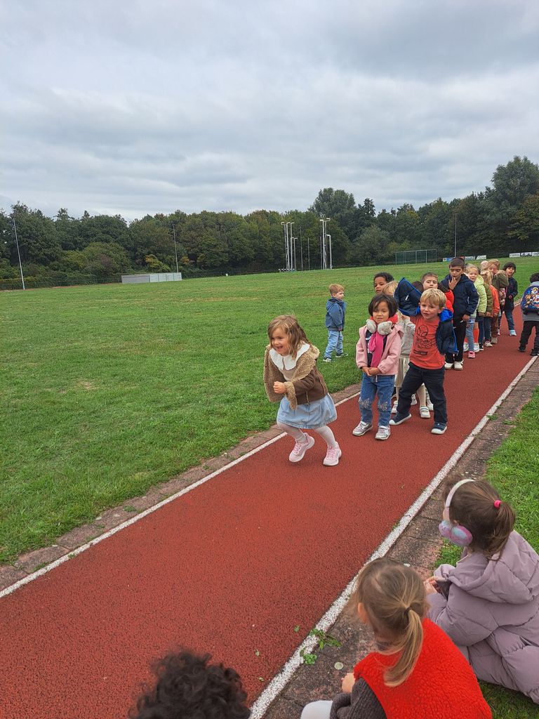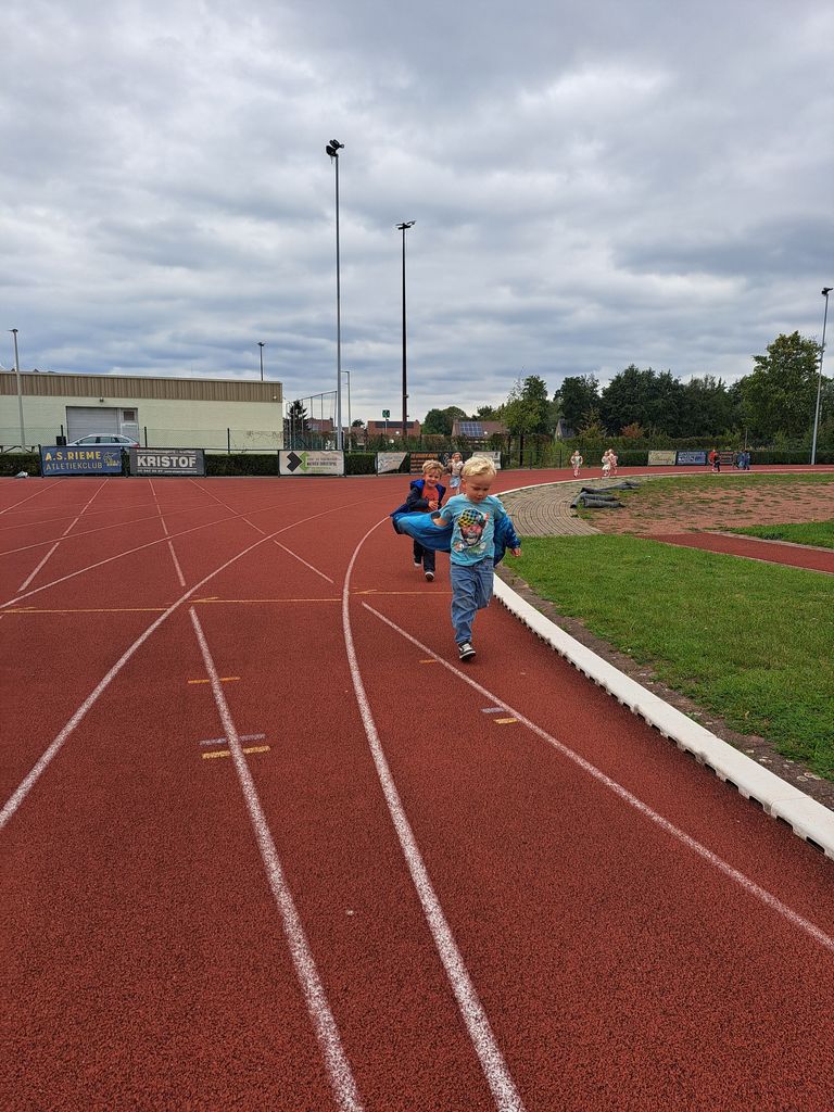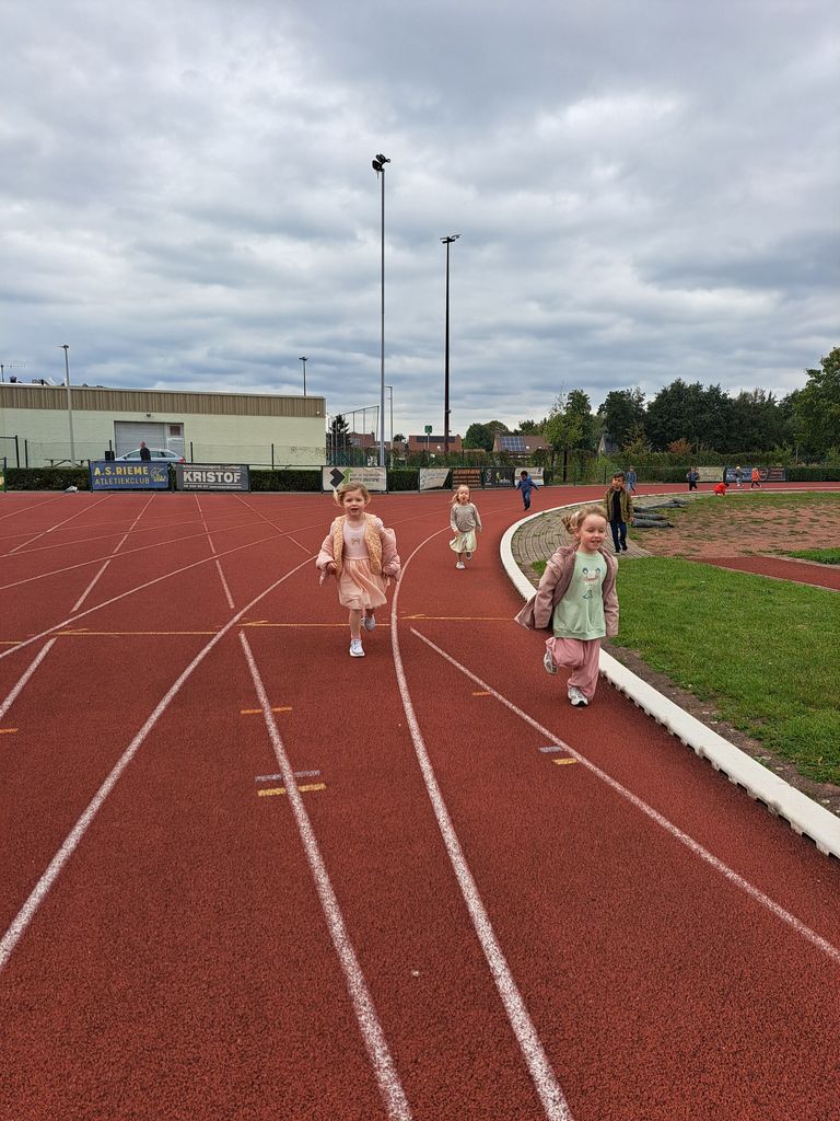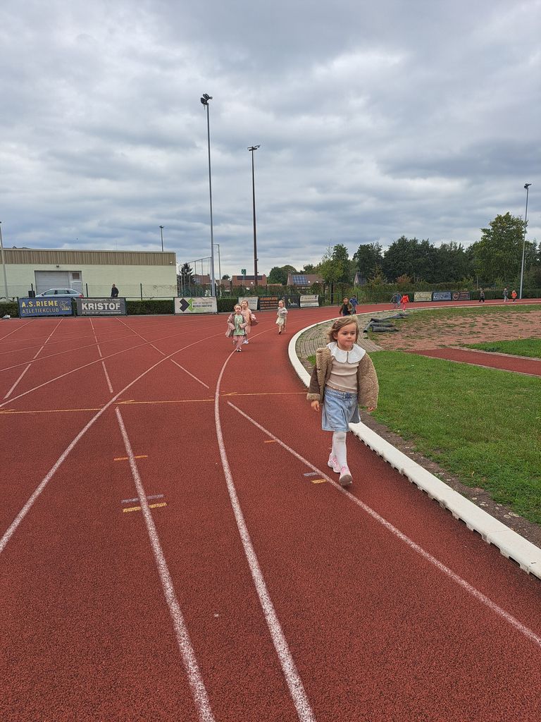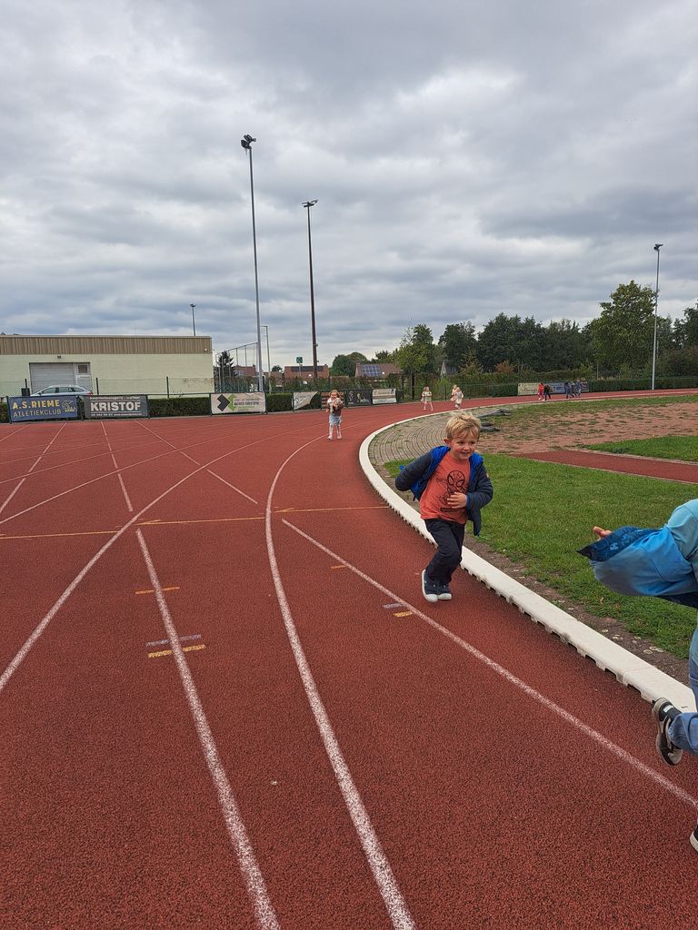 De kleuters van de vlinder- en kikkerklas trokken er afgelopen donderdag op uit. We stapten flink richting de Hoge Wal om de atletiekpiste eens van dicht te bekijken. De kleuters konden een rondje lopen van 400m! Bijna alle kinderen hebben het volledige rondje gelopen! De juffen waren trots! Proficiat aan Göktug die als eerste over de finishlijn liep! Daarna oefende we eens op verspringen en keken we wie het verste zou geraken. Nadat alle kindjes een poging waagden, konden we June uitroepen tot de grote winnares! Proficiat! Om af te sluiten, speelden we nog even op de speeltuin om daarna onze wandeltocht naar school aan te zetten.