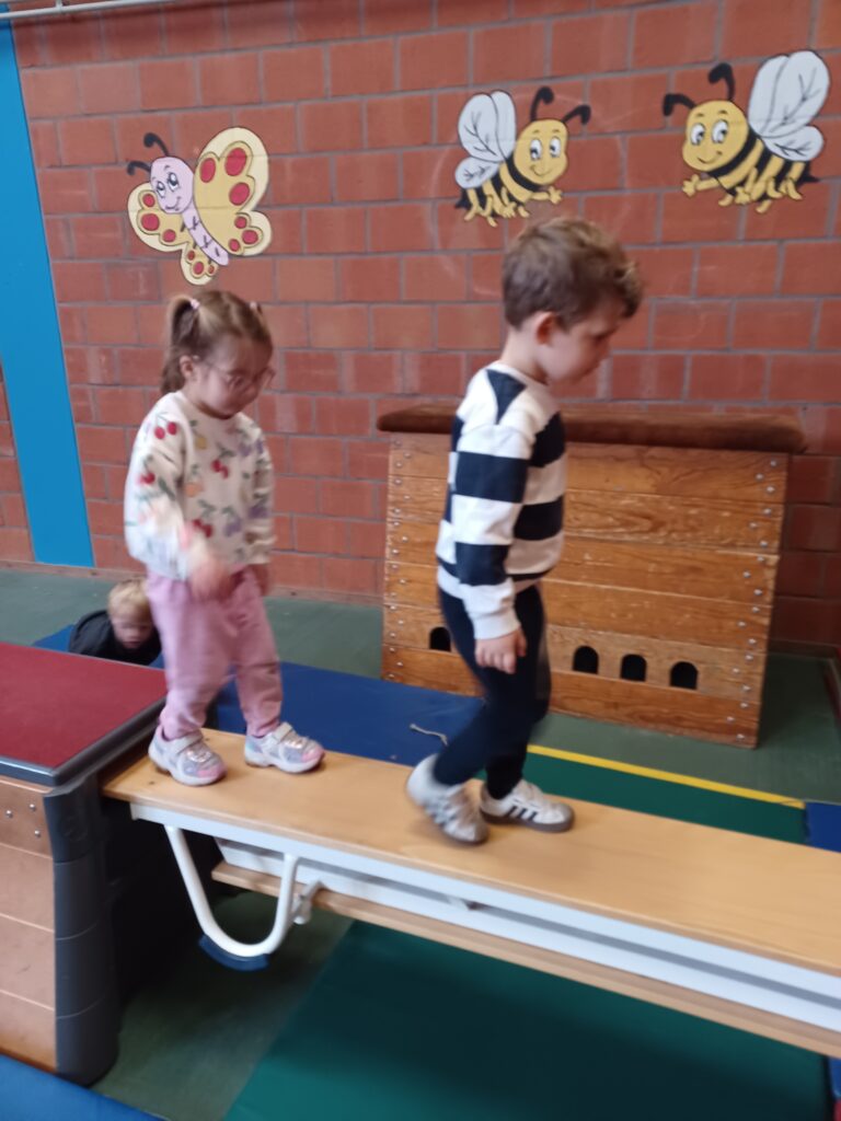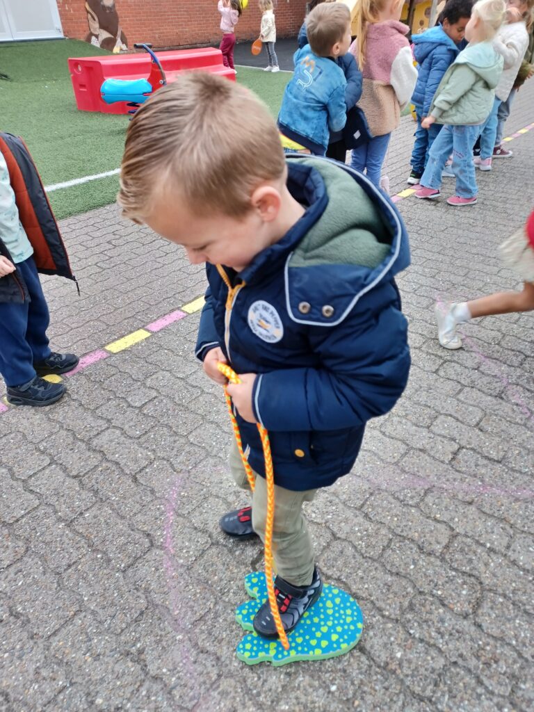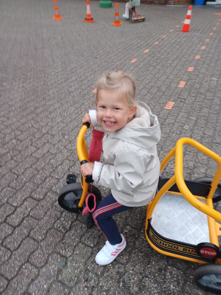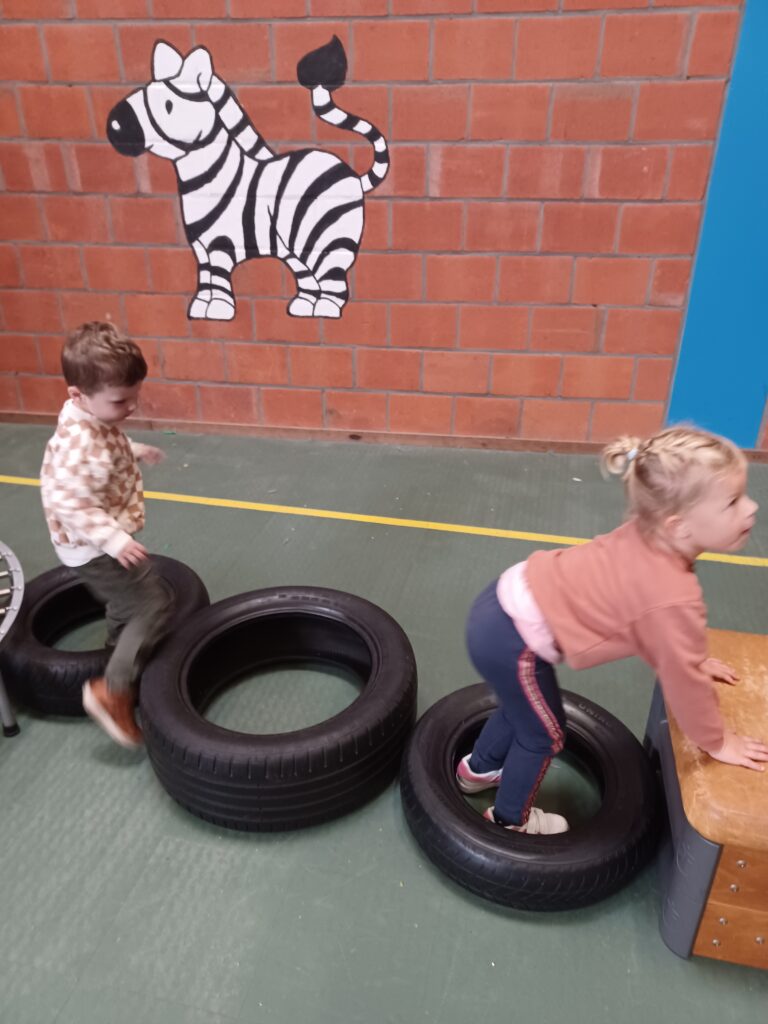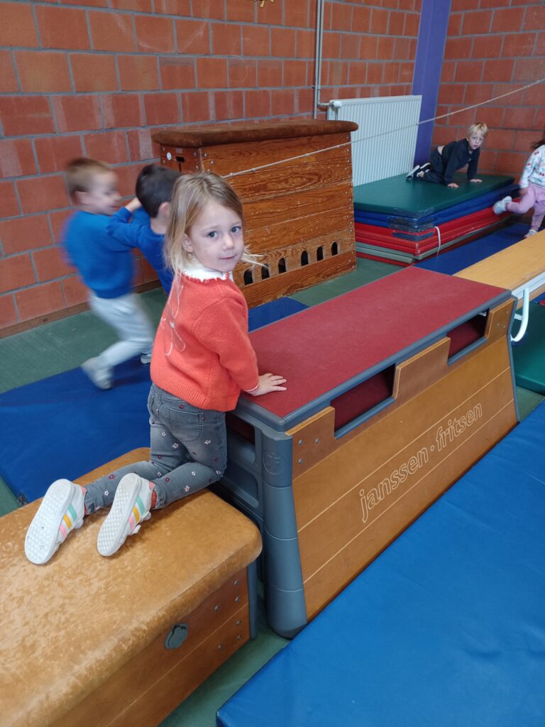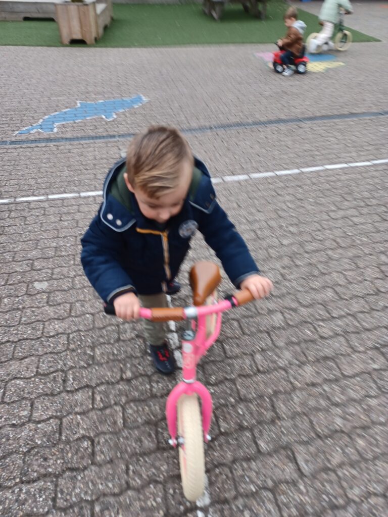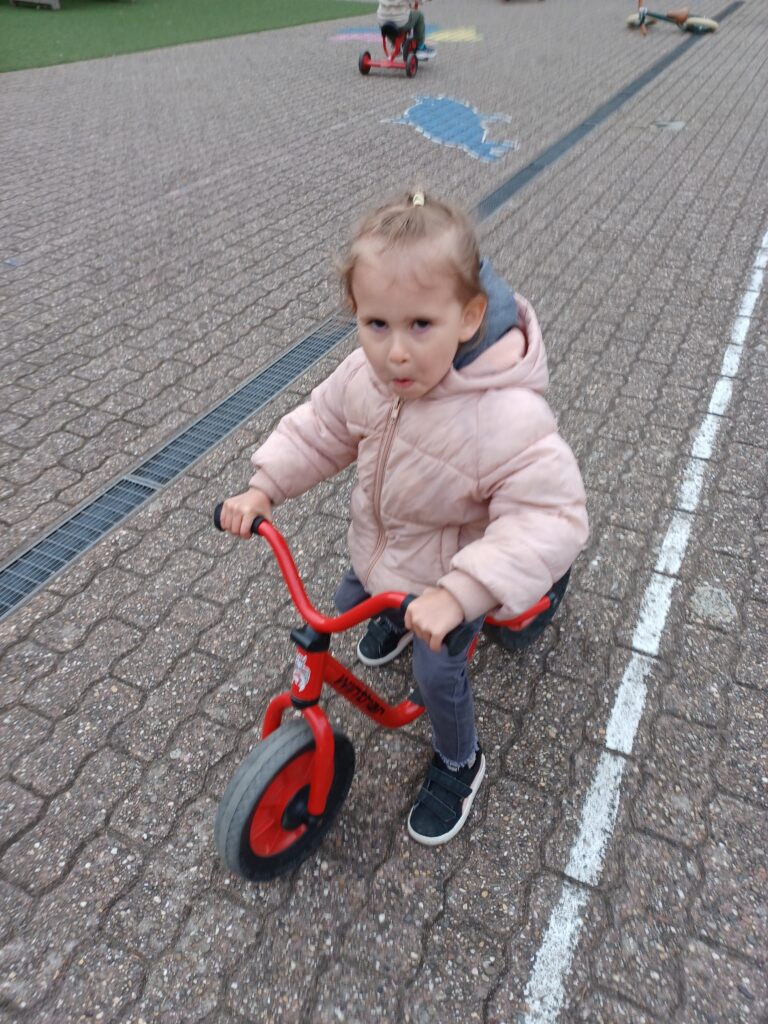 We mochten met de ballen spelen; met de fietsen rijden; met loopklossen, springballen, tennisraketten spelen en als laatste legden we een parcours af in de gymzaal.