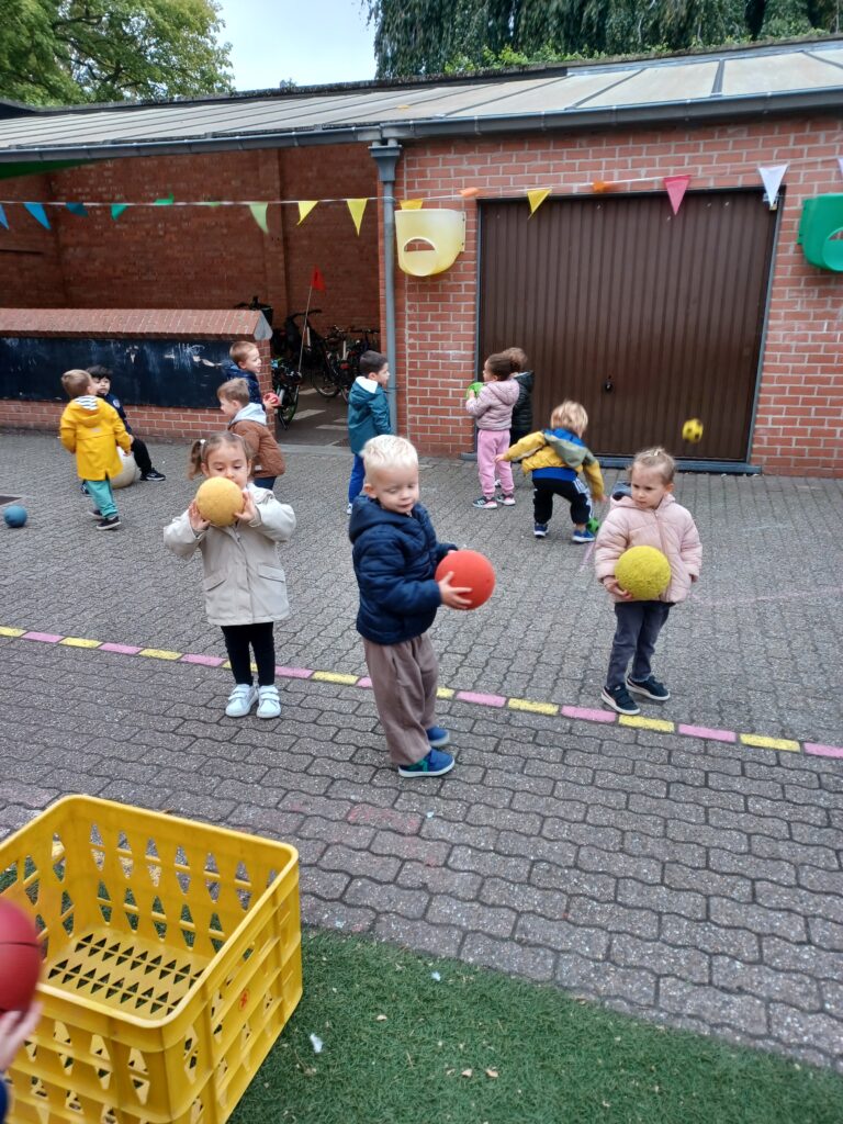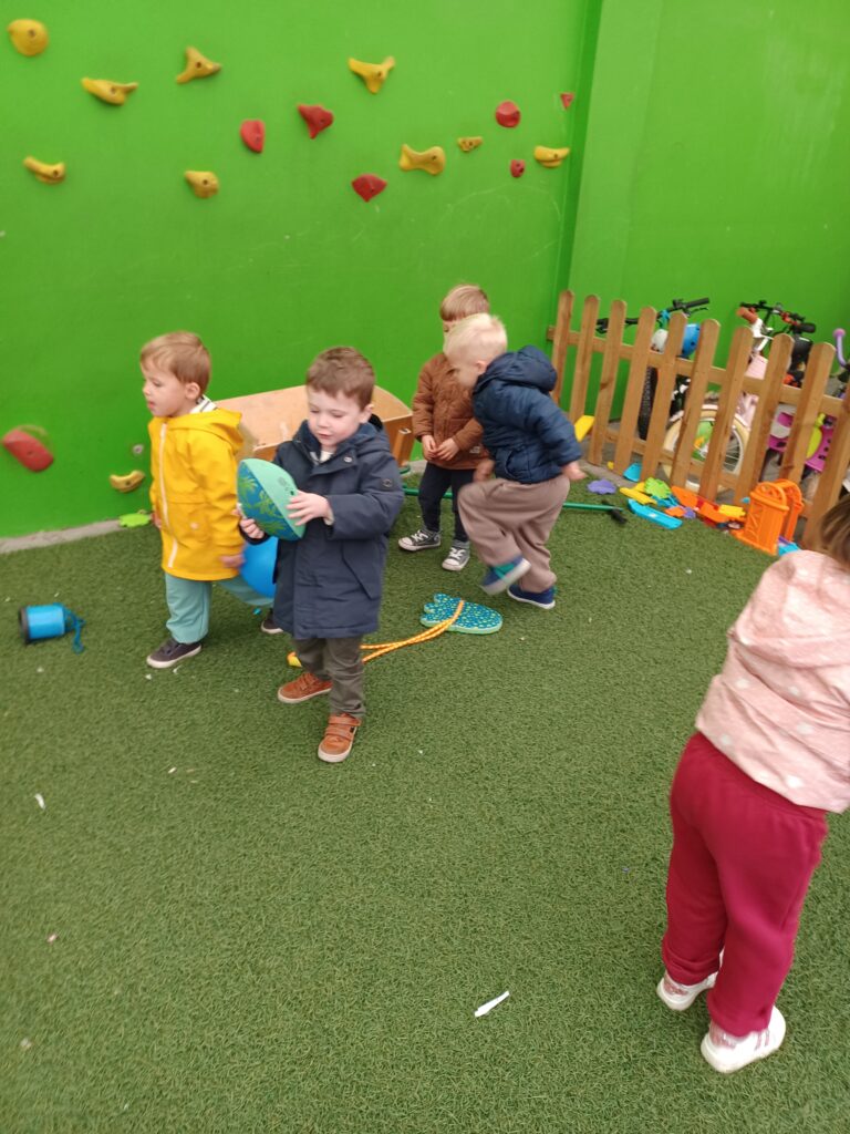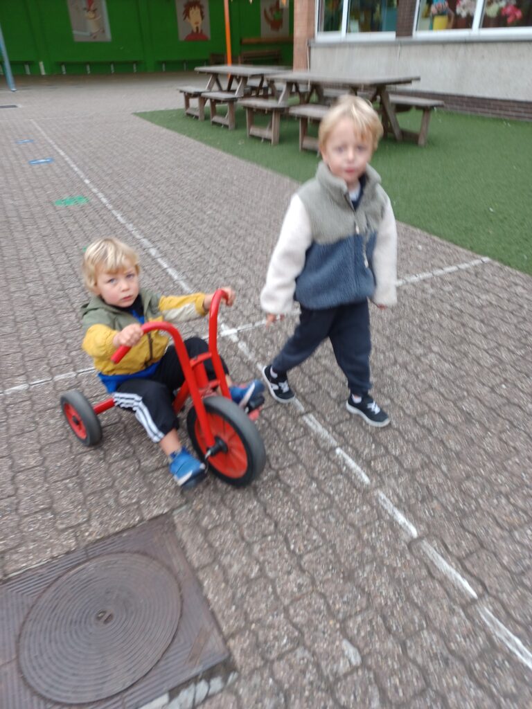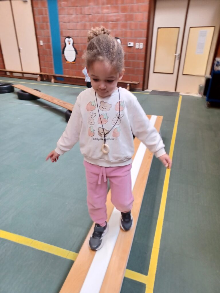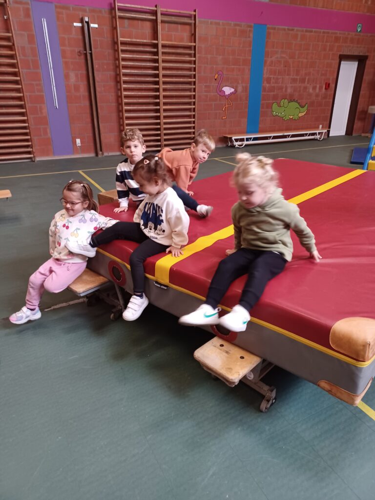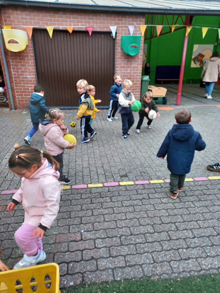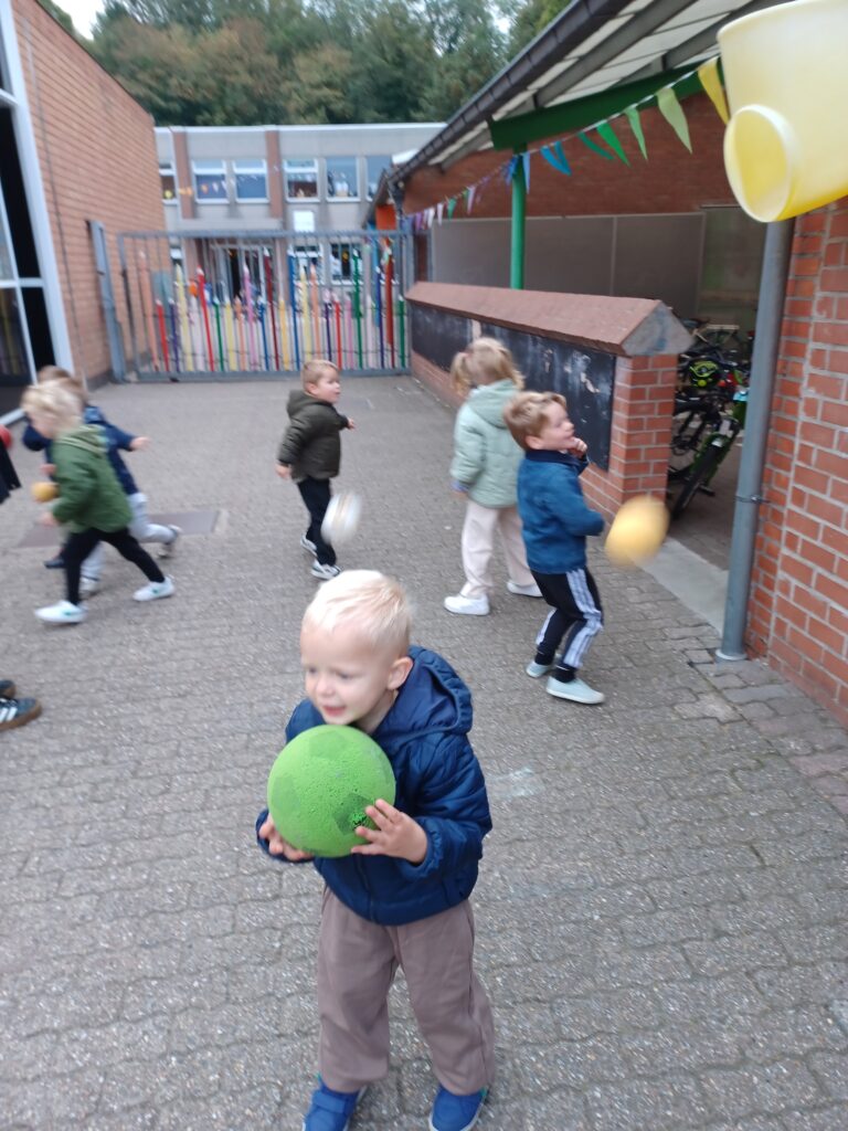 We mochten met de ballen spelen; met de fietsen rijden; met loopklossen, springballen, tennisraketten spelen en als laatste legden we een parcours af in de gymzaal.