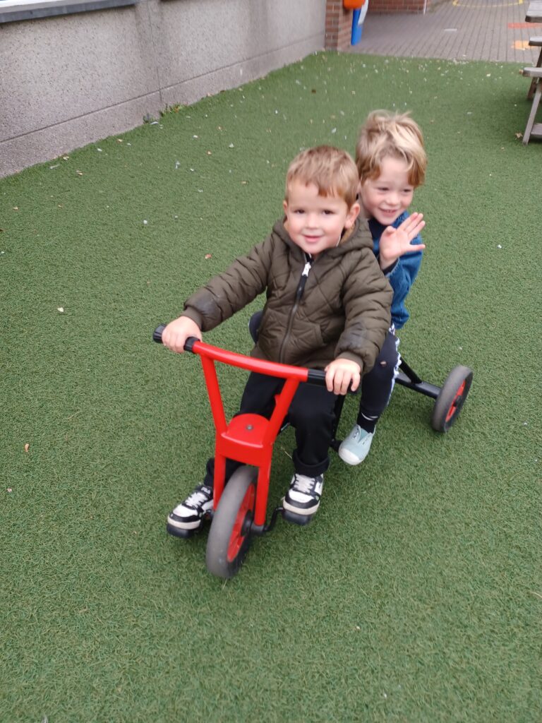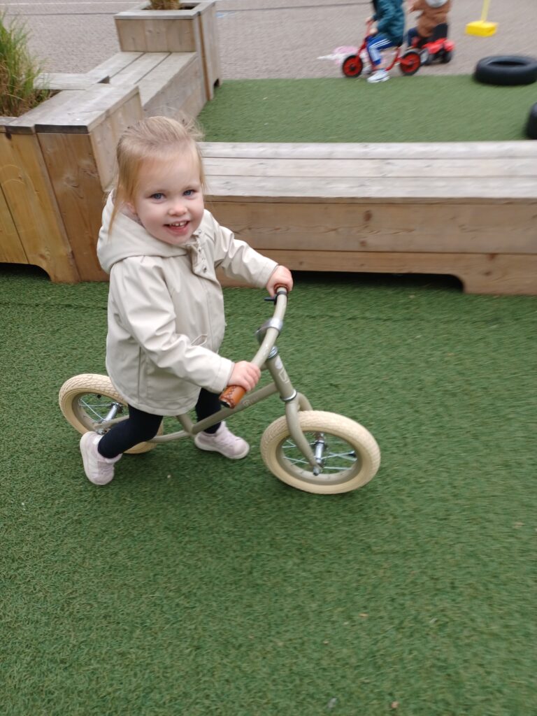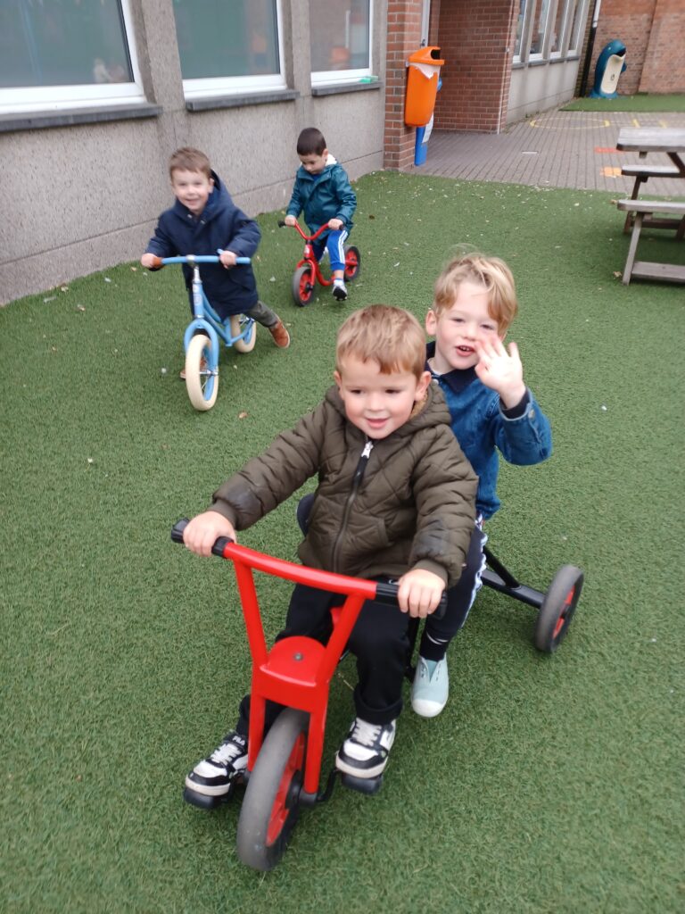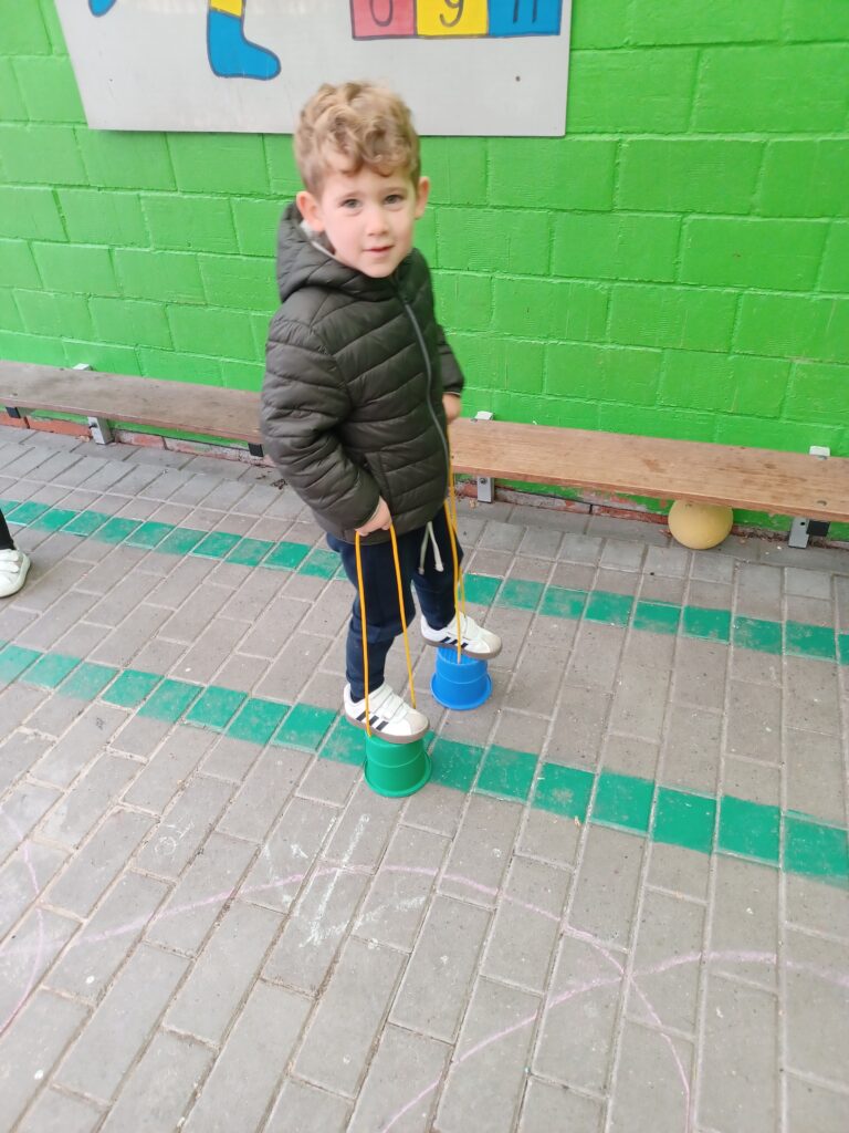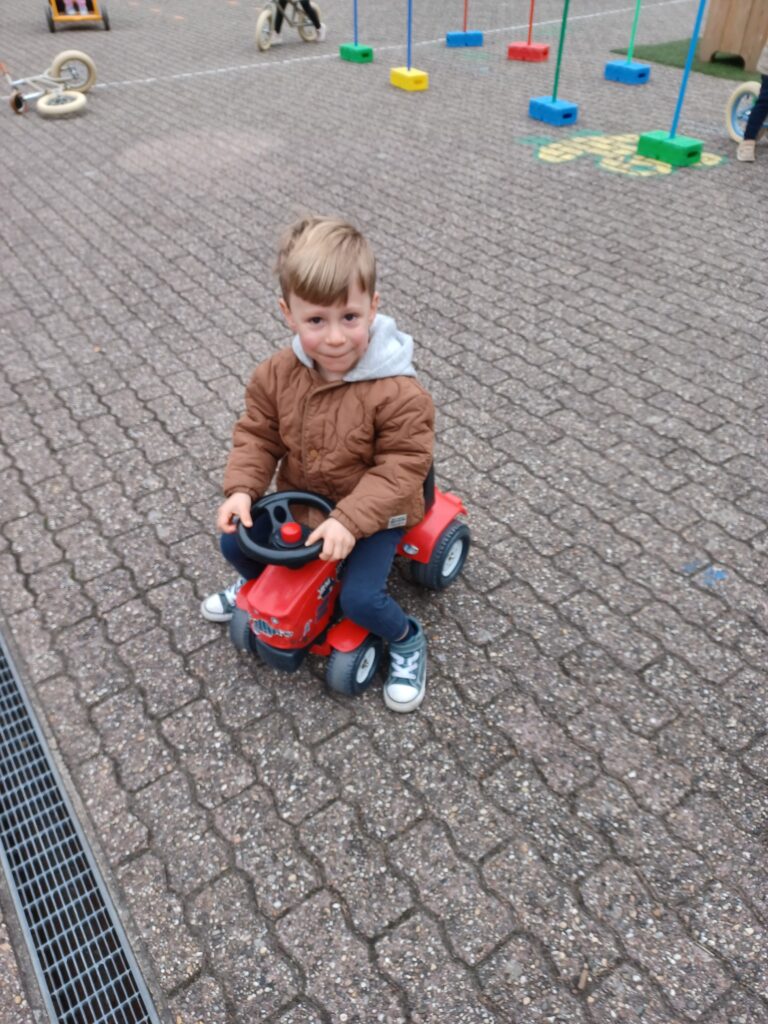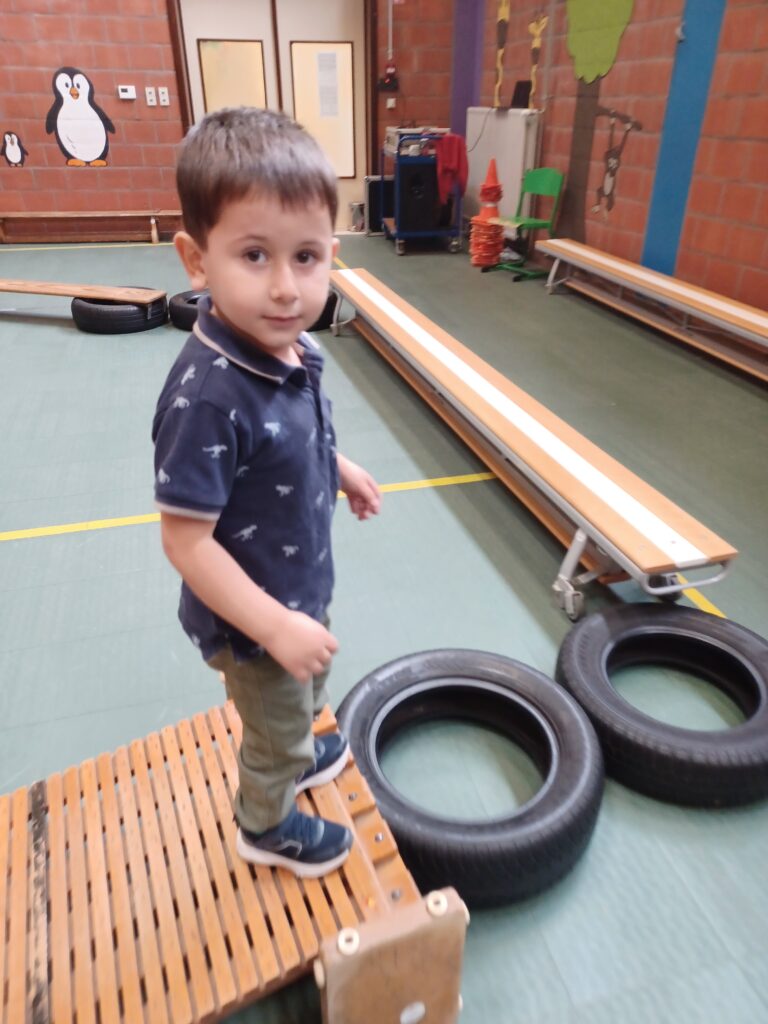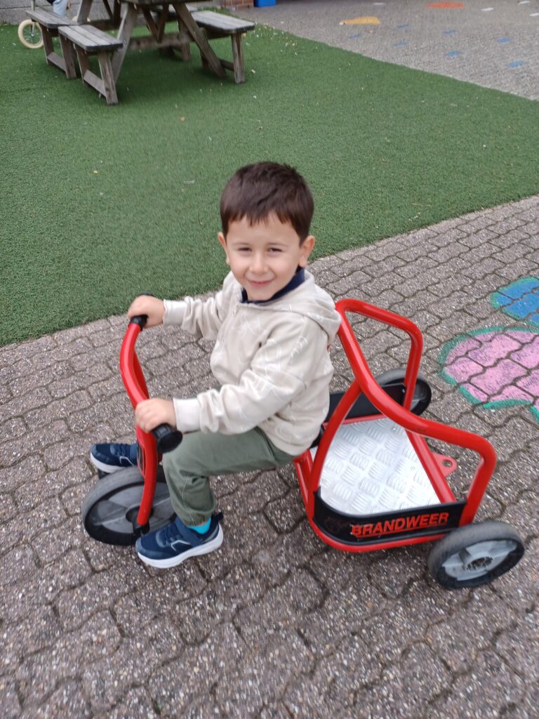We mochten met de ballen spelen; met de fietsen rijden; met loopklossen, springballen, tennisraketten spelen en als laatste legden we een parcours af in de gymzaal.