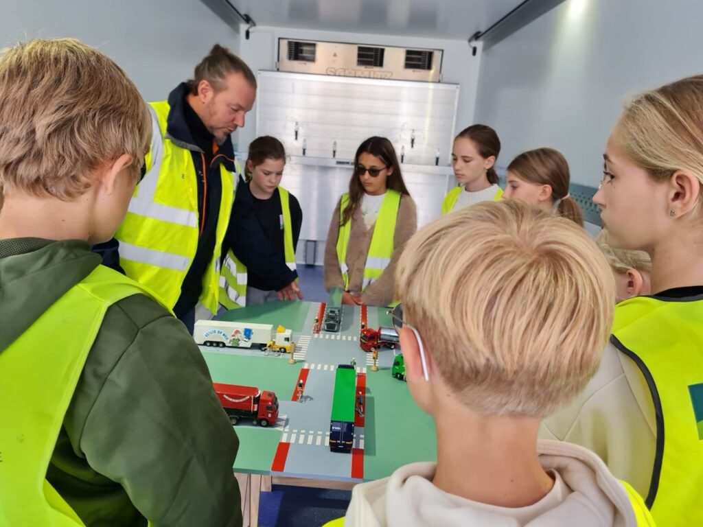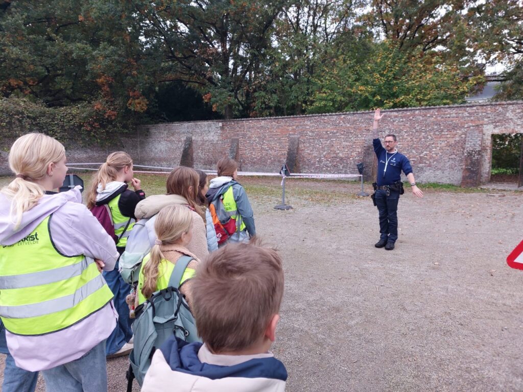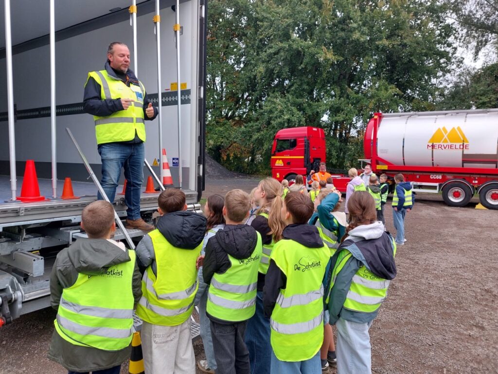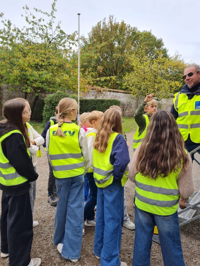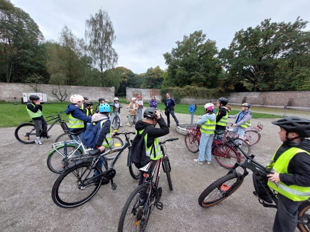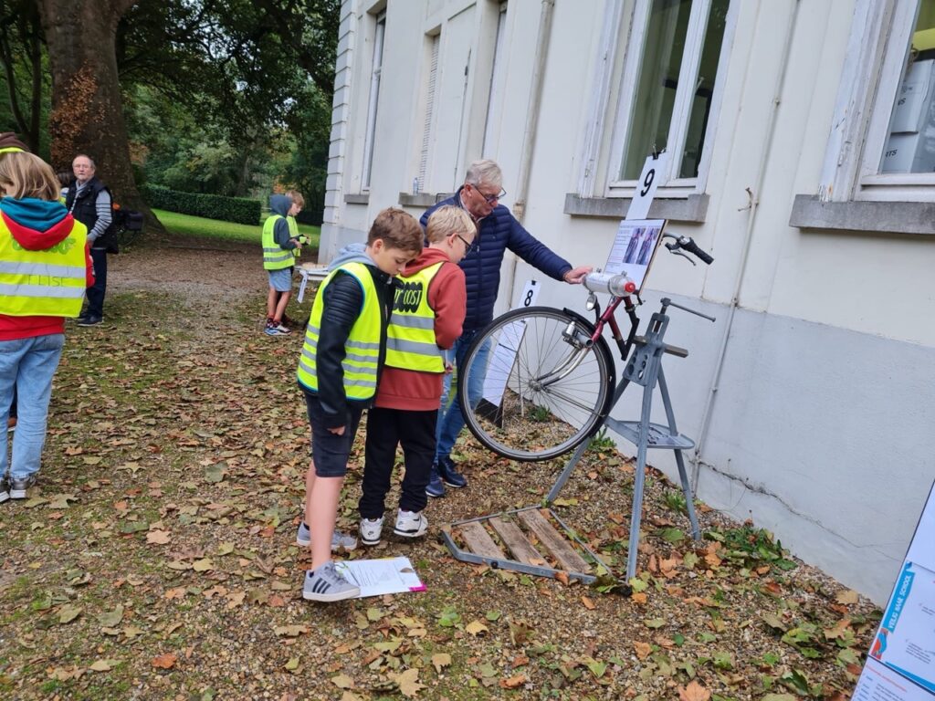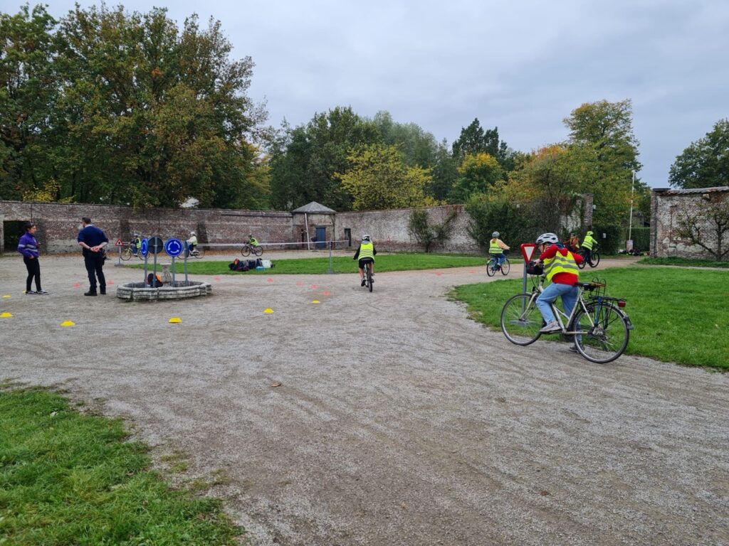 Fietsen naar het kasteel van Wippelgem, een behendigheidsparcours, een verkeerspark, kennismaken met de dode hoek en dit ondervinden in de cabine van een vrachtwagen, fietstechnieken, EHBO, promillebrillen uitproberen,… Een leerrijke dag!