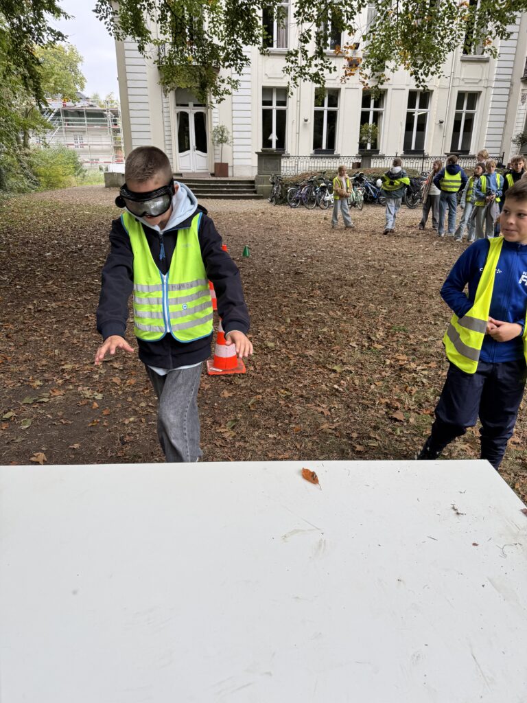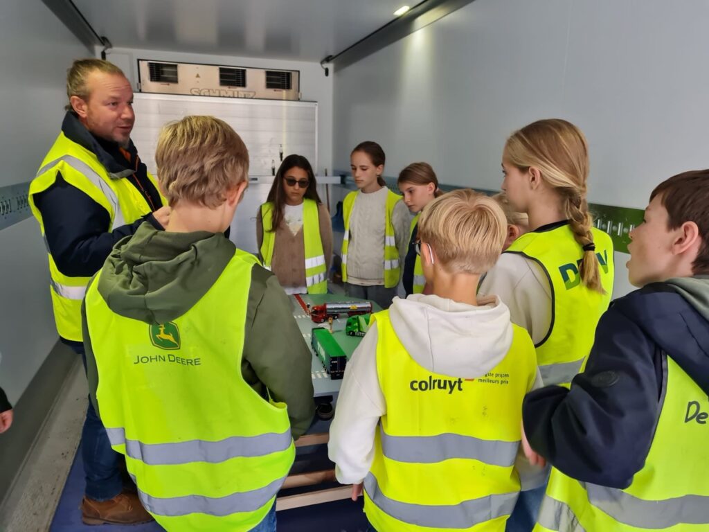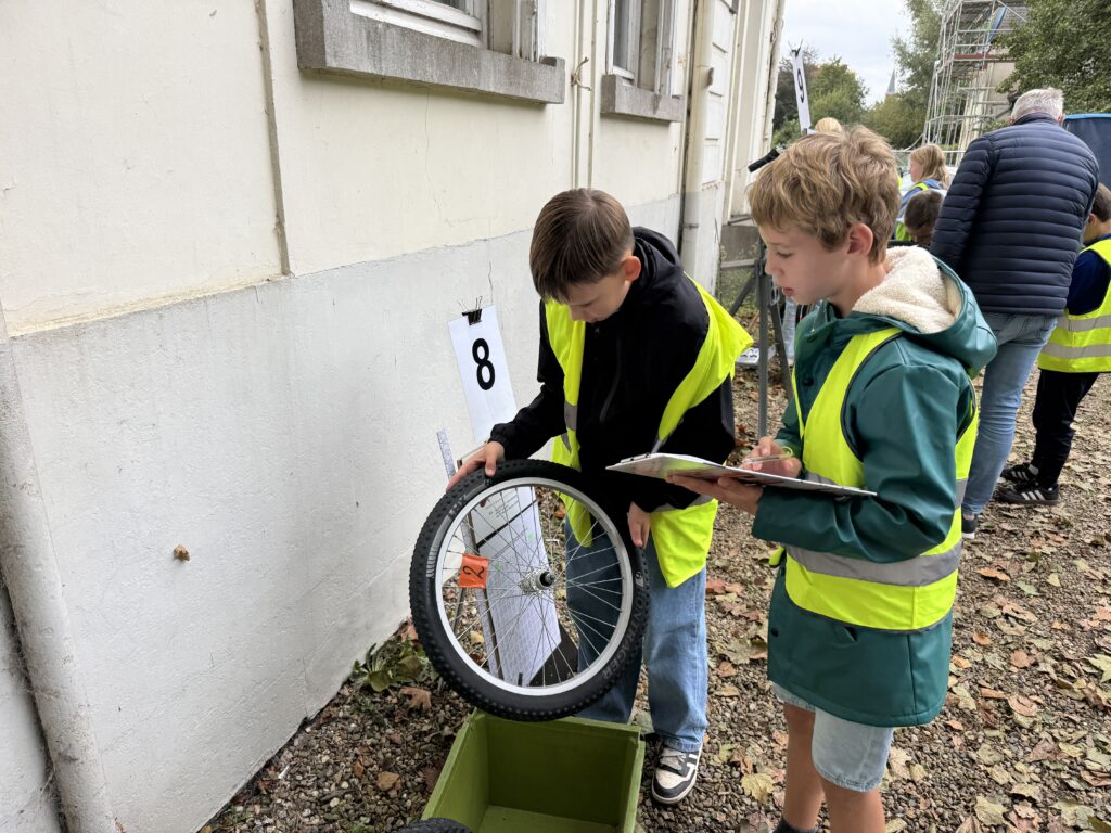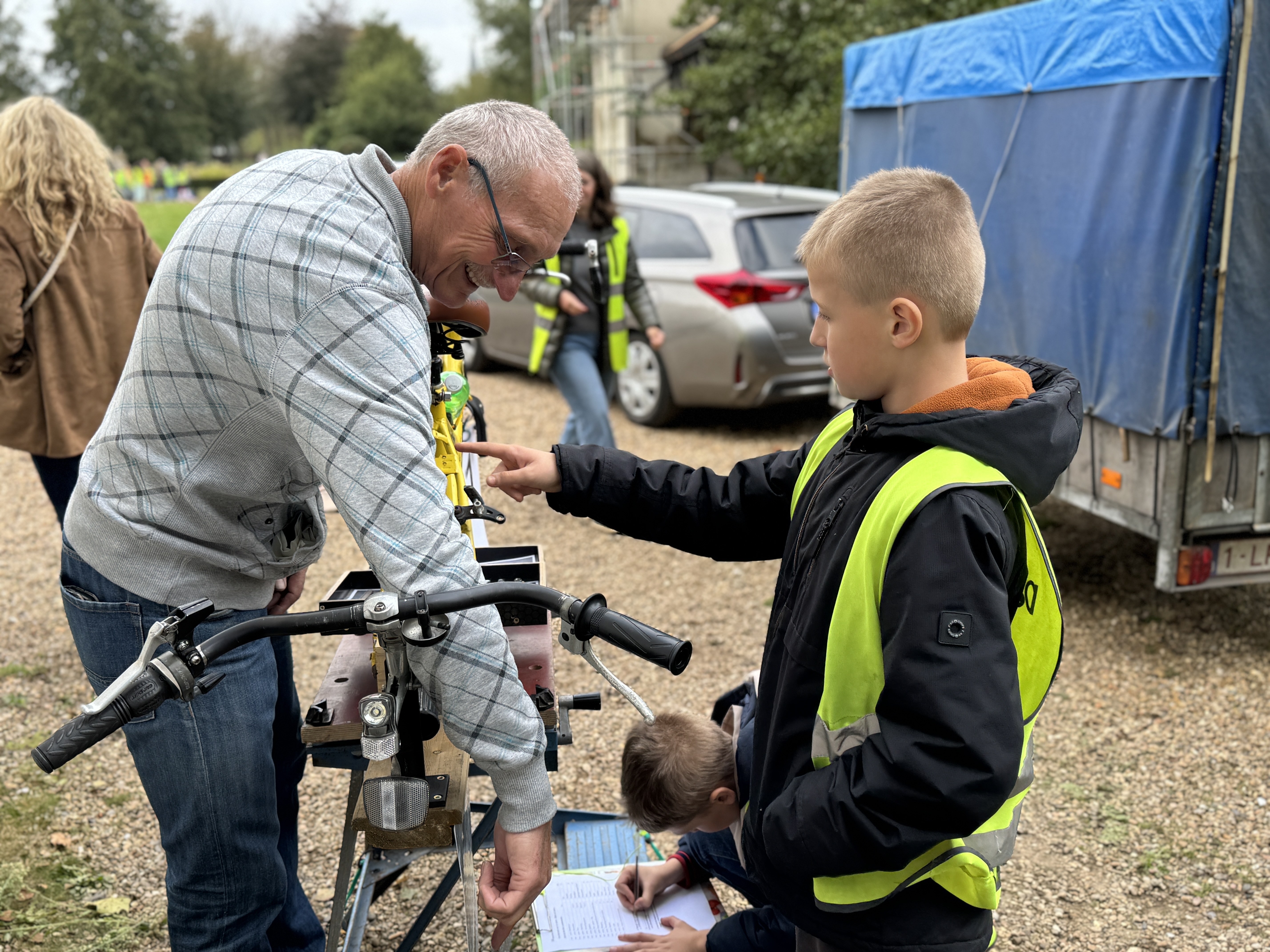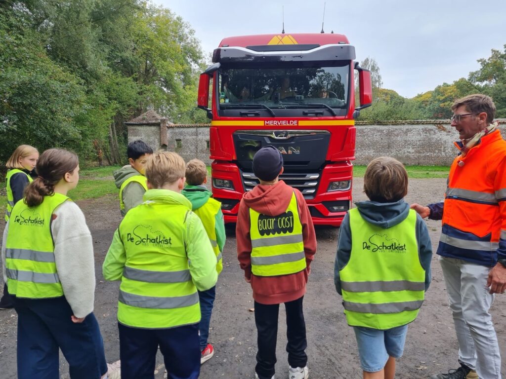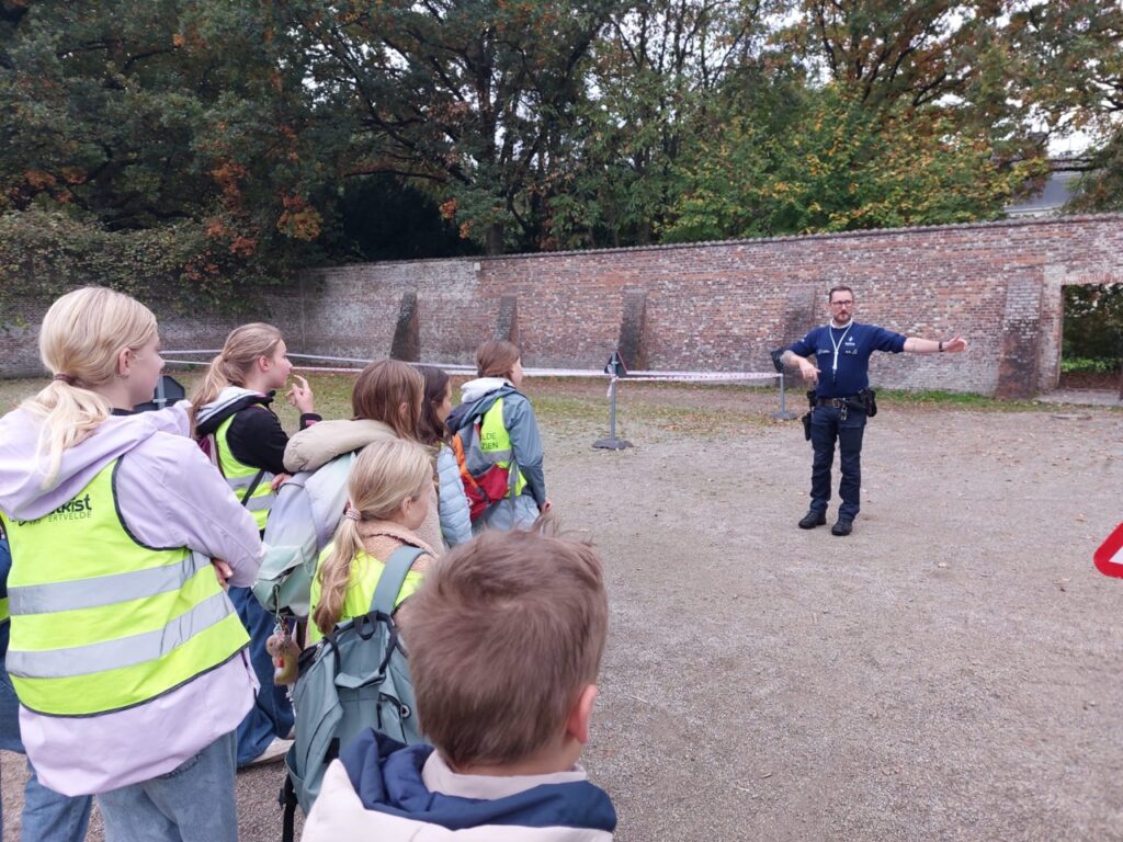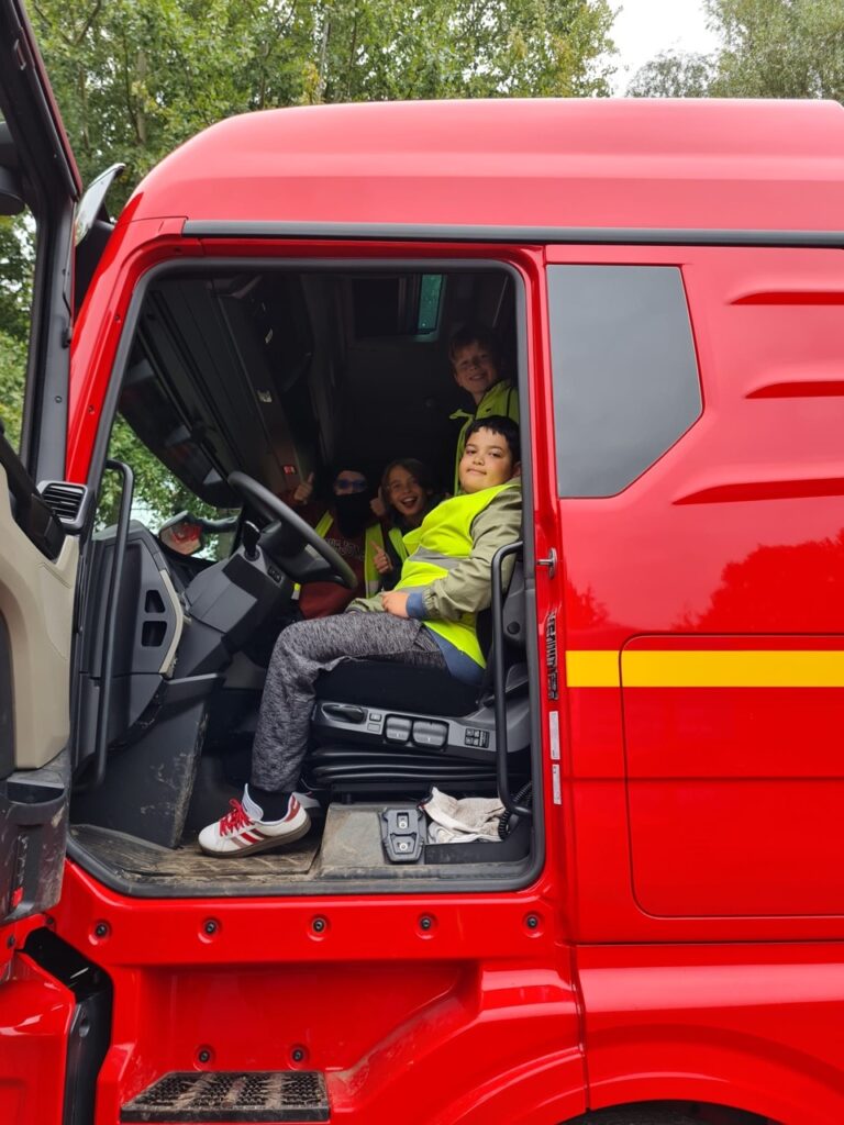 Fietsen naar het kasteel van Wippelgem, een behendigheidsparcours, een verkeerspark, kennismaken met de dode hoek en dit ondervinden in de cabine van een vrachtwagen, fietstechnieken, EHBO, promillebrillen uitproberen,… Een leerrijke dag!