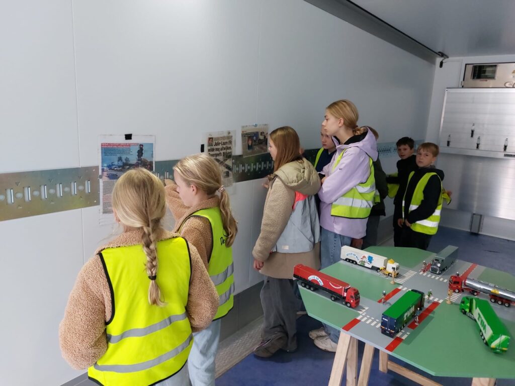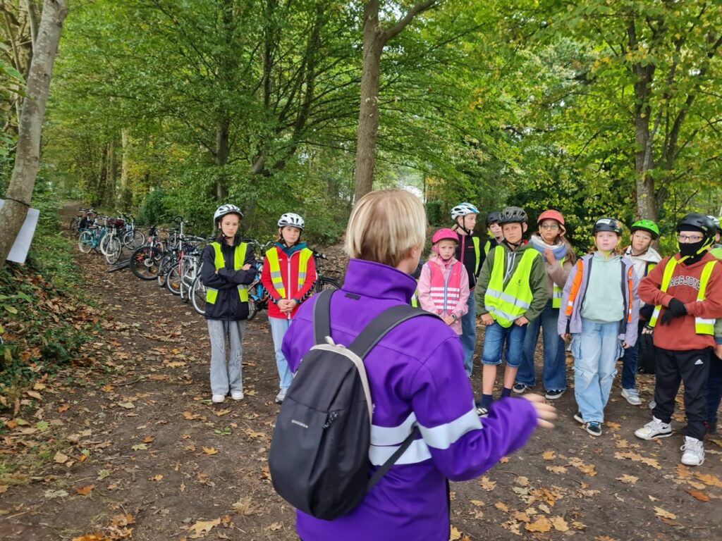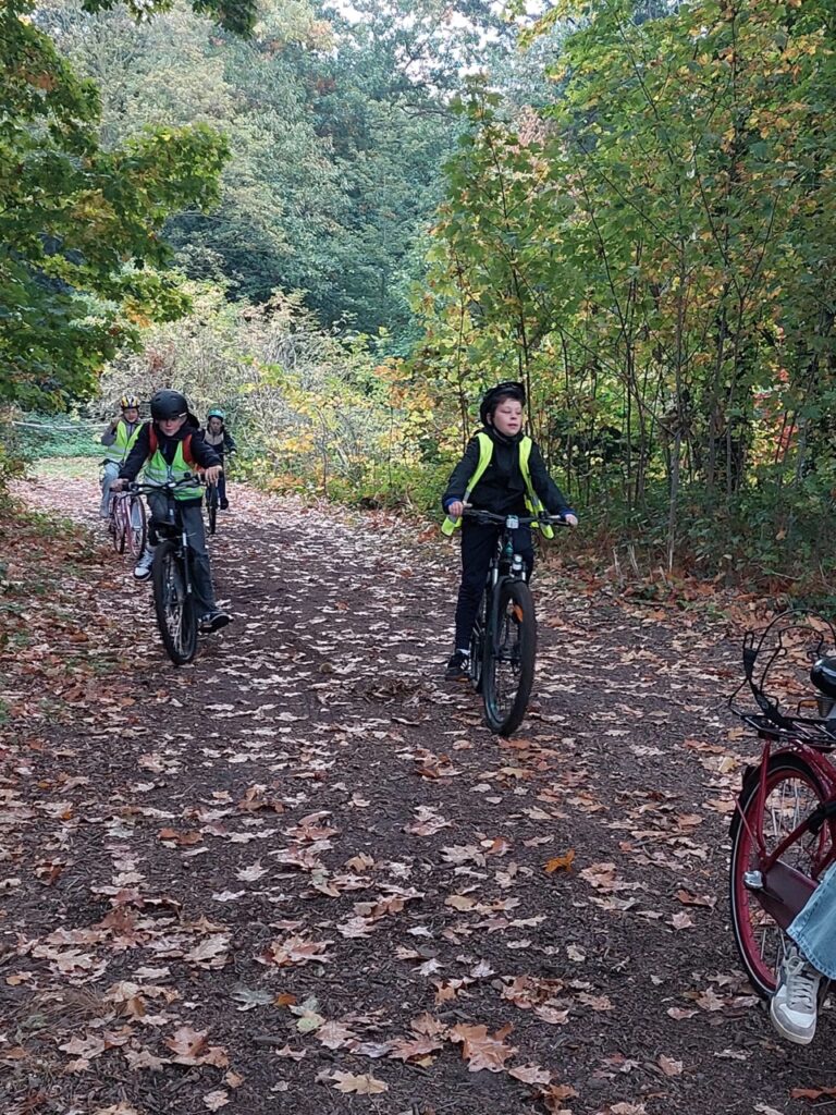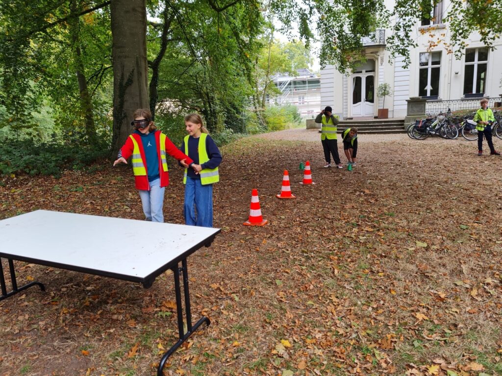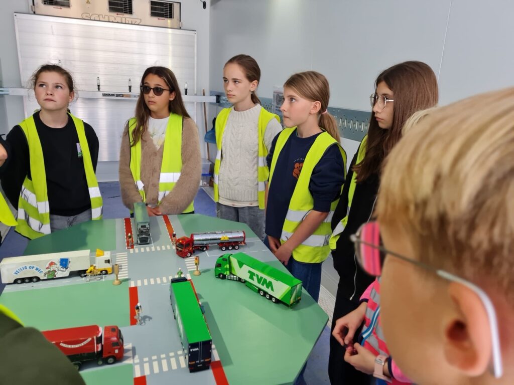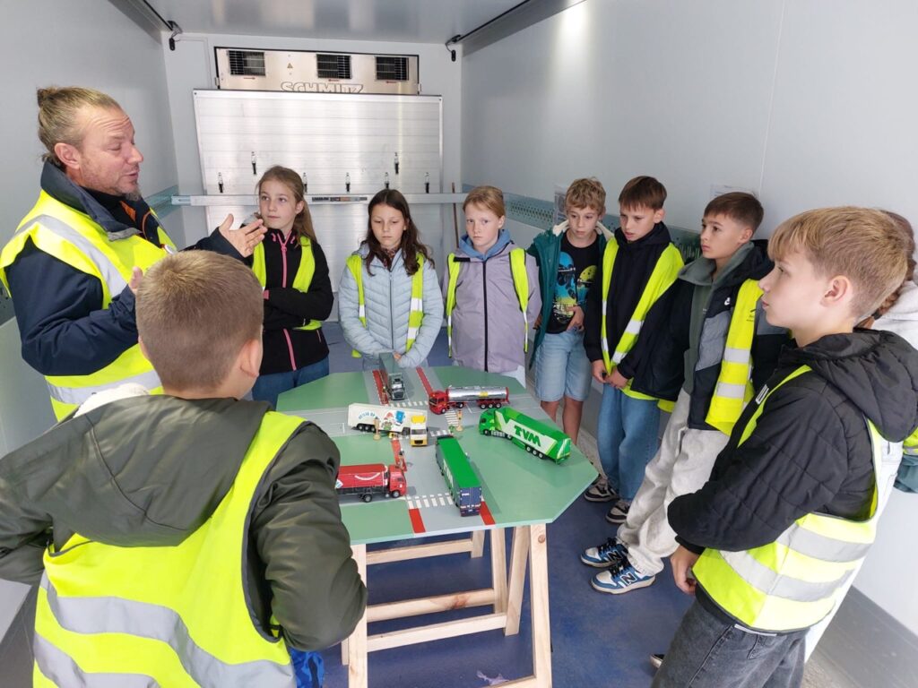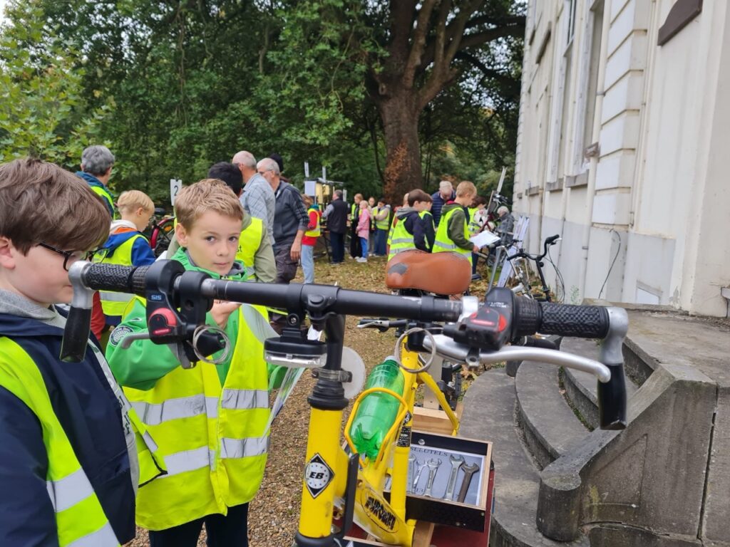 Fietsen naar het kasteel van Wippelgem, een behendigheidsparcours, een verkeerspark, kennismaken met de dode hoek en dit ondervinden in de cabine van een vrachtwagen, fietstechnieken, EHBO, promillebrillen uitproberen,… Een leerrijke dag!
