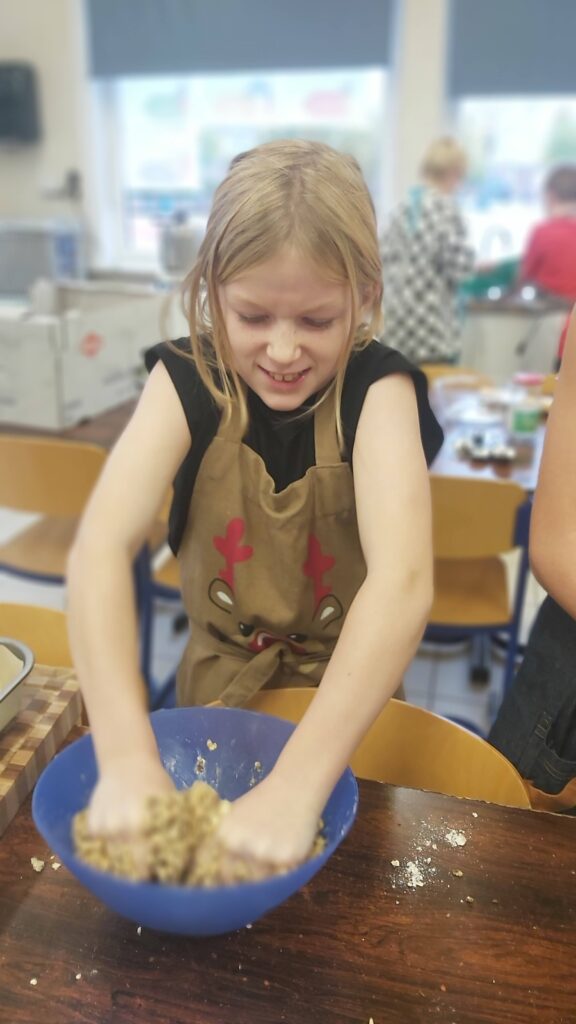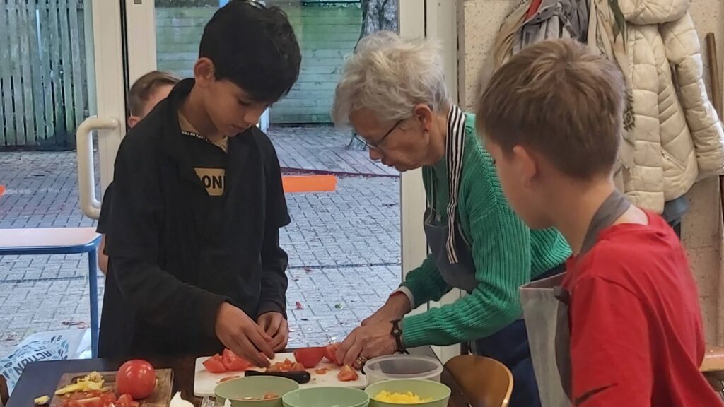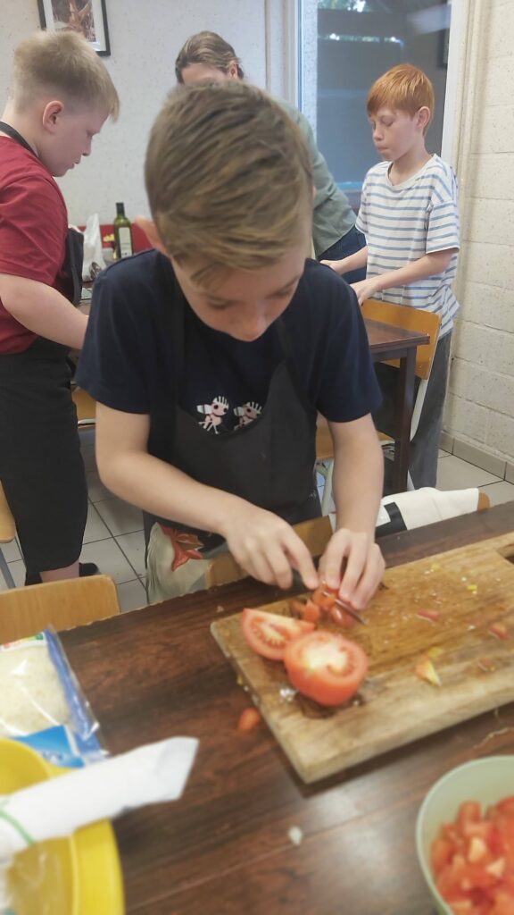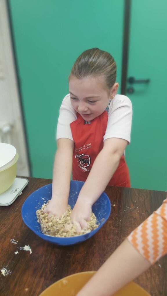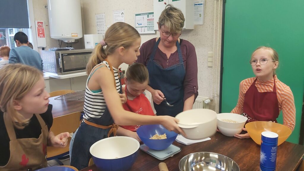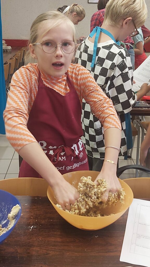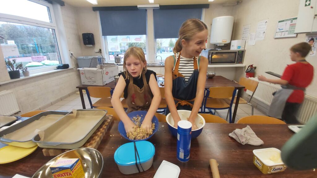 Wat een bak- en kooktalent in klas L5B. Ik zag leerlingen die aan het genieten waren om eens iets anders te doen dan een echte wiskundeles enz. Het was een echte gedrevenheid in onze refter/keuken en ze hebben dat allemaal heel goed gedaan. Alles hebben we uiteraard geproefd en …. het was lekker. Toppie!!! Een welgemeende dankjewel aan de mama van Amelie, aan de oma van Mathieu, aan juf Els en aan juf Sabine om de groepjes mee te helpen begeleiden.