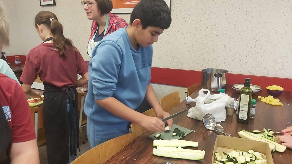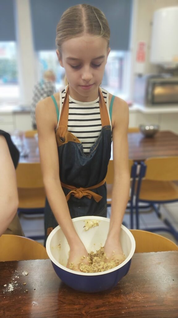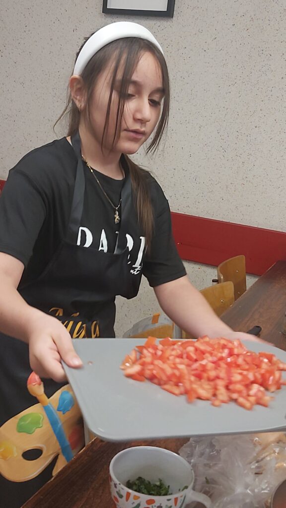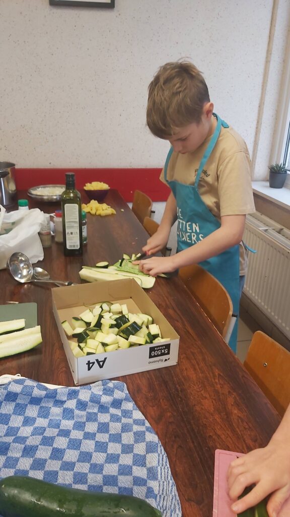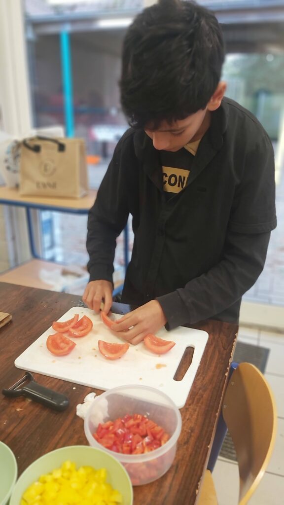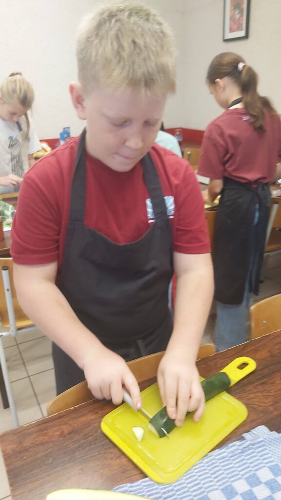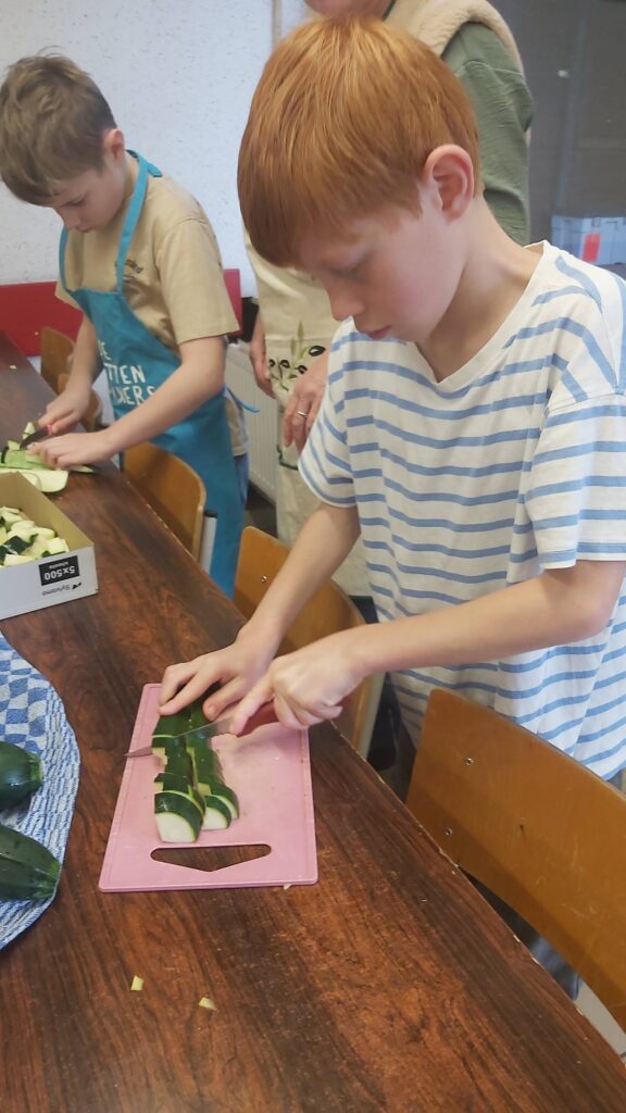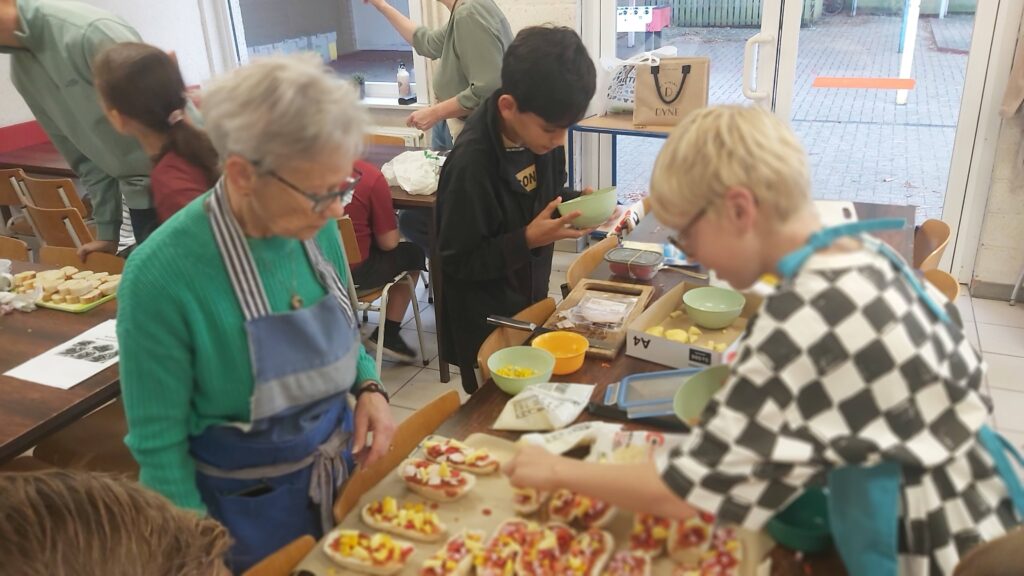 Wat een bak- en kooktalent in klas L5B. Ik zag leerlingen die aan het genieten waren om eens iets anders te doen dan een echte wiskundeles enz. Het was een echte gedrevenheid in onze refter/keuken en ze hebben dat allemaal heel goed gedaan. Alles hebben we uiteraard geproefd en …. het was lekker. Toppie!!! Een welgemeende dankjewel aan de mama van Amelie, aan de oma van Mathieu, aan juf Els en aan juf Sabine om de groepjes mee te helpen begeleiden.