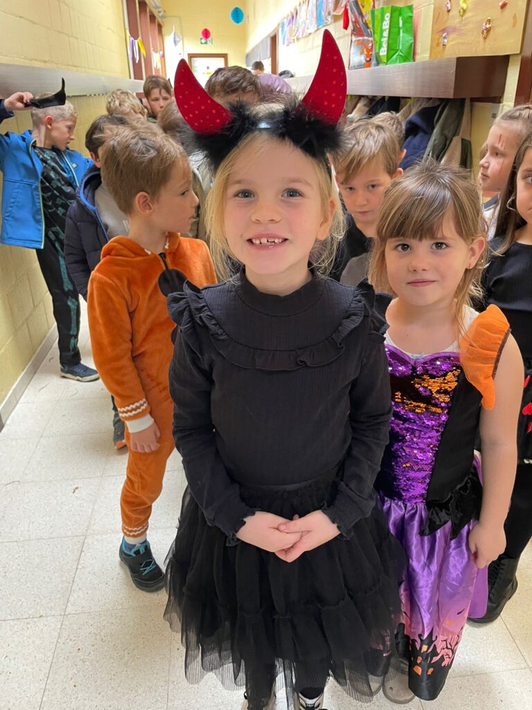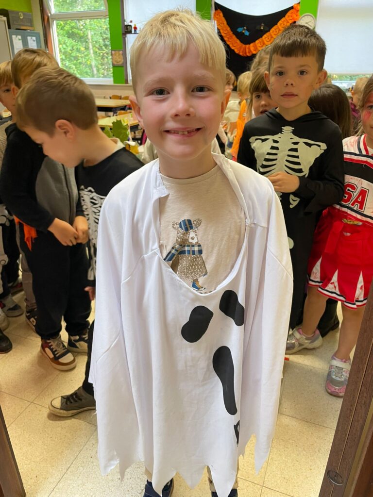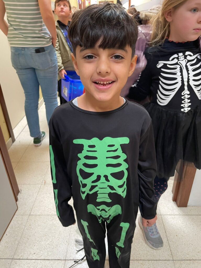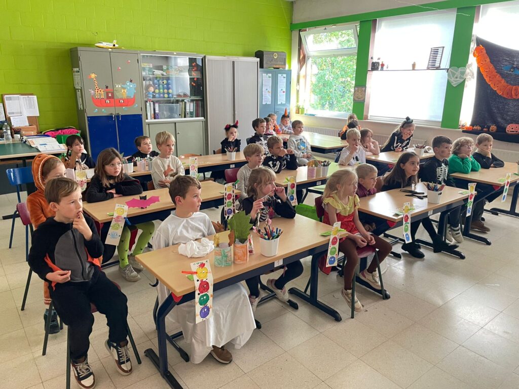 Iedereen kwam verkleed naar school: heksen, spoken, skeletten … .