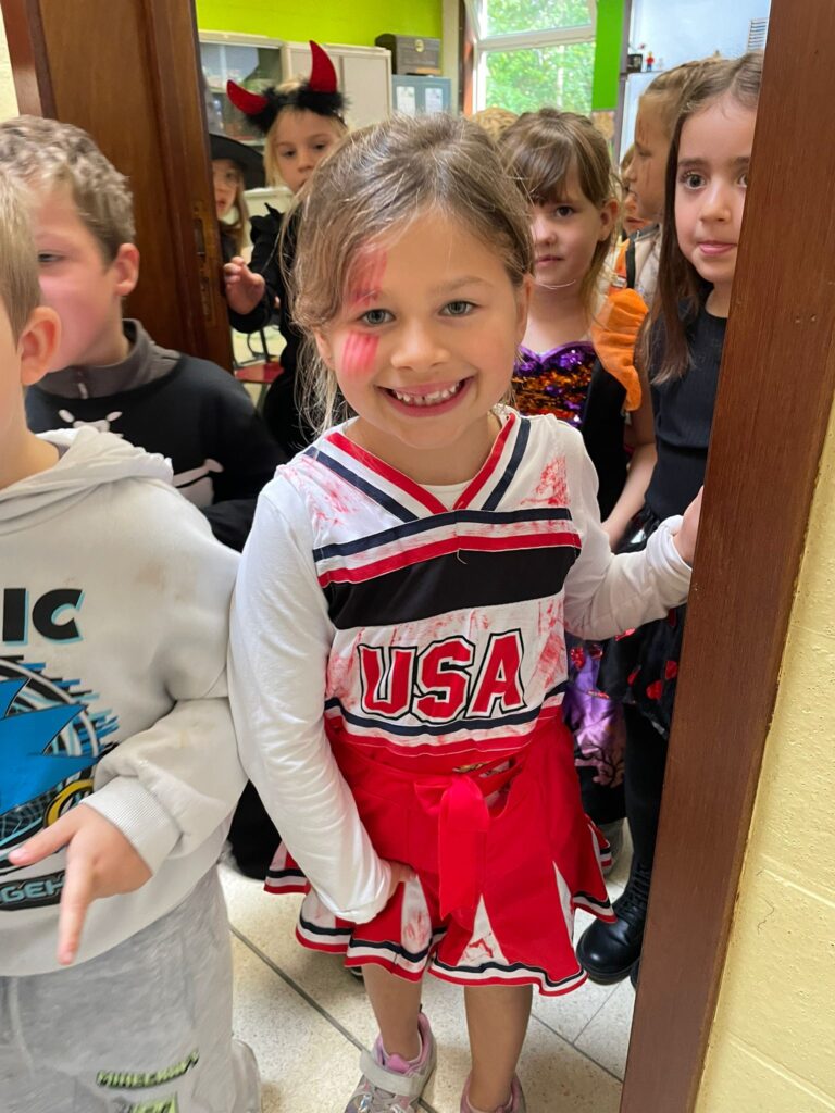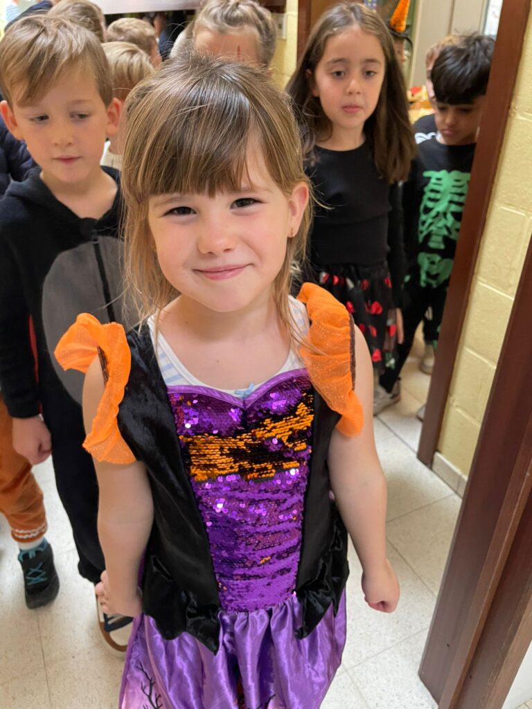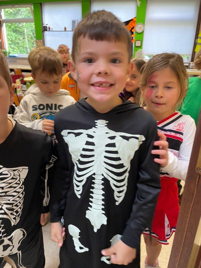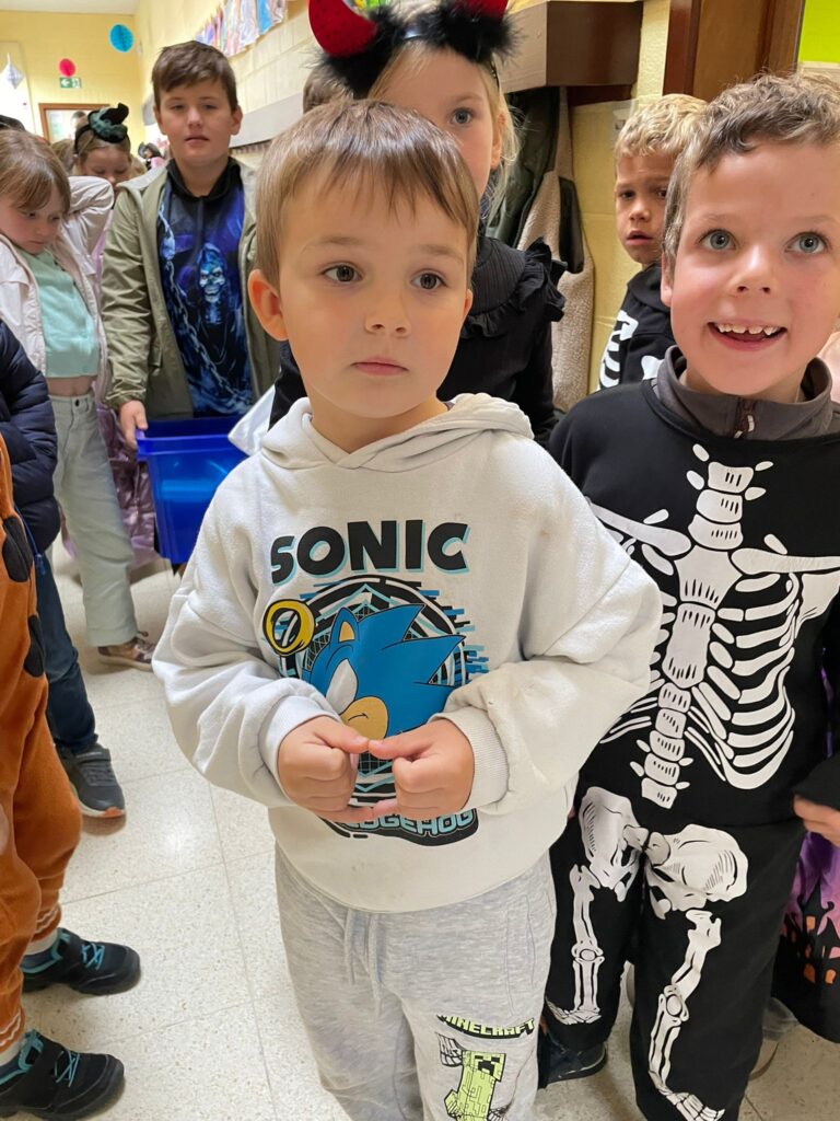 Iedereen kwam verkleed naar school: heksen, spoken, skeletten … .