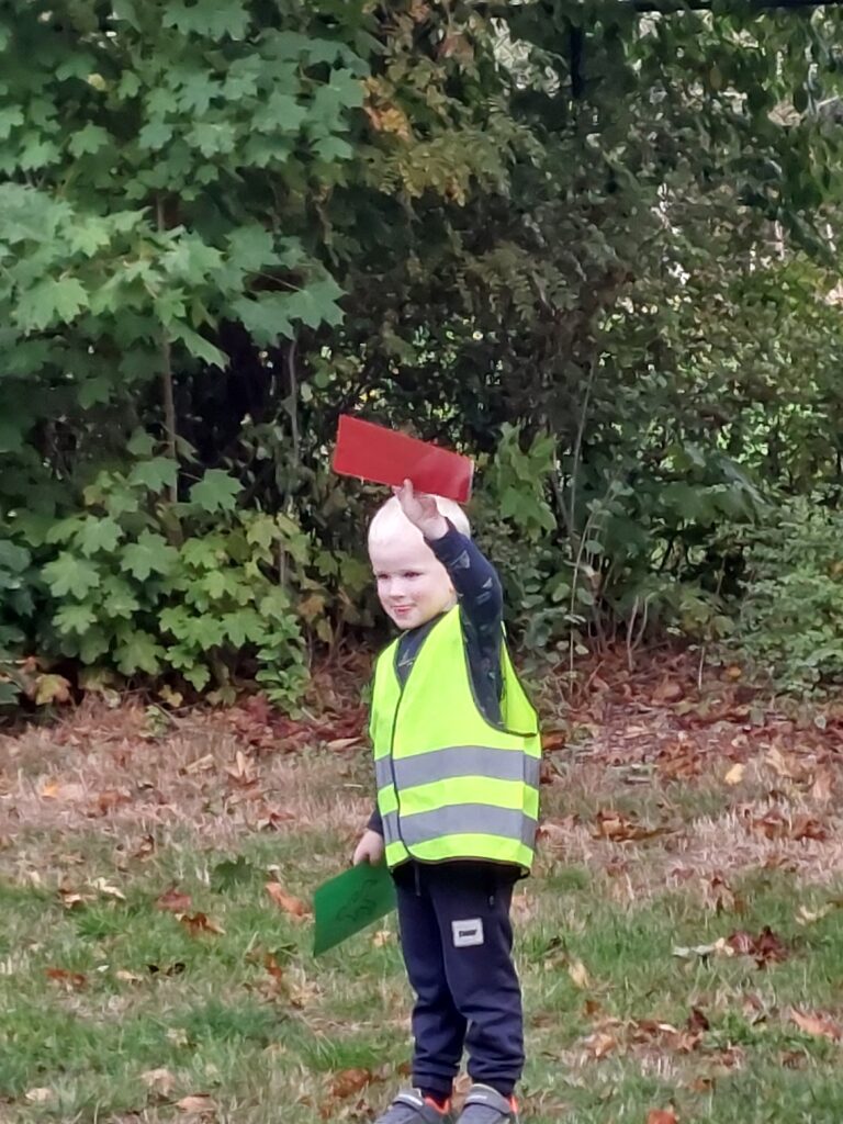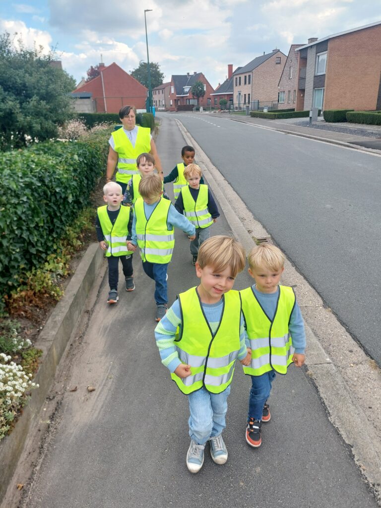 Toet, toet, toet, kijk altijd goed wat het stoplicht doet. Toet, toet, toet, daar kom ik aan. Rood is stop en groen is gaan. Oranje is opgelet en blauw is de politiepet.