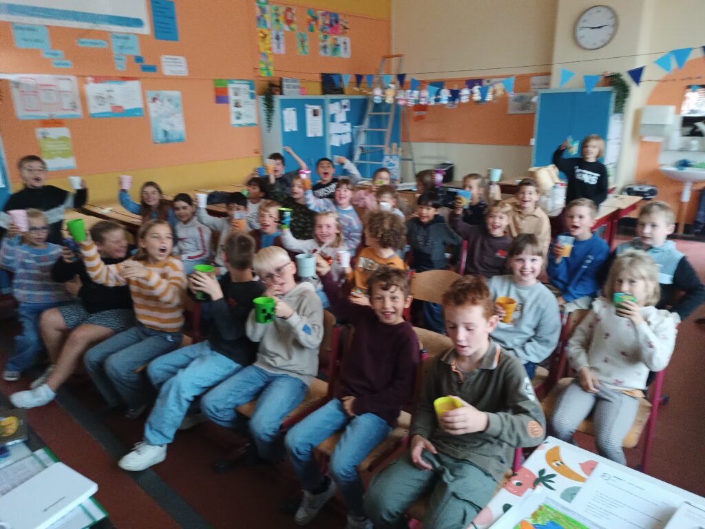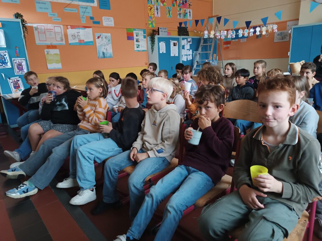 Na het spannende boek van ‘Meester Kikker’ in de klas te lezen, kijken we samen naar de film om het einde te weten te komen. Het was gezellig en lekker!