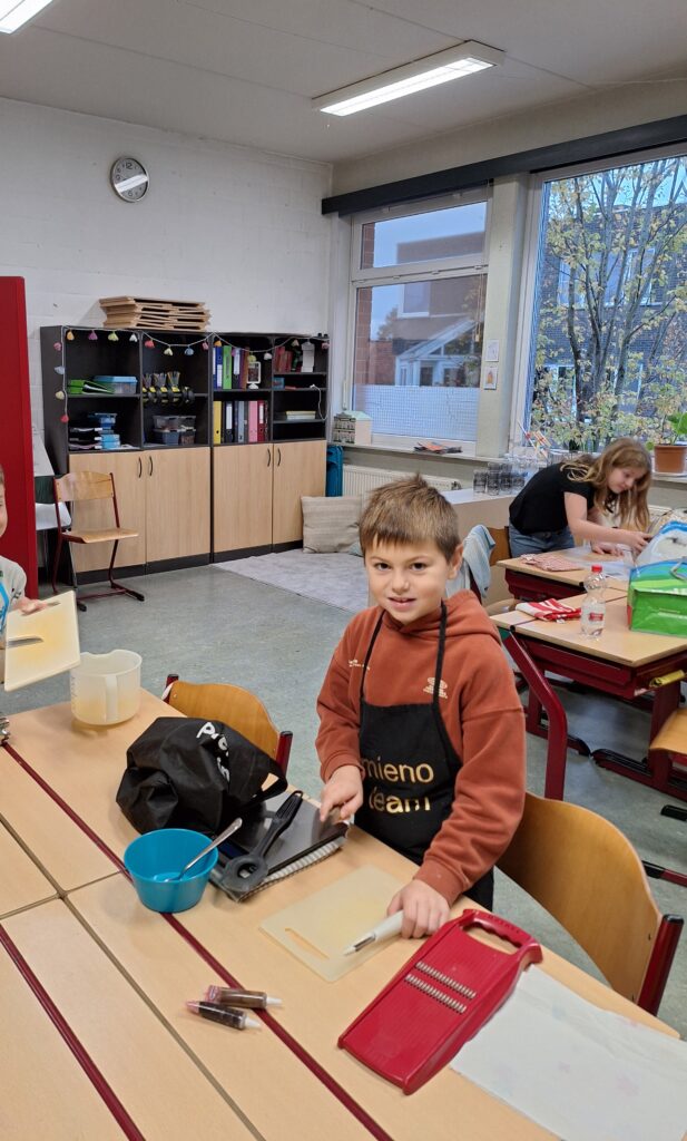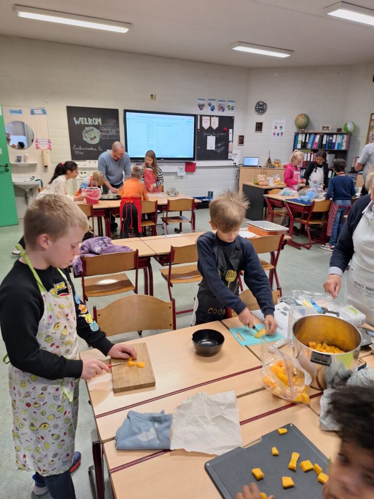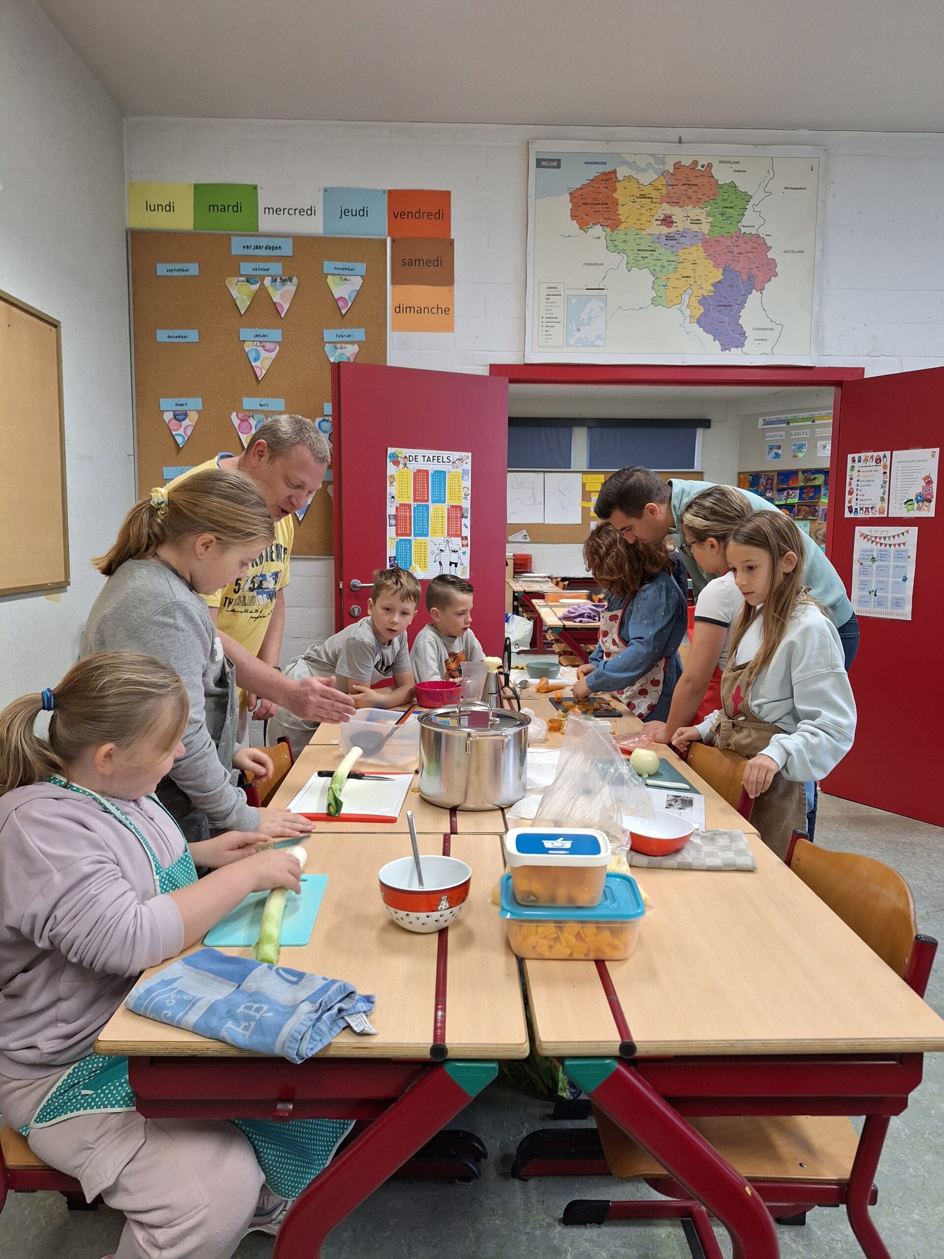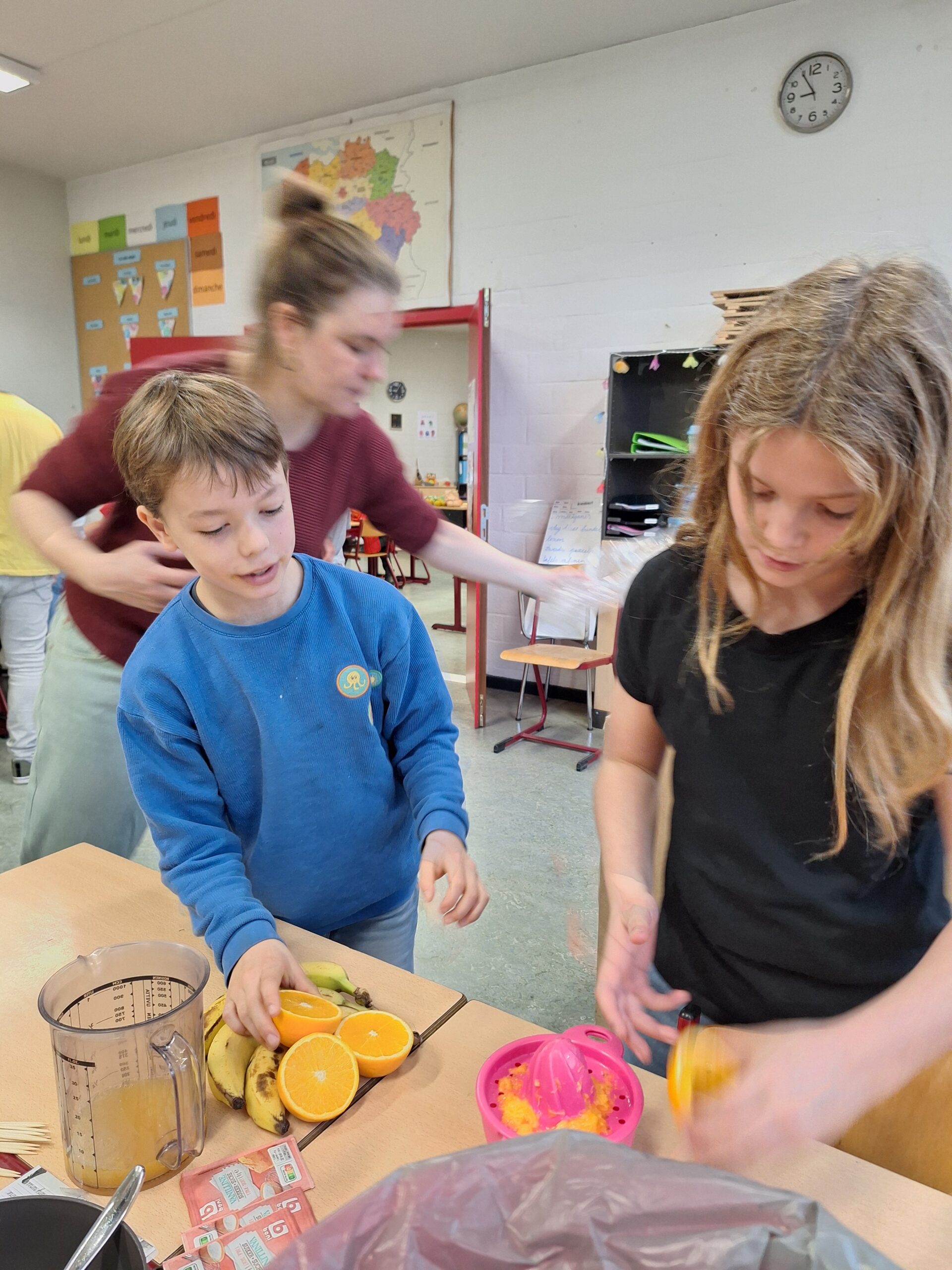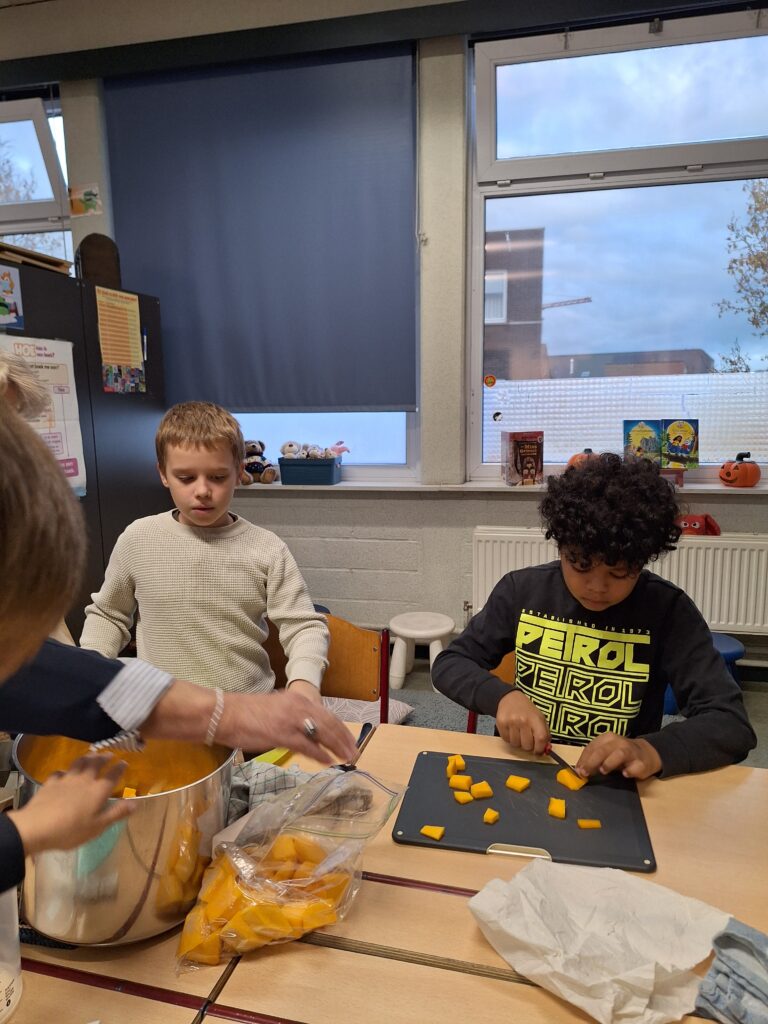 Wat een leerrijke, leuke en lekkere voormiddag: pompoenwafels, een griezelige smoothie en doodskopjes van groenten.