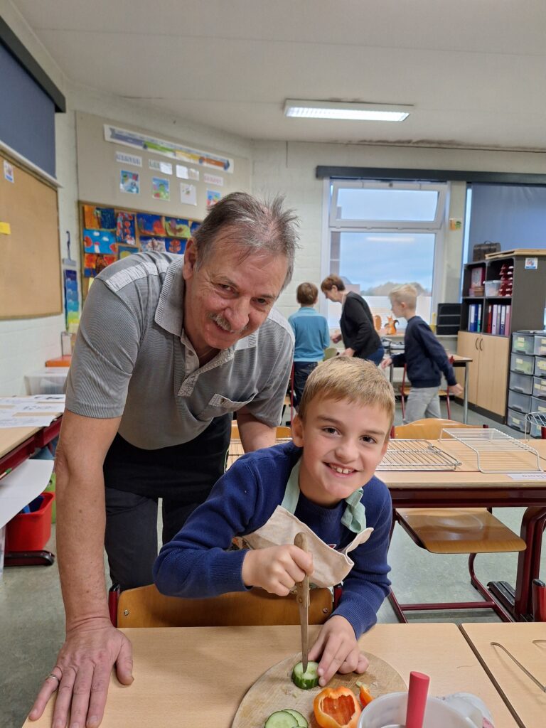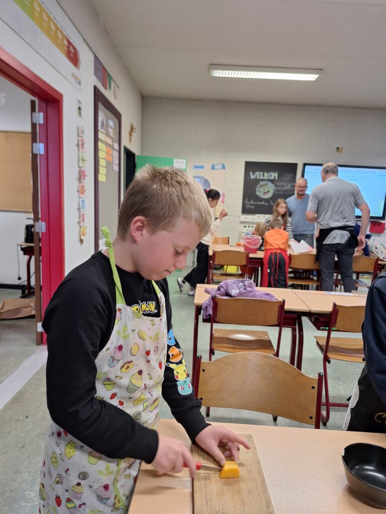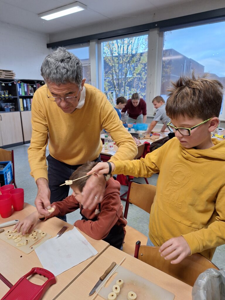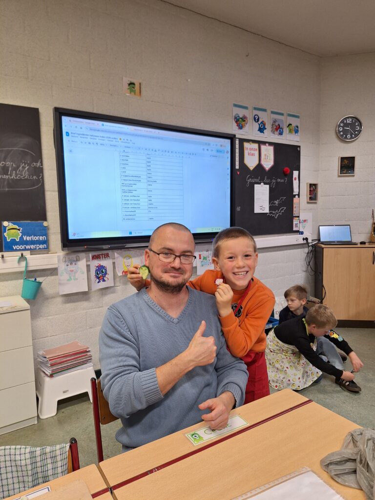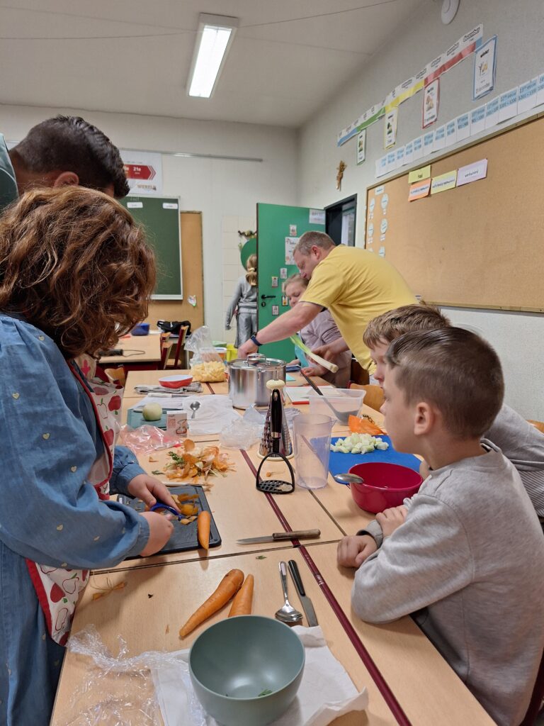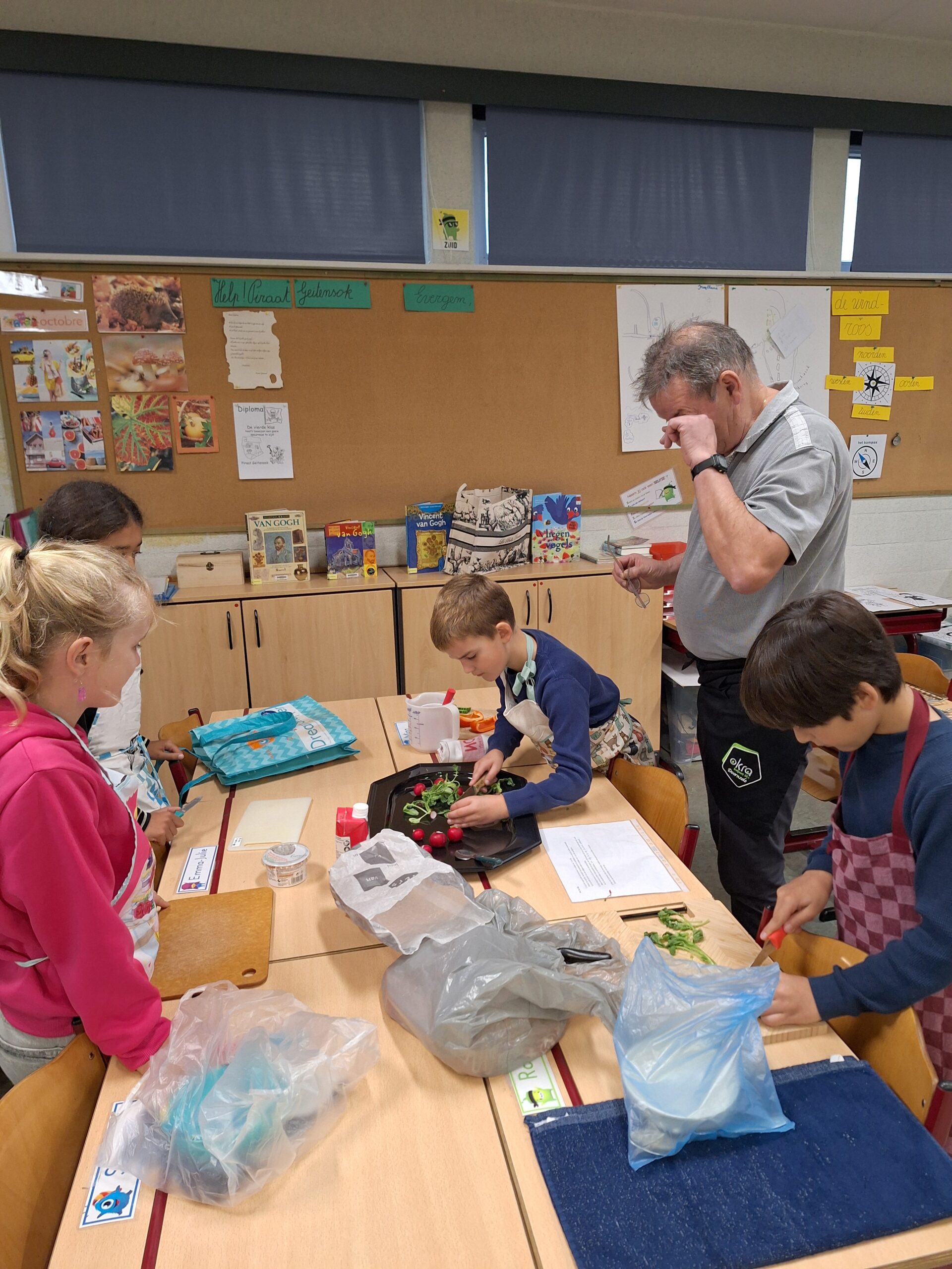 Wat een leerrijke, leuke en lekkere voormiddag: pompoenwafels, een griezelige smoothie en doodskopjes van groenten.