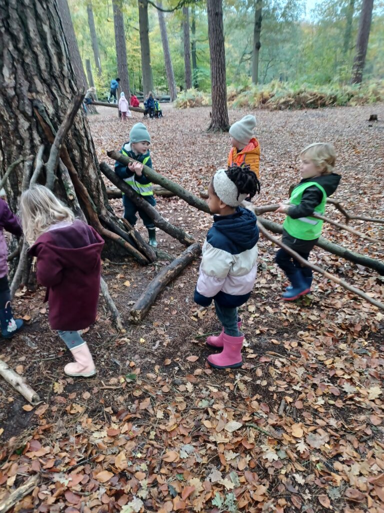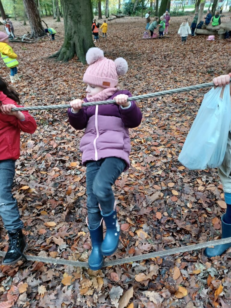 We mochten met de bus naar “Het Leen”. We gingen de herfst gaan verkennen. We volgden het kabouterpad en ontdekten allerlei rond de herfst: kleuren, paddenstoelen, mos, sporen, de natte grond, de verschillende vormen van blaadjes aan de takken en de vele die reeds op de grond lagen, verschillende noten en nog zoveel meer rond de herfst. We speelden in het speelbos, waar we takkenkampen bouwden, onze sterke spieren toonden,… Als laatste konden we nog even van de speeltuin genieten.