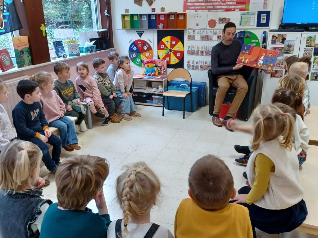Deze week kwamen naar aanleiding van de voorleesweek ouders en grootouders voorlezen in de klas. We hebben hele leuke verhaaltjes gehoord met als leidraad sint en piet.