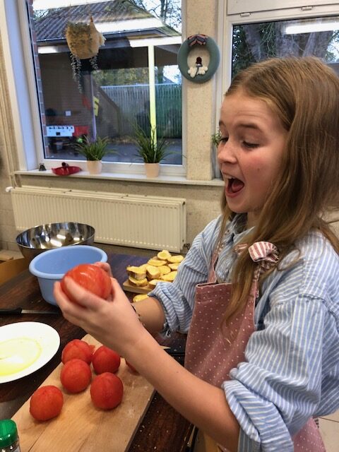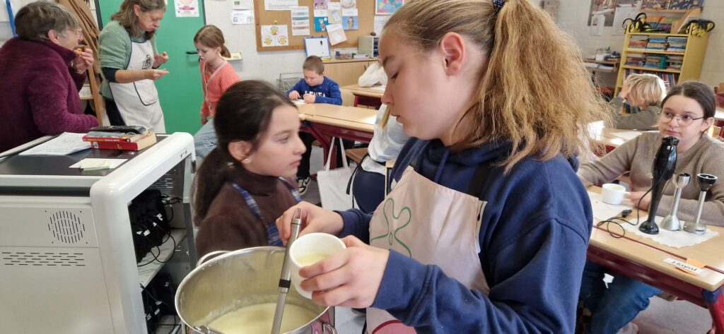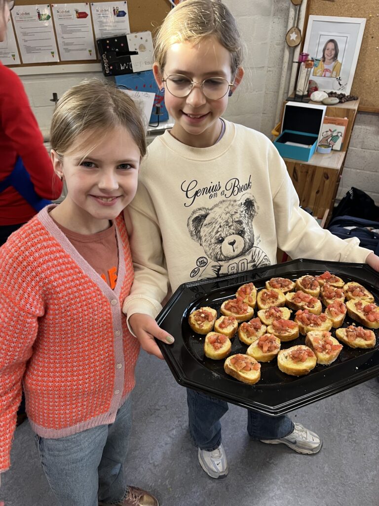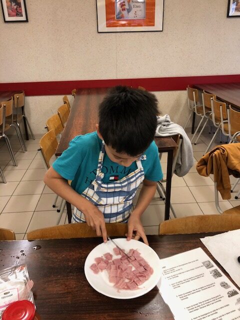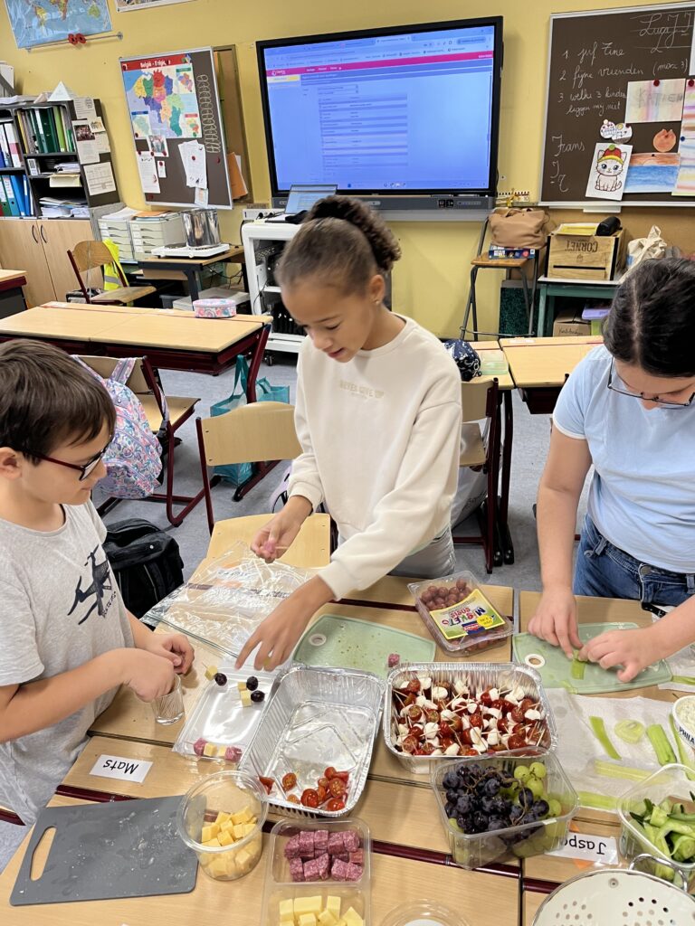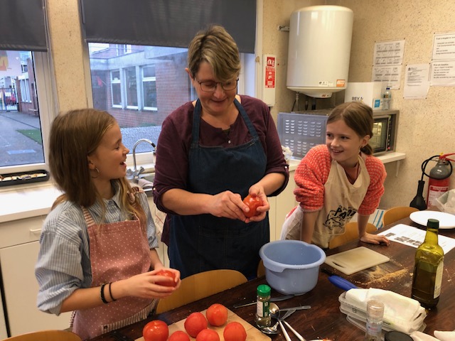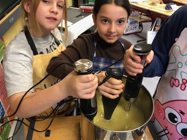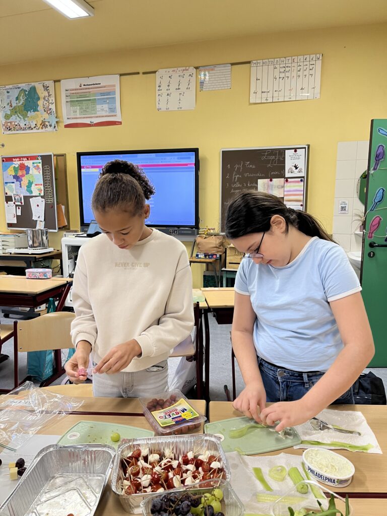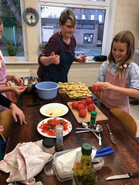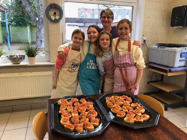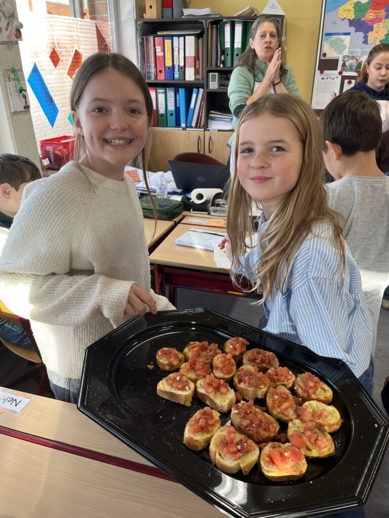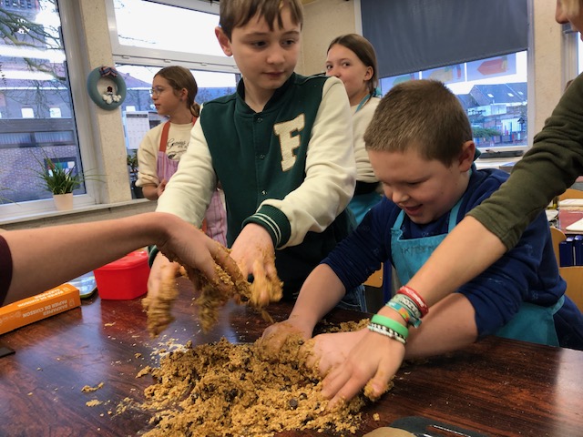 In de lessen Nederlands werkten we met de tekstsoort: instructies. We leerden recepten lezen en stap voor stap werken. Om te tonen dat we dat konden, maakten we in groepjes zelf een gerechtje klaar dat we daarna lekker mochten opeten, mmmm!