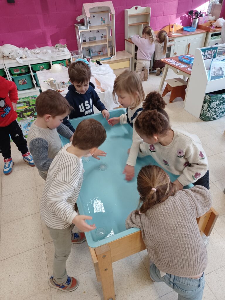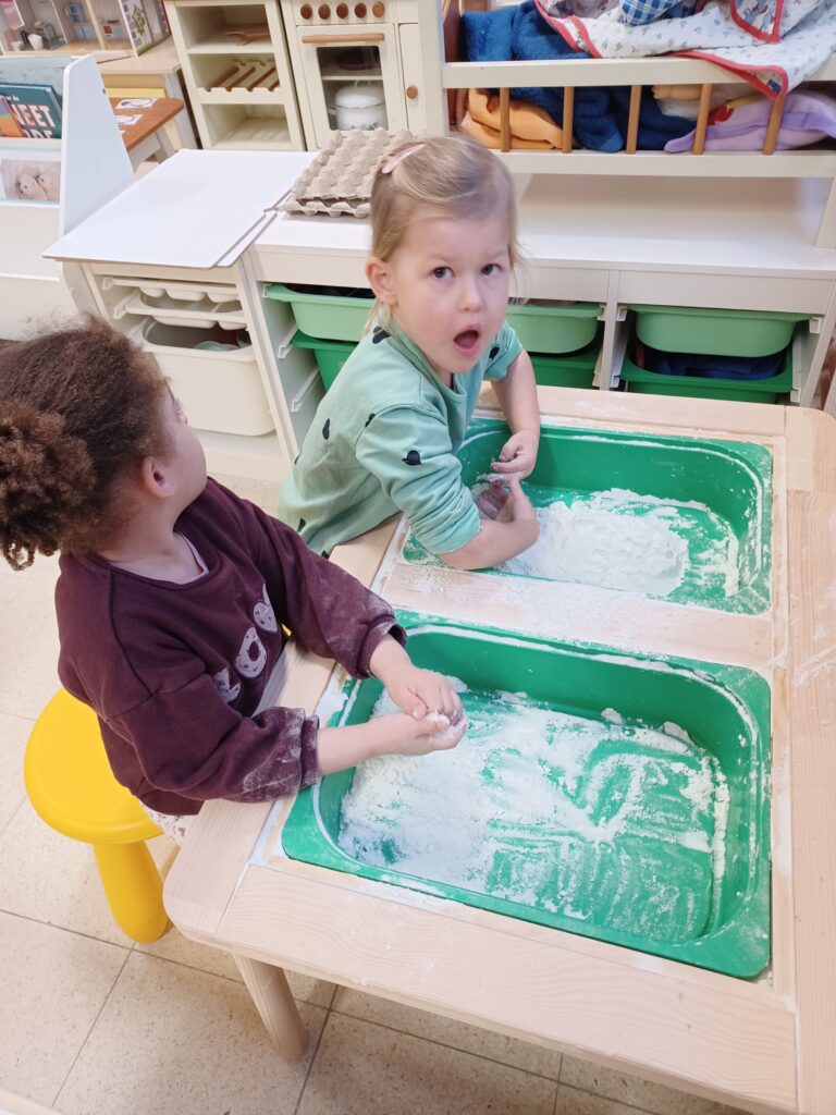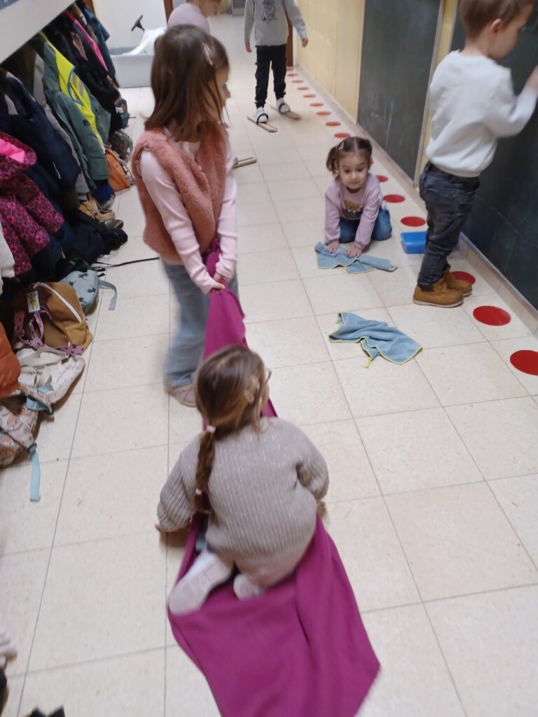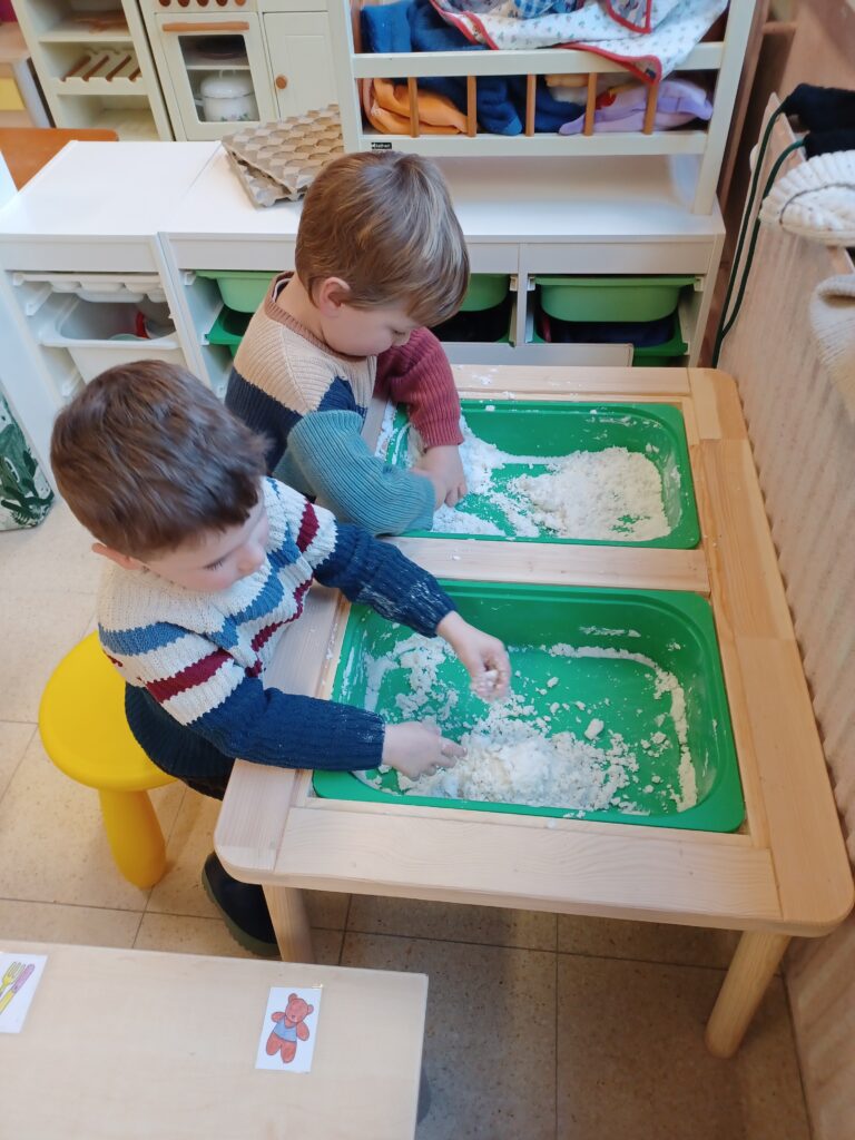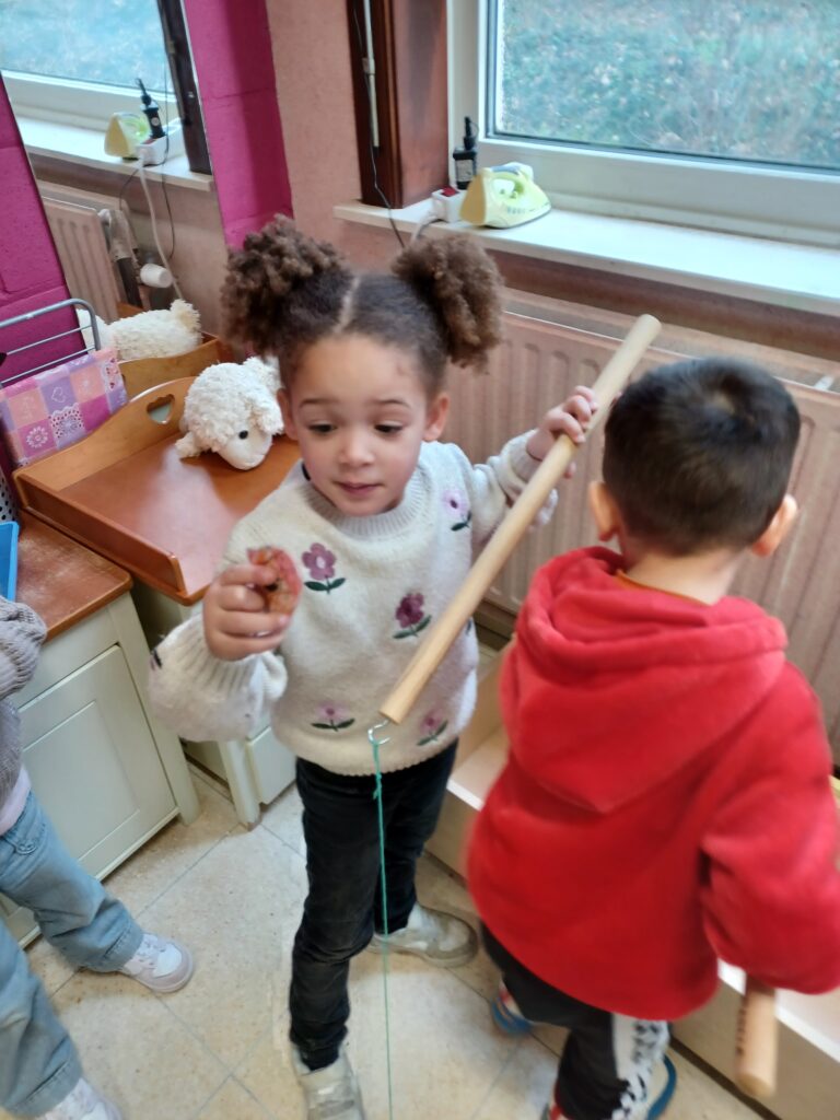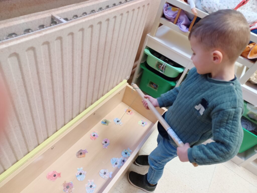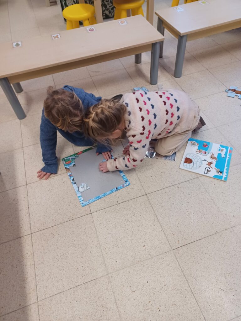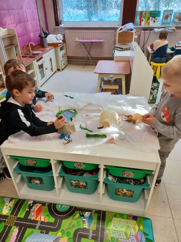 We knutselden, speelden spelletjes, gaven de pinguïn eten, we visten met magneten, we speelden met zelfgemaakte sneeuw, we experimenteerden met ijs, deden aan ijskappen, we mochten op de skilatten staan en sleeën in de gang. Kortom we hadden veel plezier.