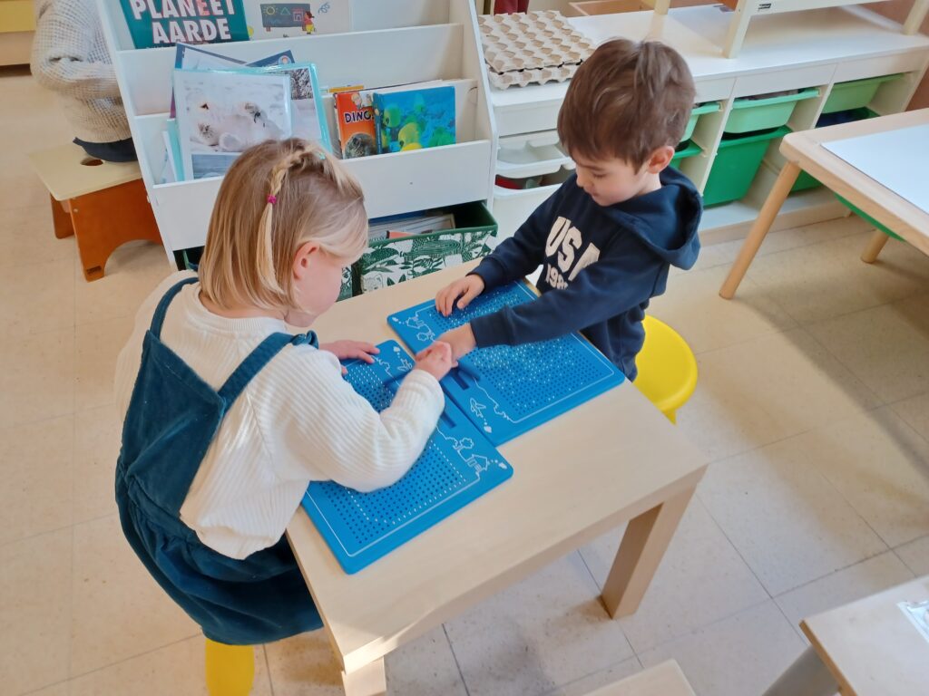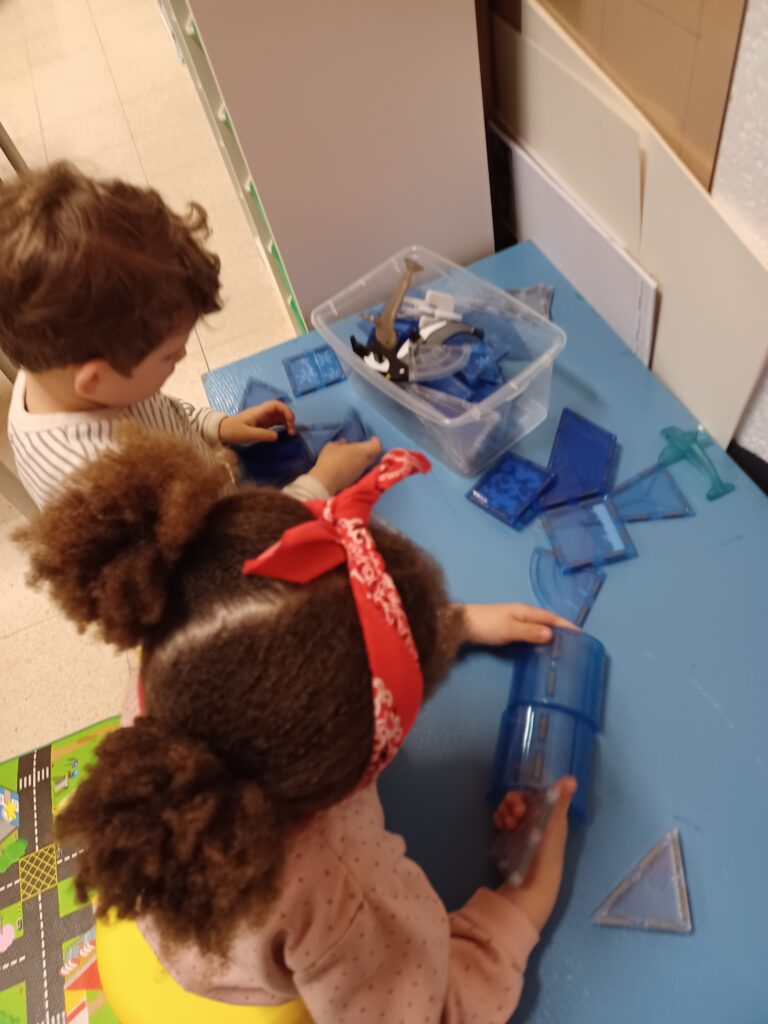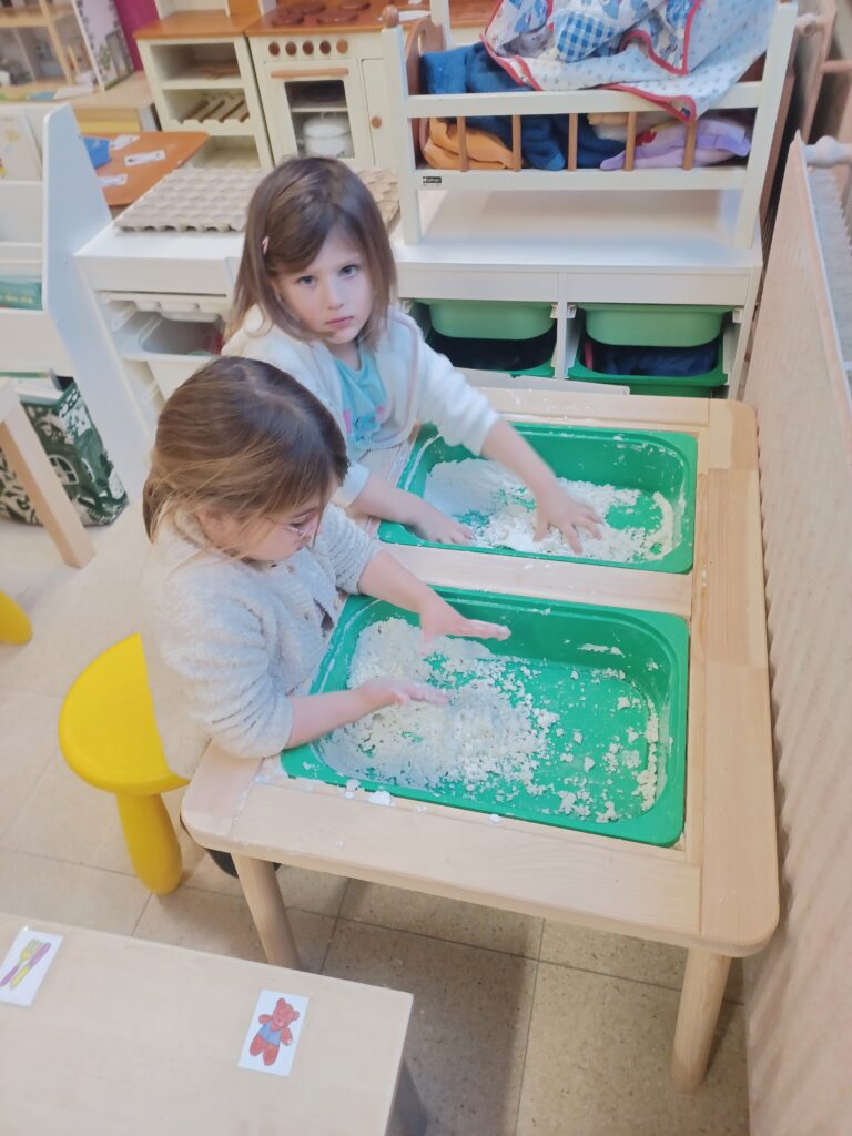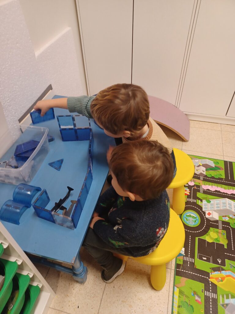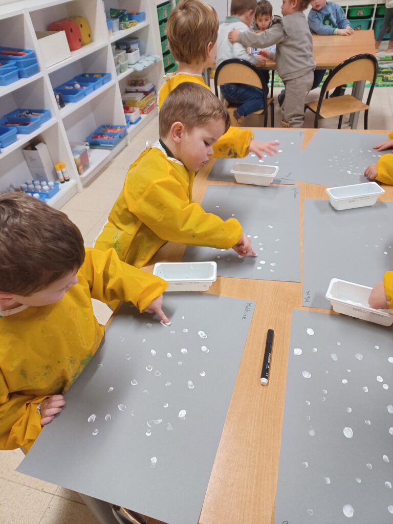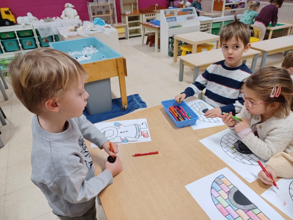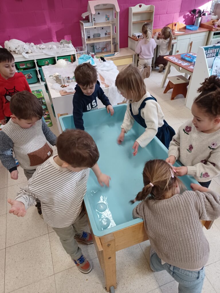 We knutselden, speelden spelletjes, gaven de pinguïn eten, we visten met magneten, we speelden met zelfgemaakte sneeuw, we experimenteerden met ijs, deden aan ijskappen, we mochten op de skilatten staan en sleeën in de gang. Kortom we hadden veel plezier.