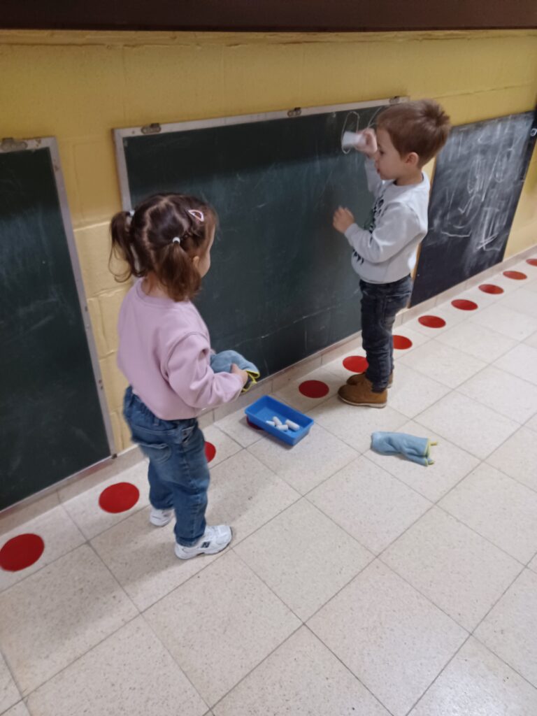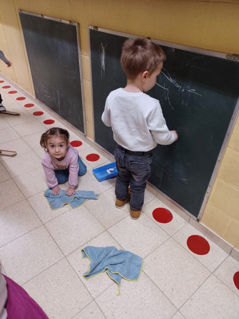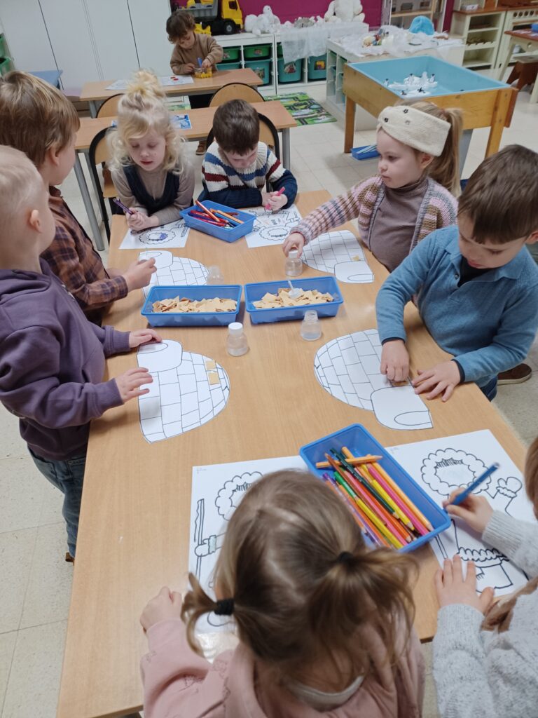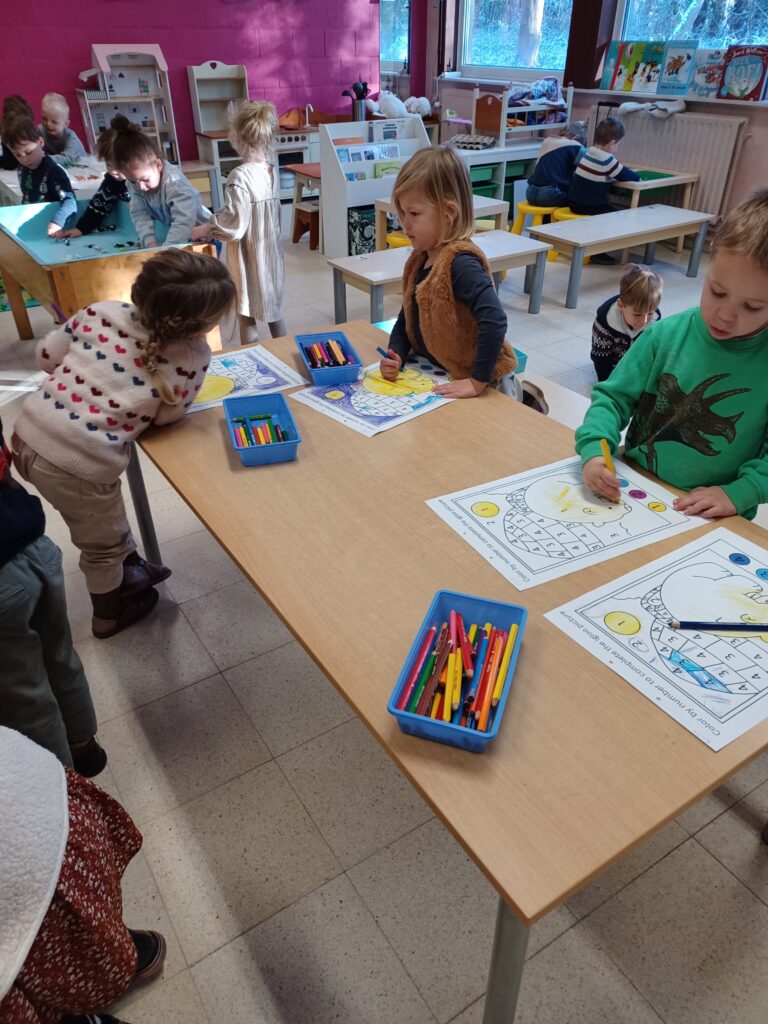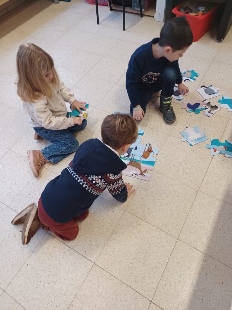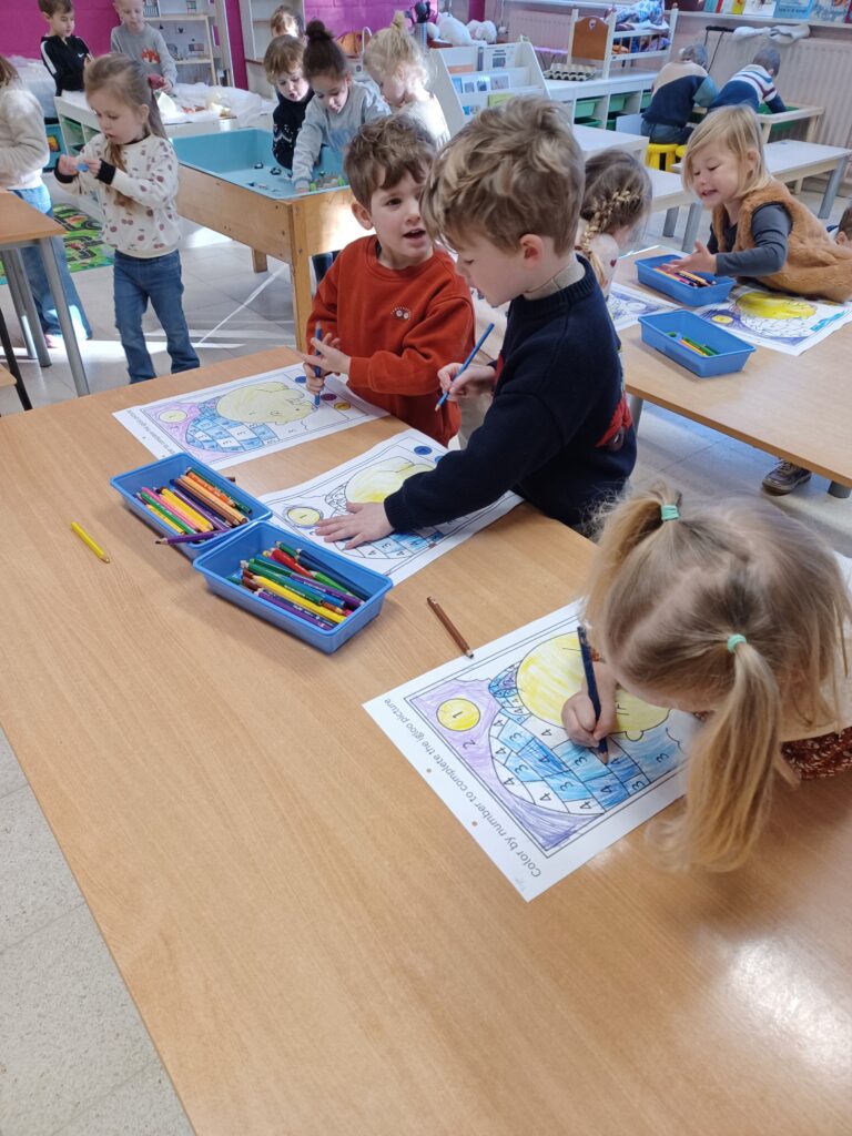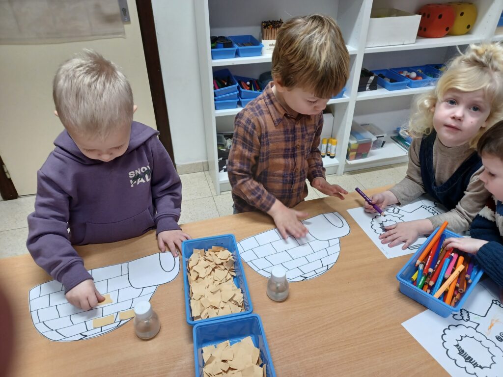 We knutselden, speelden spelletjes, gaven de pinguïn eten, we visten met magneten, we speelden met zelfgemaakte sneeuw, we experimenteerden met ijs, deden aan ijskappen, we mochten op de skilatten staan en sleeën in de gang. Kortom we hadden veel plezier.