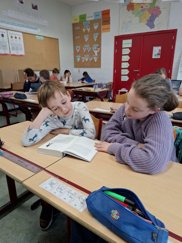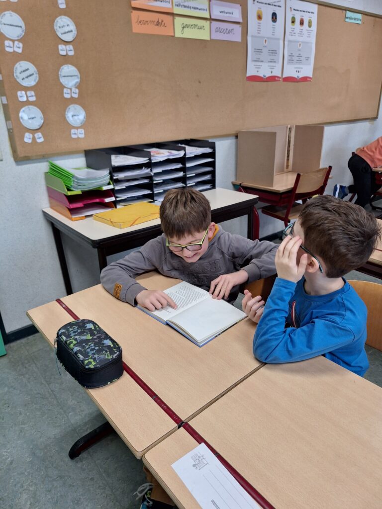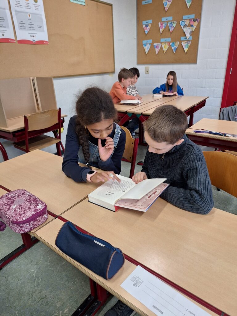 De kinderen uit het 4de leerjaar kozen vorige week een boek dat ze de komende weken samen zullen uitlezen. Er wordt zowel in de klas als thuis gelezen. Iedere week stellen de kinderen uit hetzelfde groepje elkaar een leesvraag. Veel leesplezier!