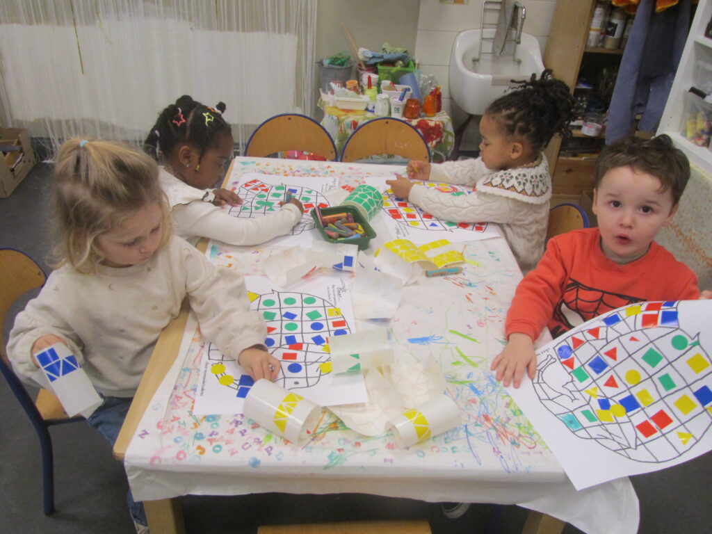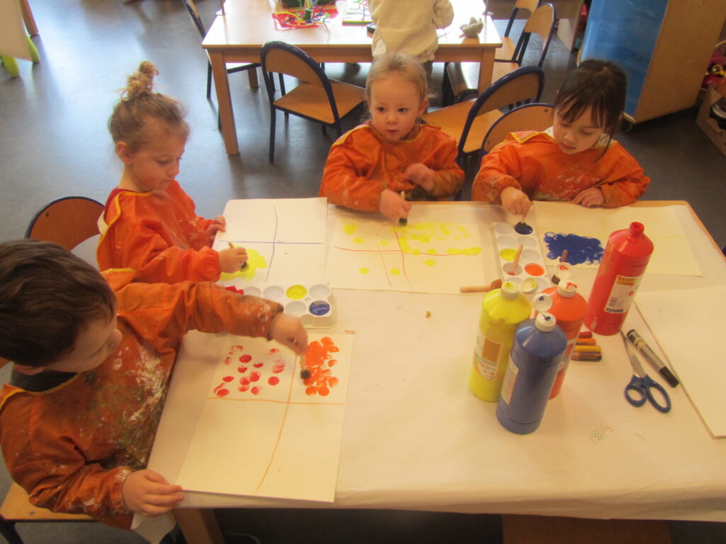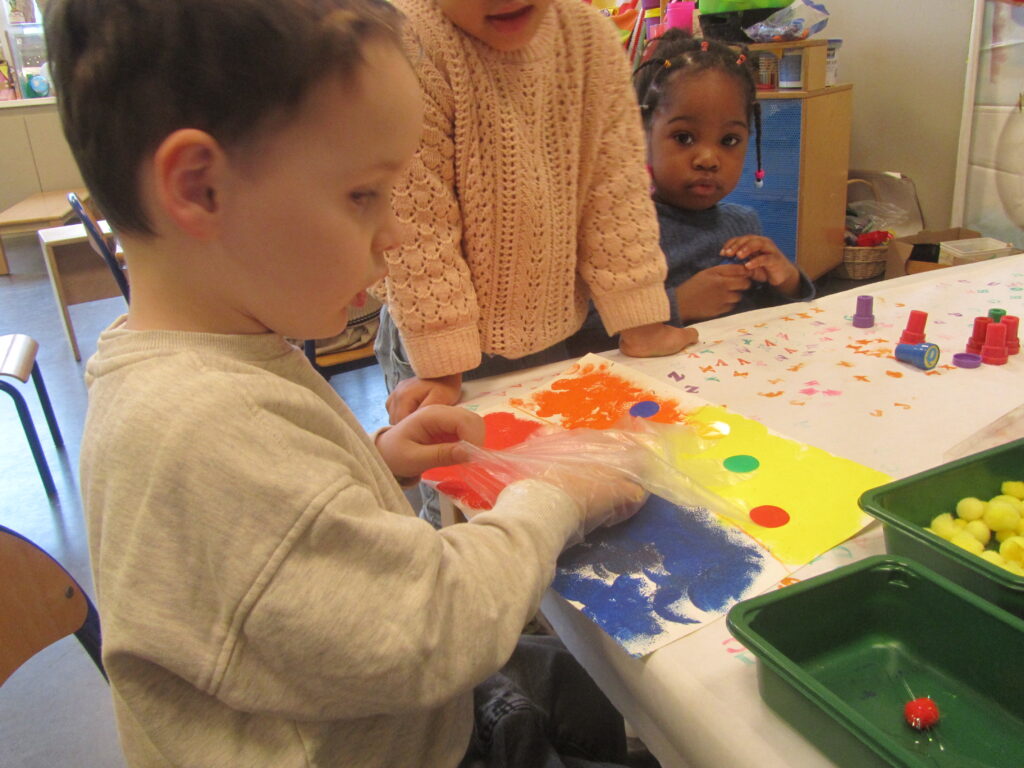 Geel, rood, oranje en blauw,