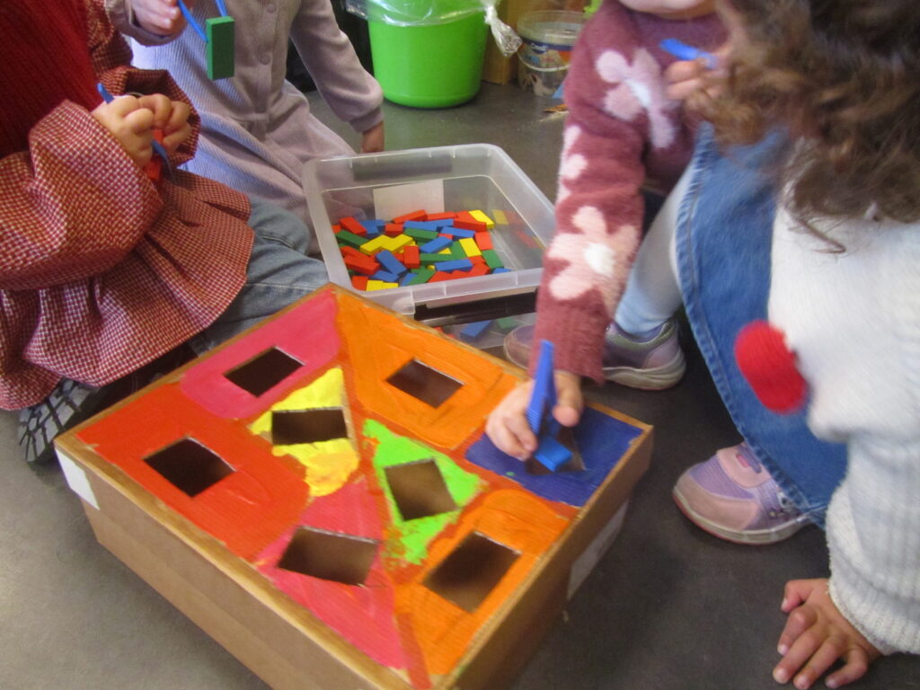 Met blokjes op zijn billen en zijn snuit,