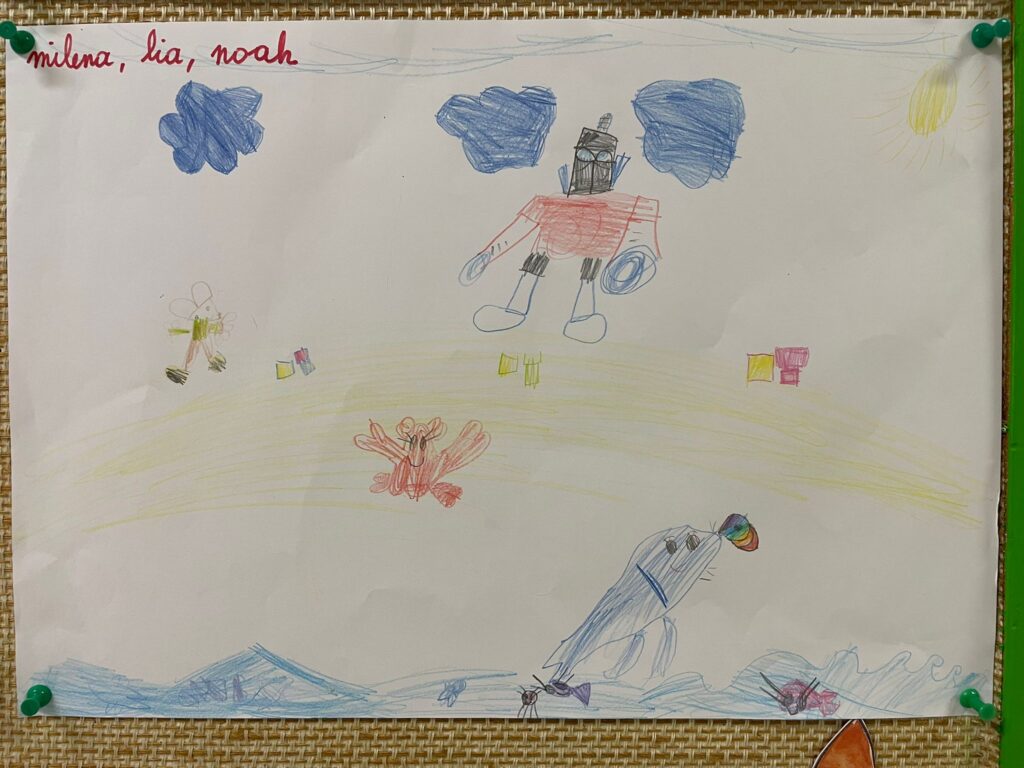 Maar… Op een nacht sloop er een rood- blauwe robot rond het