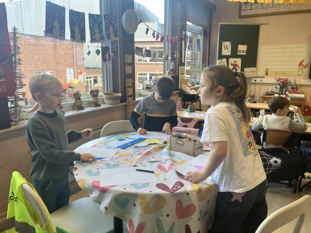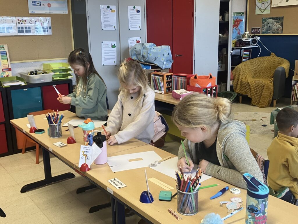 In leesboek 4 duiken we in het thema sprookjes ✨. De kinderen verzinnen hun eigen sprookje en vertellen het aan de juf, die het verhaal voor hen neerschrijft. Daarna gaan ze creatief aan de slag en maken ze stokpopjes bij hun sprookje. Met hun popjes dragen ze het verhaal vol trots voor aan de klas. Een moment van fantasie, taalplezier en durf – genieten jullie mee? 🌟