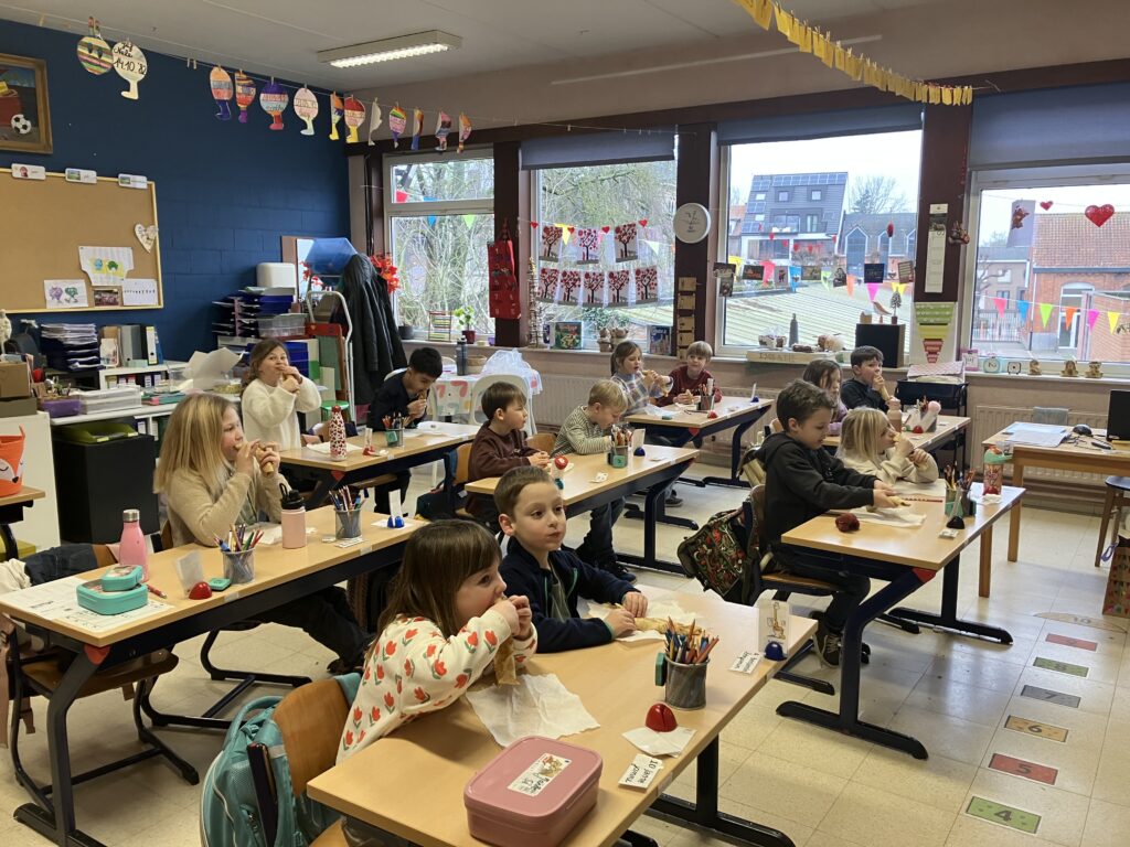 Tot grote verrassing van de kinderen kregen de leerlingen van het eerste leerjaar ook écht een heerlijke pannenkoek!