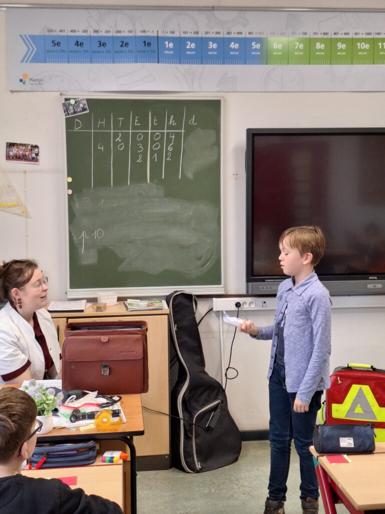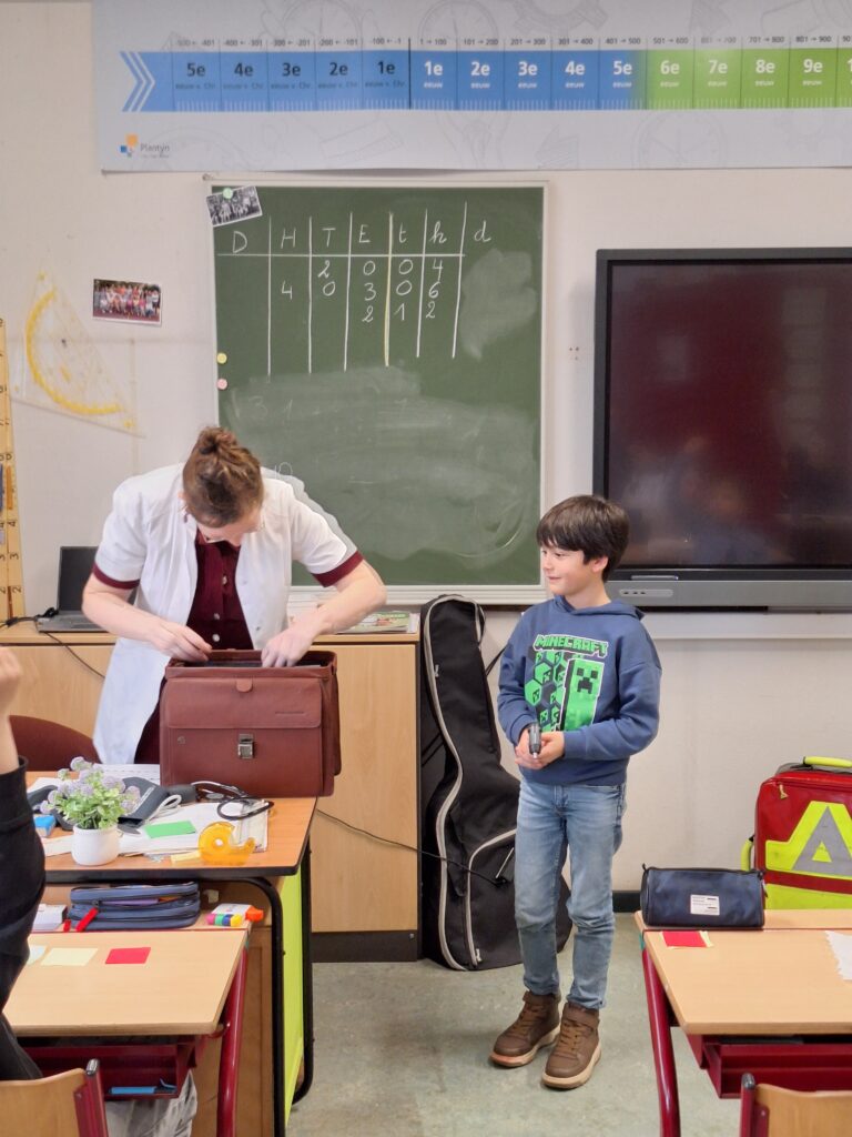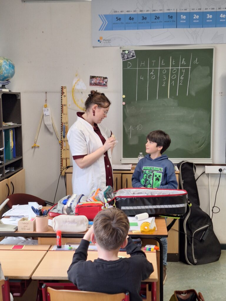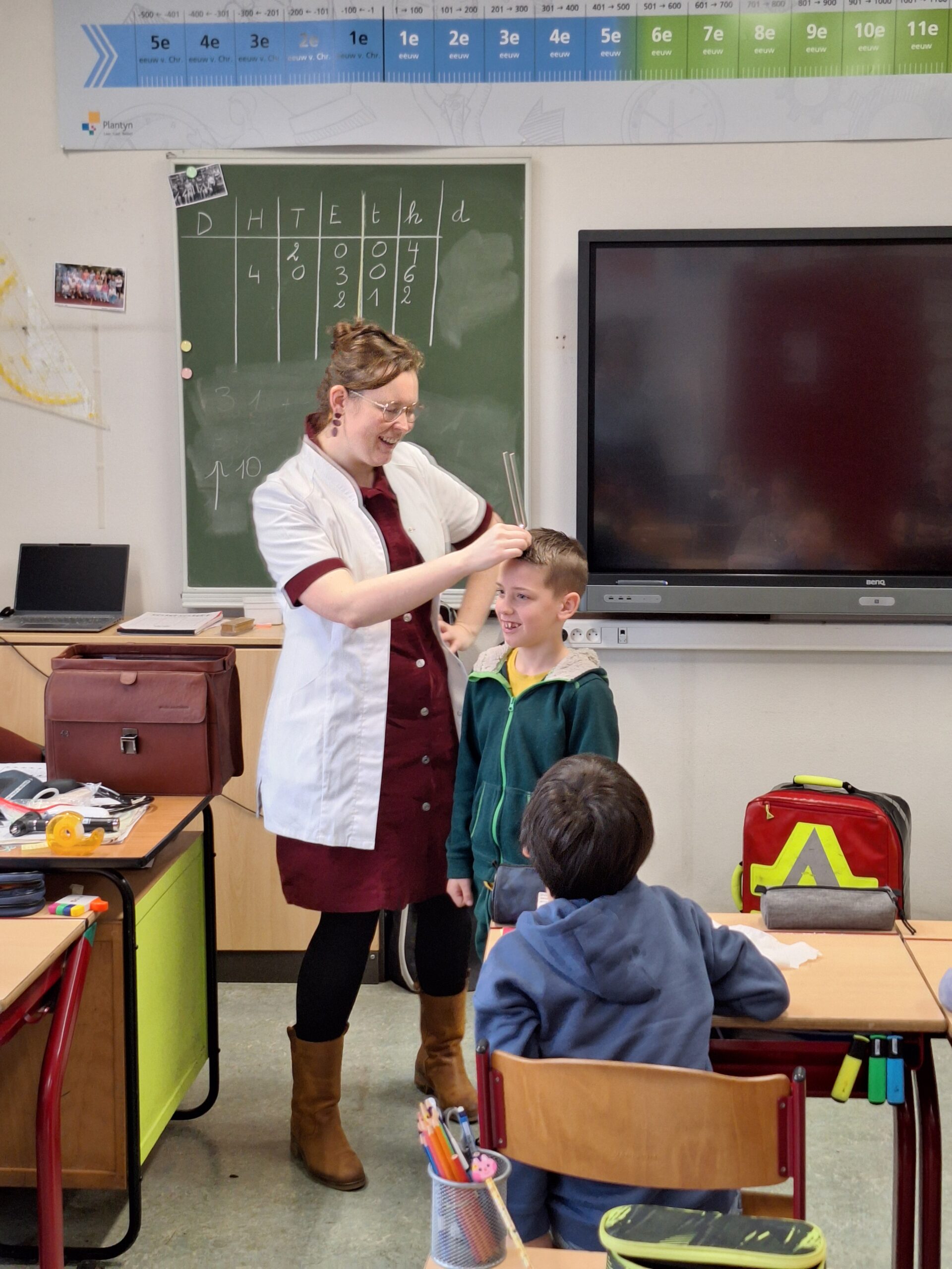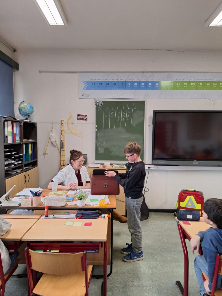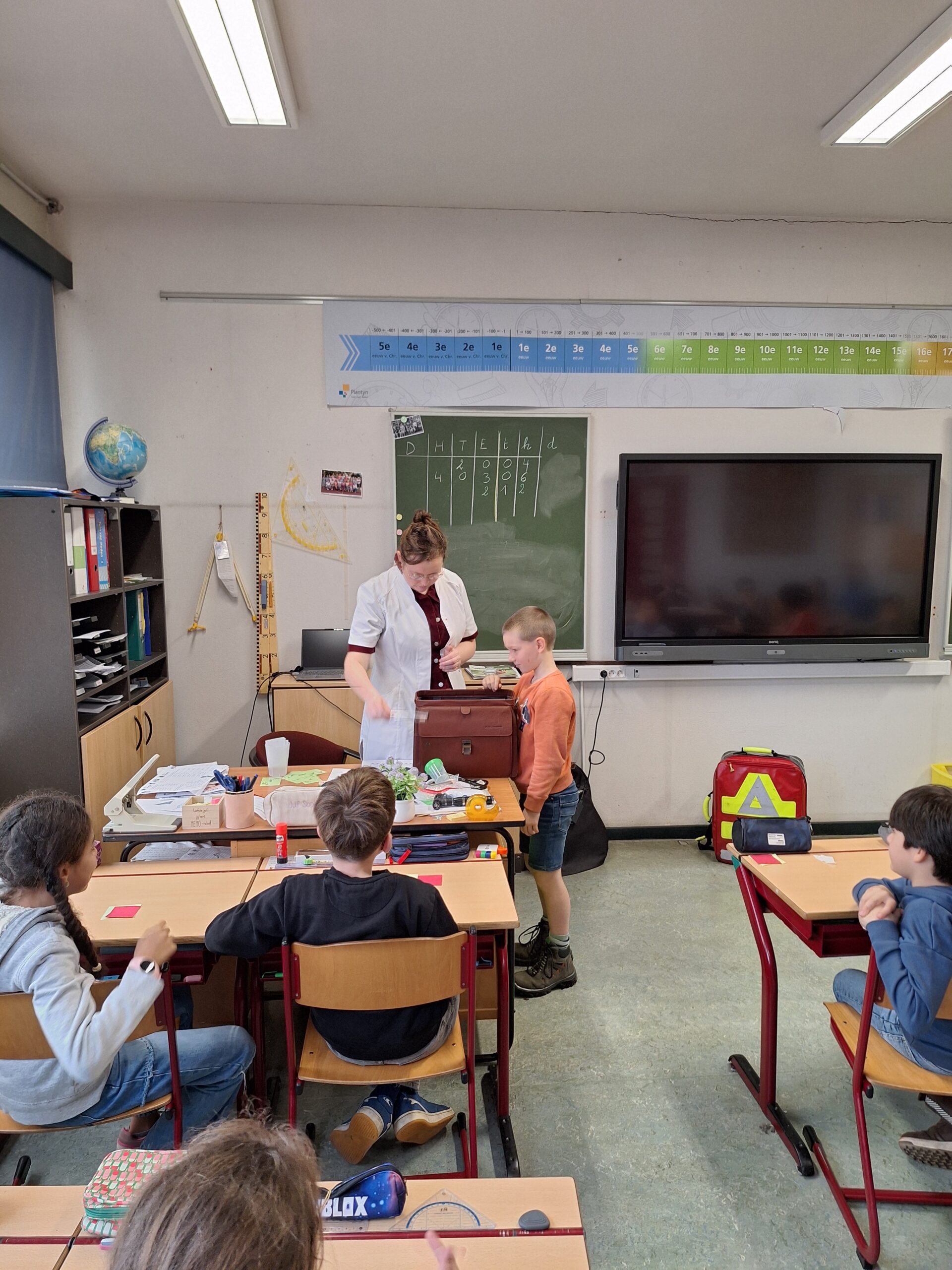 Vandaag mochten we dokter Lisa verwelkomen in de klas. We werden al meteen op de proef gesteld. Welke noodsituaties krijgen voorrang? Nadien kregen we uitleg over de verschillende instrumenten uit de dokterstas en hun werking. Tot slot testten de kinderen in kleine groepjes enkele instrumenten en technieken uit. Dankjewel aan dokter Lisa voor de uitleg en de mama van Fleur voor de ondersteuning. We hadden een heel leerrijke en boeiende voormiddag!