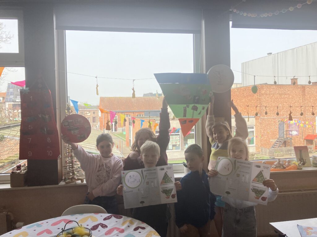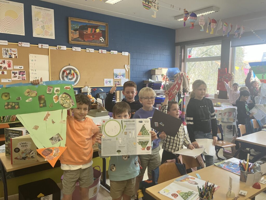 Een ideaal oefenmoment waarbij de kinderen samenwerkten, overlegden, elkaar hielpen en complimenten gaven. Zo leren ze niet alleen over gezonde voeding, maar ook van elkaar.