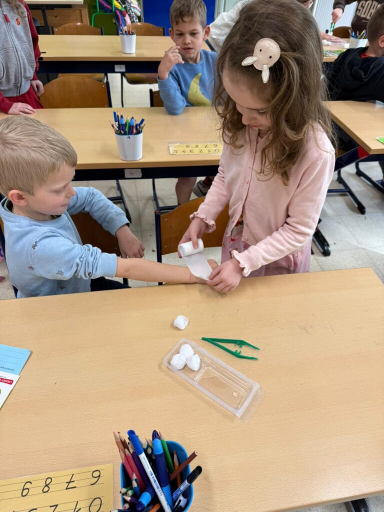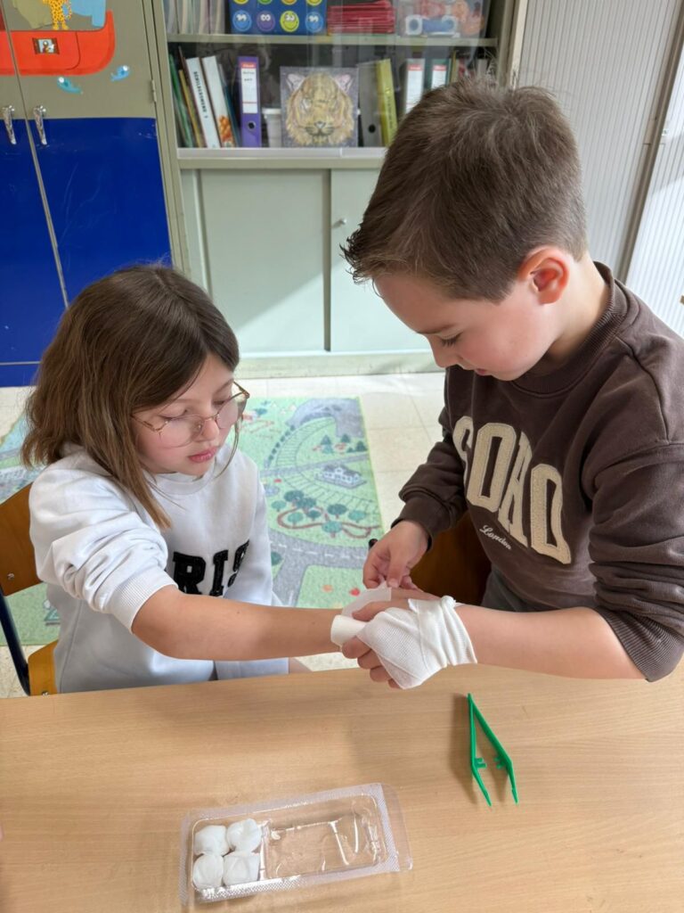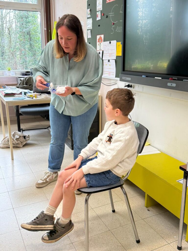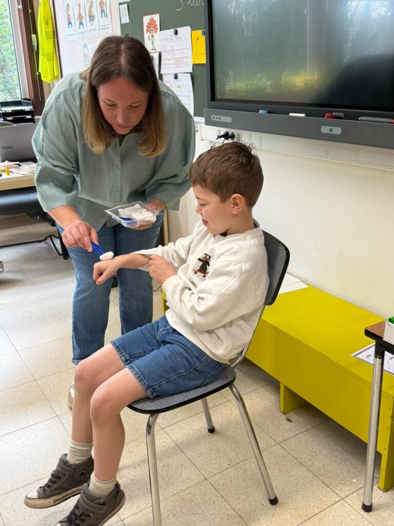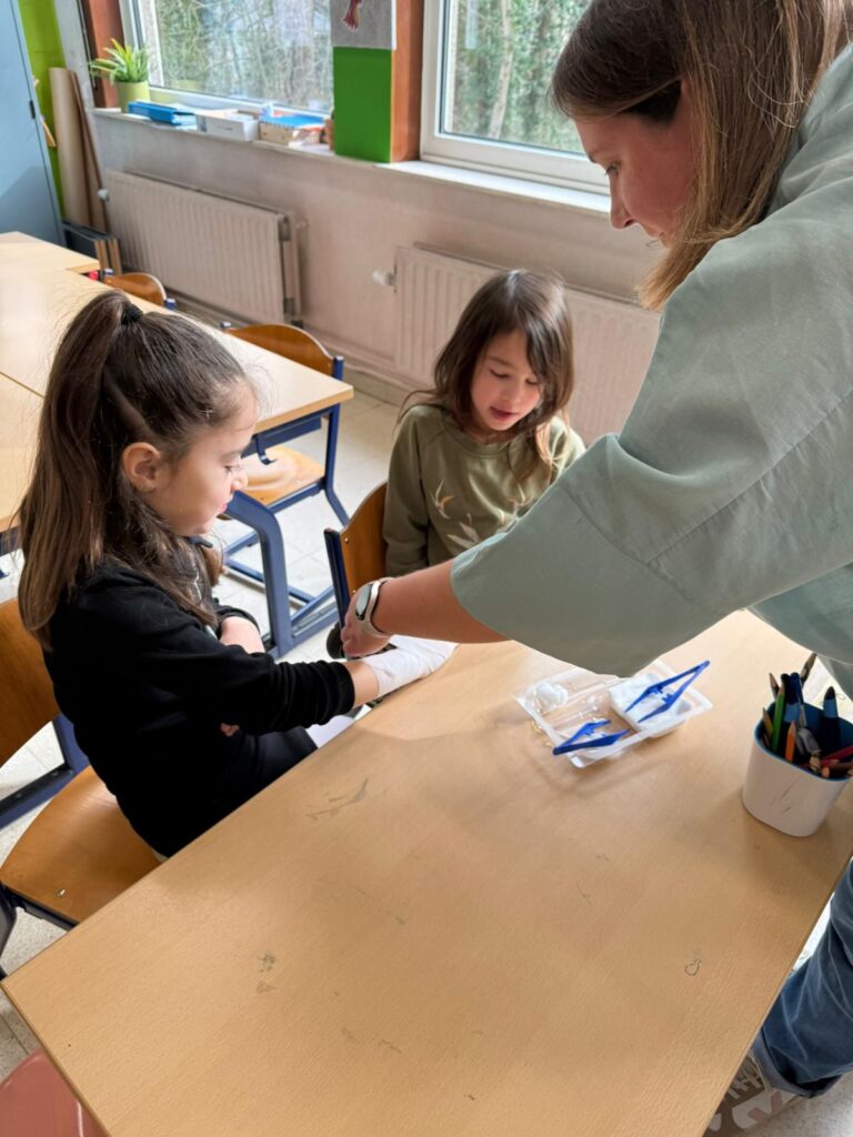 De mama van Leon kwam bij ons langs om te vertellen over haar werk als verpleegster. Ze legde uit hoe je wonden moet verzorgen en waarom goede hygiëne zo belangrijk is. We leerden ook hoe we een verband moeten aanleggen. Het was heel interessant en we hebben veel bijgeleerd. Dank u wel aan de van mama Leon, voor deze leerrijke uitleg!