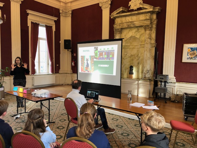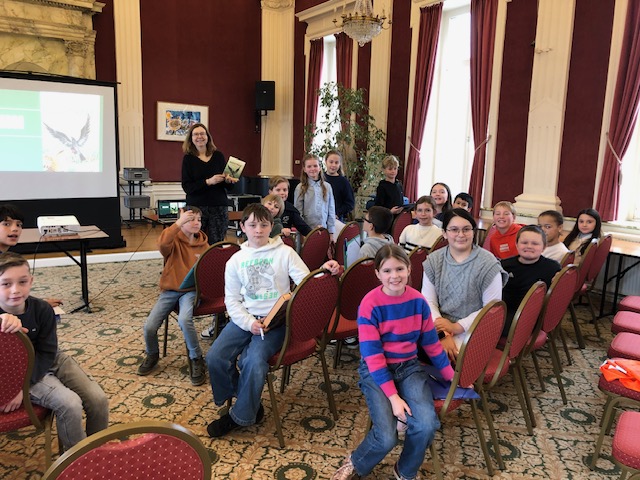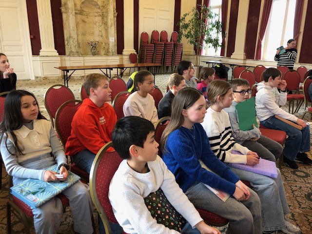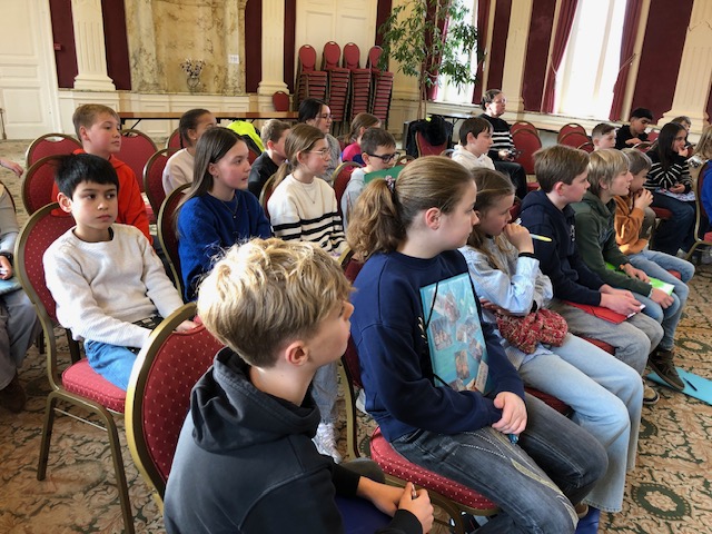 In februari gingen we luisteren naar auteur Gitte Van Lommel. We luisterden naar haar in de raadszaal van het gemeentehuis. Ze vertelde over haar boek Nachtraafmeisje waarin Rosalie, een hoogsensitief meisje tot het uiterste gaat om haar gezin te beschermen. Op het einde kregen we 7 minuten tijd om zelf een verhaal te beginnen schrijven. 7 minuten om zoveel mogelijk losse woorden of samenhangende zinnen te schrijven, zonder te stoppen. Dat leverde heel wat ideeën en de kinderen van 5a wilden in de klas verder schrijven. Ze kropen heel gemotiveerd in hun pen en schreven elk een mooi verhaal!