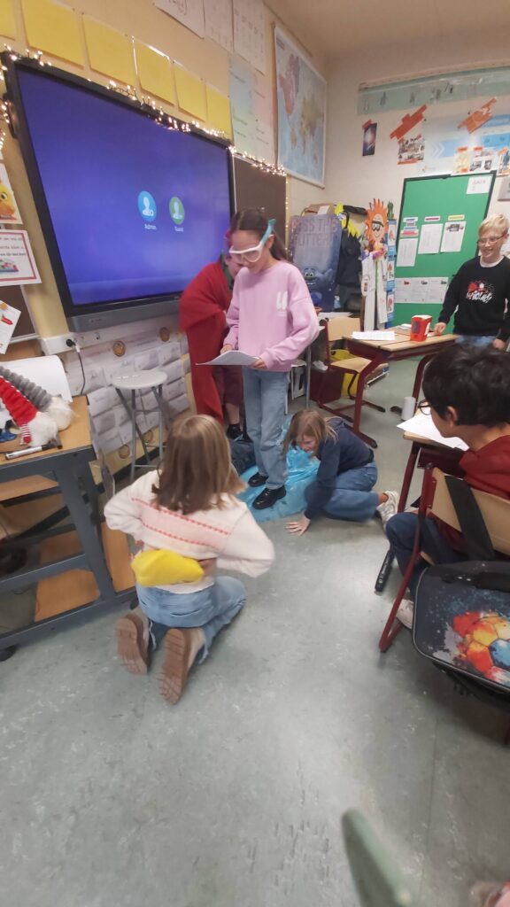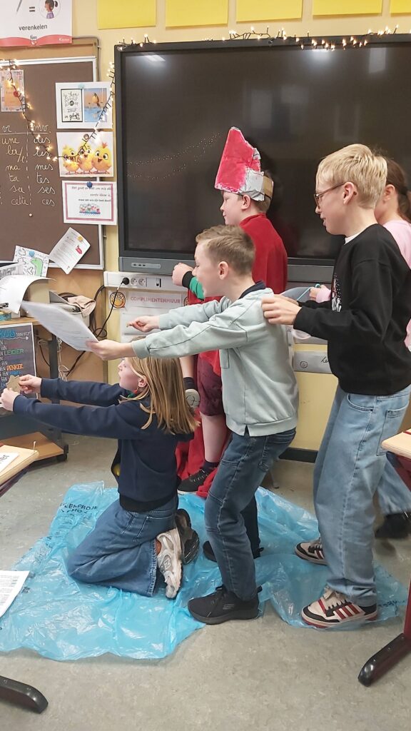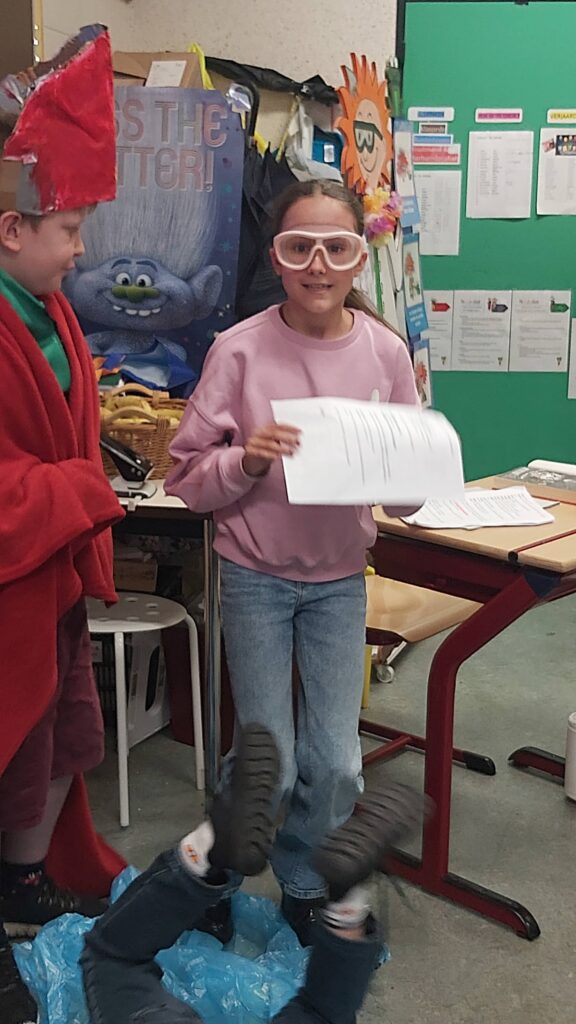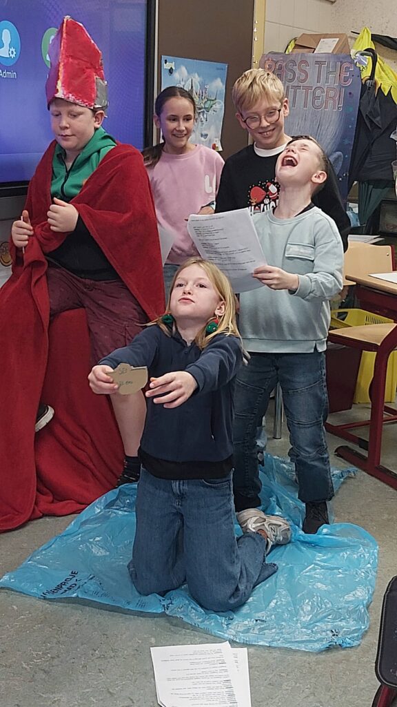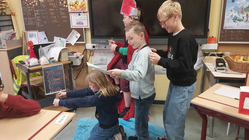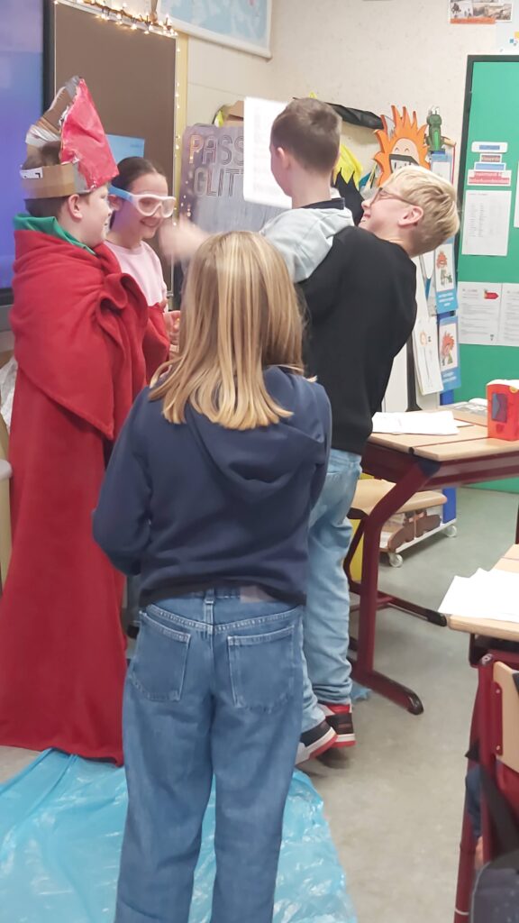 Groepswerk… voor de een al gemakkelijker dan voor de andere maar ze zijn er allen in geslaagd om een verhaal goed om te toveren in een toneelspel. Ze hebben er elk van genoten en het publiek ook ;-).