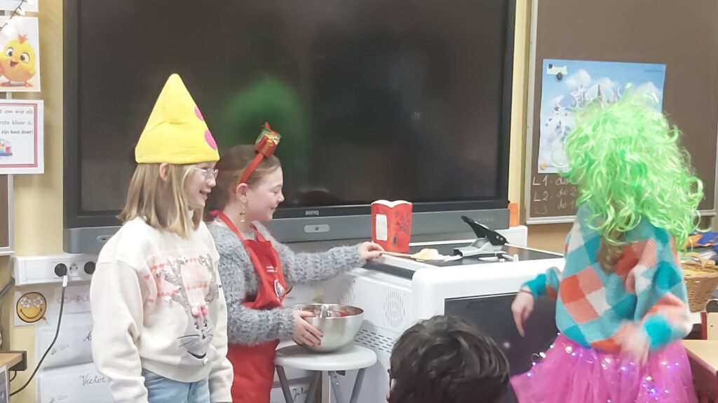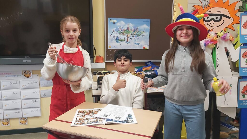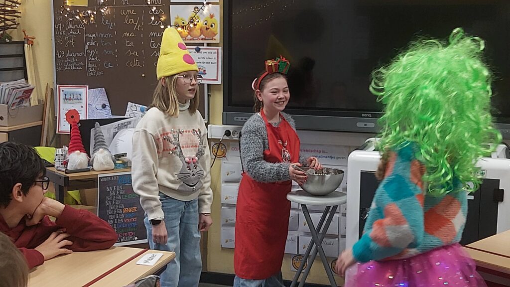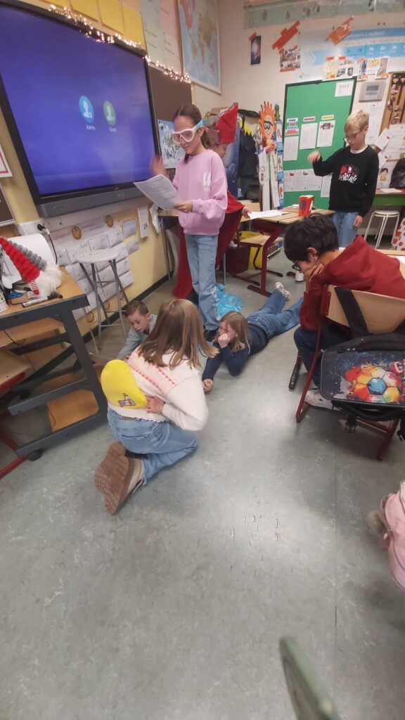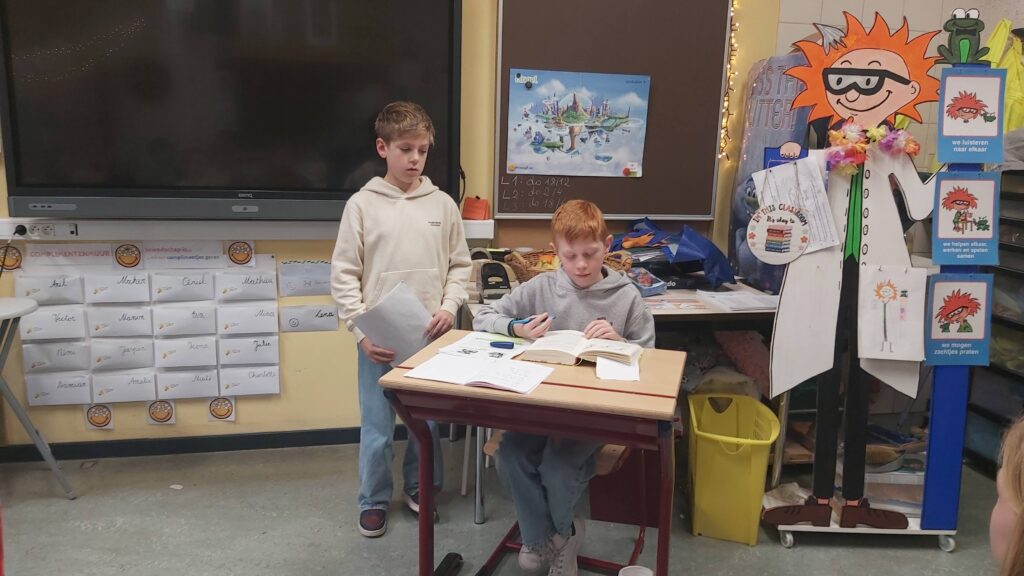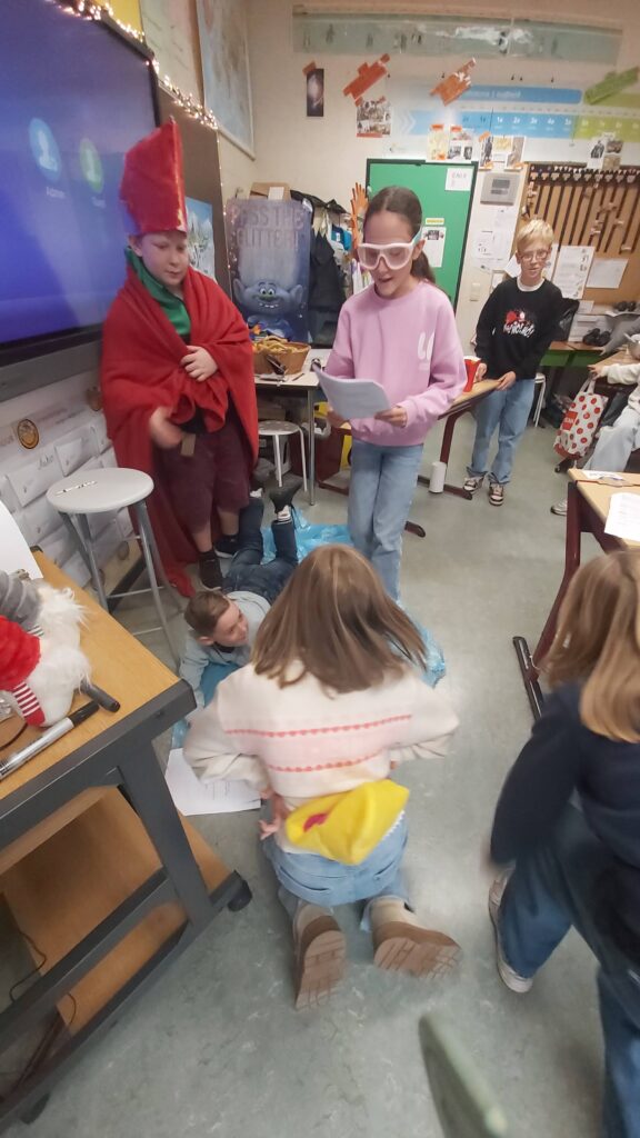 Groepswerk… voor de een al gemakkelijker dan voor de andere maar ze zijn er allen in geslaagd om een verhaal goed om te toveren in een toneelspel. Ze hebben er elk van genoten en het publiek ook ;-).
