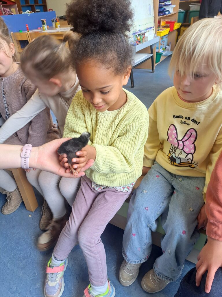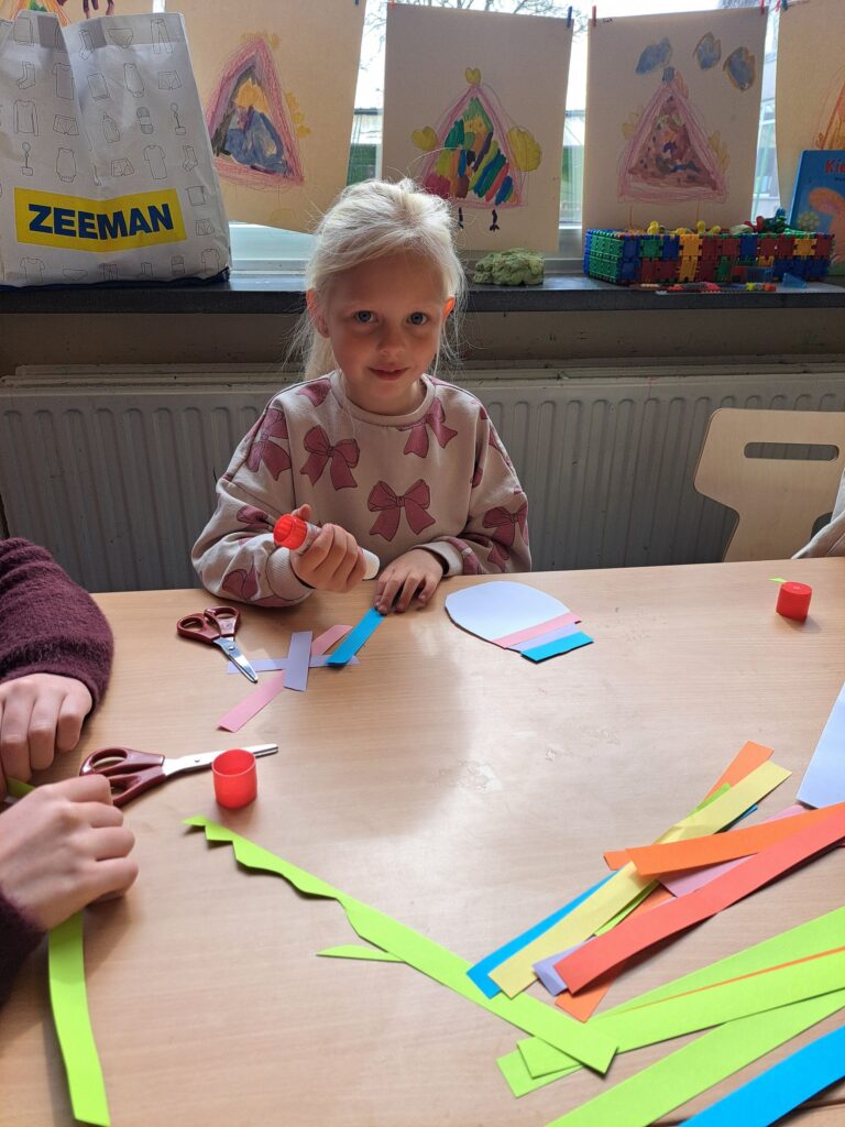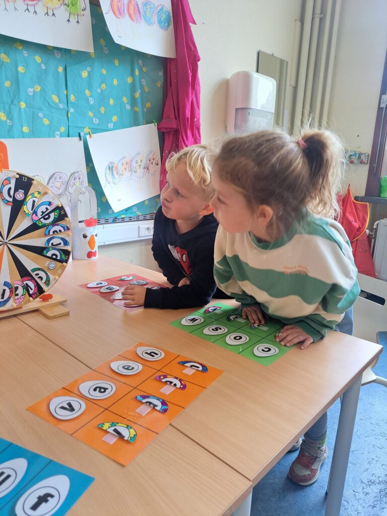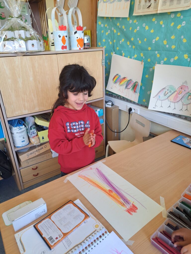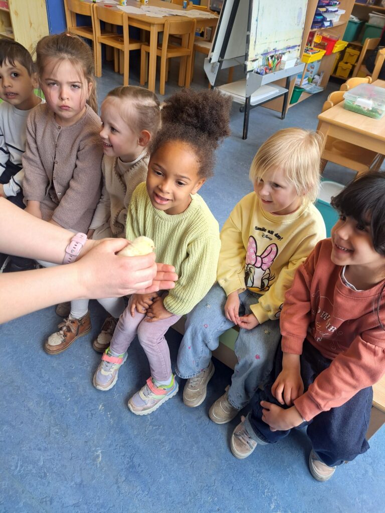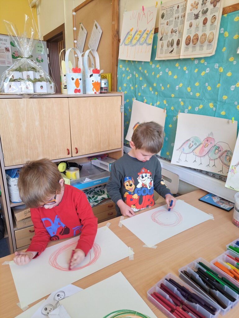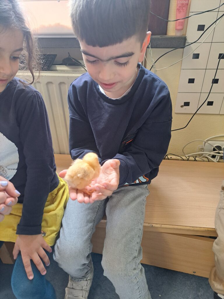 De laatste twee weken voor de paasvakantie zaten de kleuters helemaal in de paassfeer! We mochten eitjes versieren, kuikentjes ontmoeten, met de B-bot spelen, een eierzoektocht doen op de speelplaats, pijlen tekenen voor de paashaas, een paasmandje knutselen… Heel wat te beleven dus!