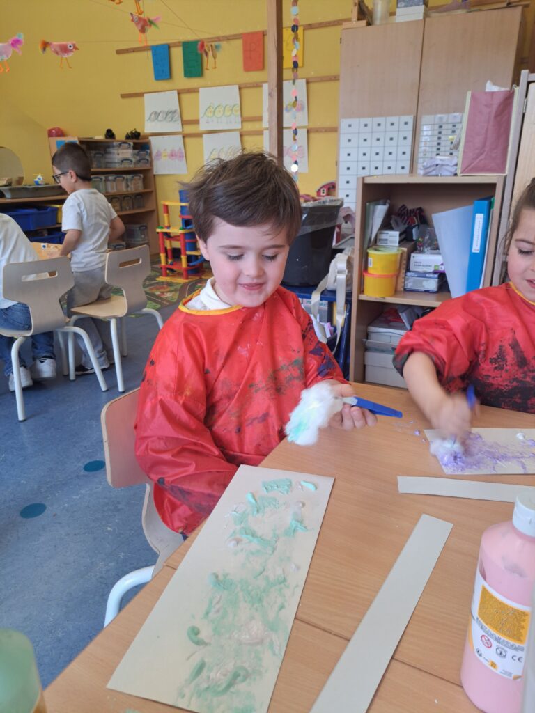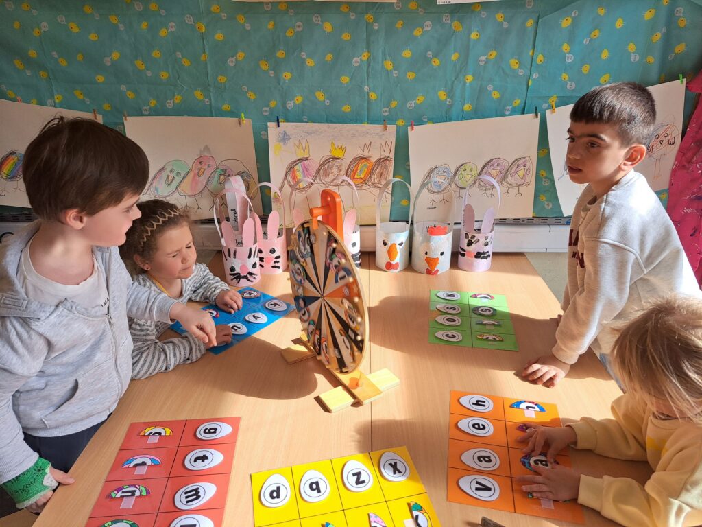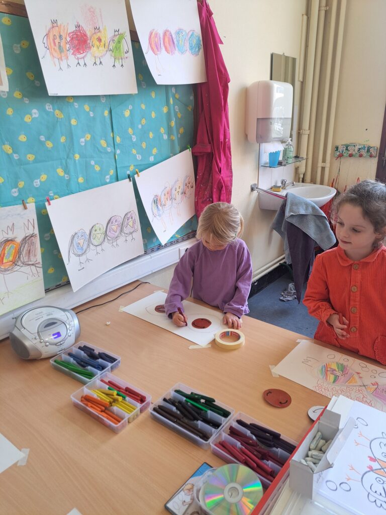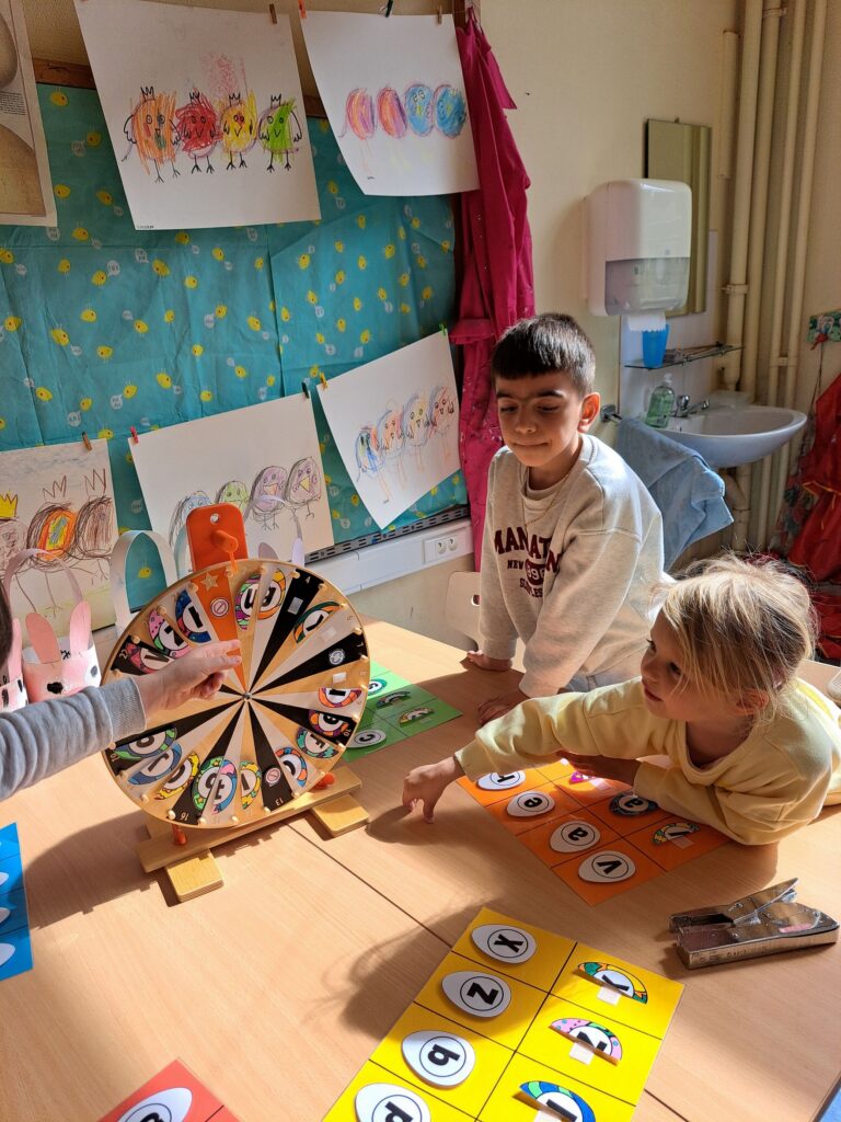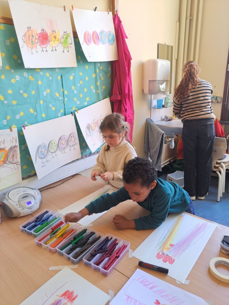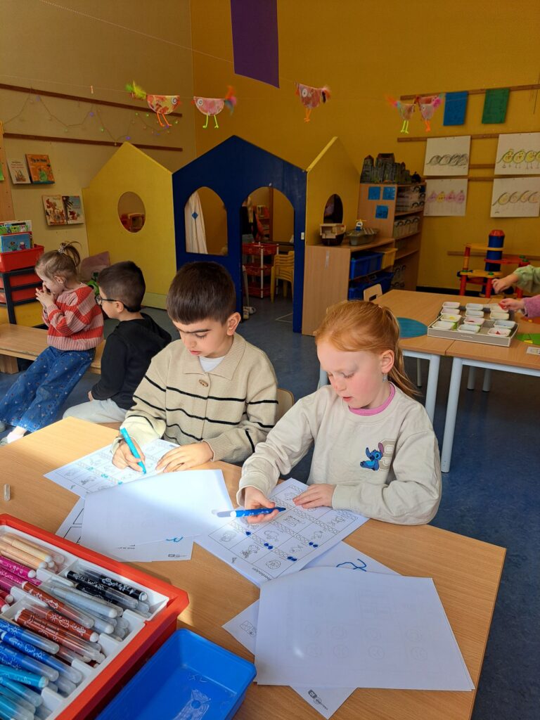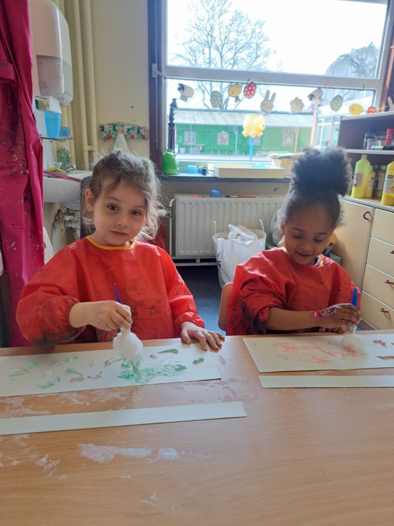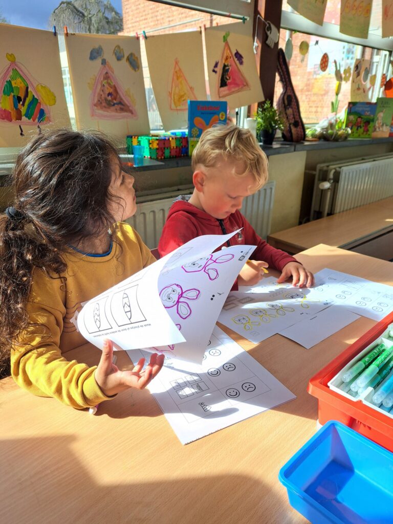 De laatste twee weken voor de paasvakantie zaten de kleuters helemaal in de paassfeer! We mochten eitjes versieren, kuikentjes ontmoeten, met de B-bot spelen, een eierzoektocht doen op de speelplaats, pijlen tekenen voor de paashaas, een paasmandje knutselen… Heel wat te beleven dus!