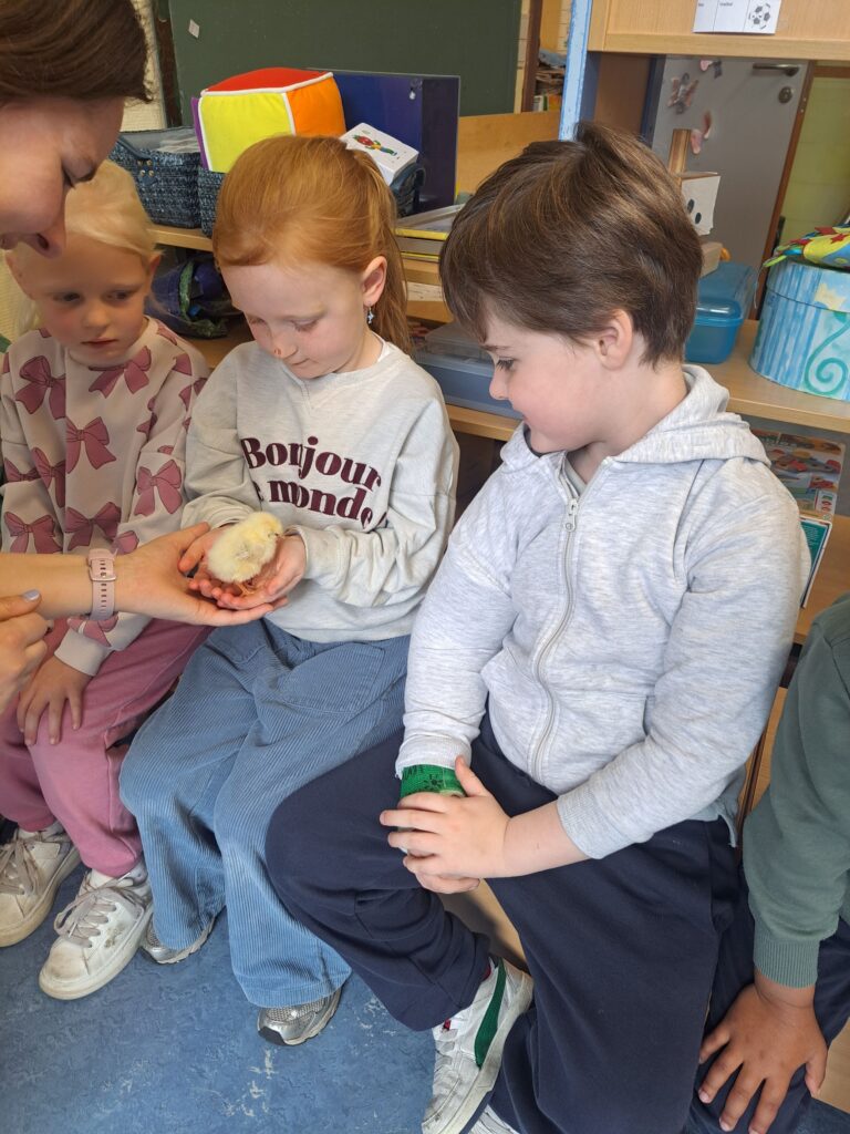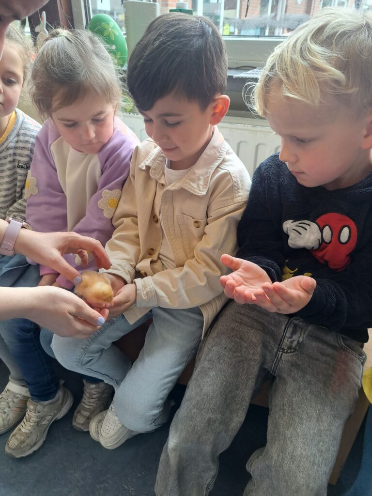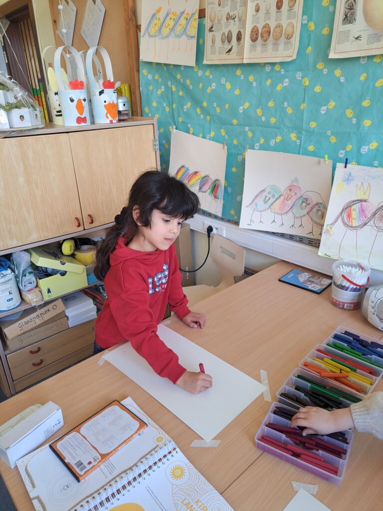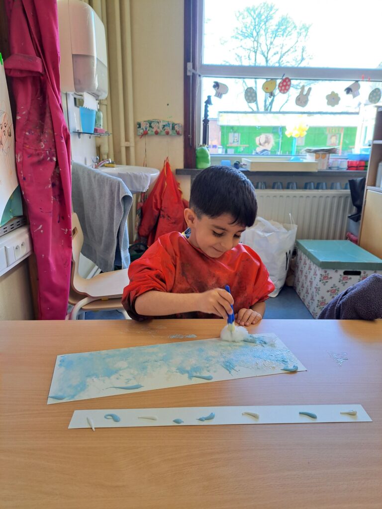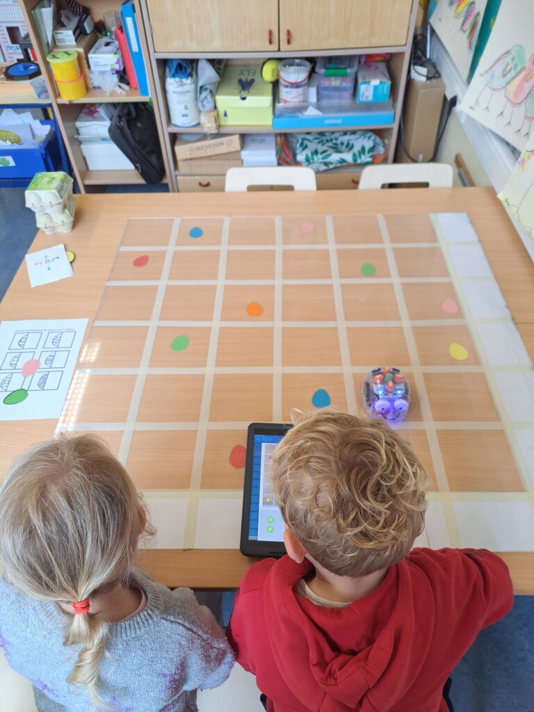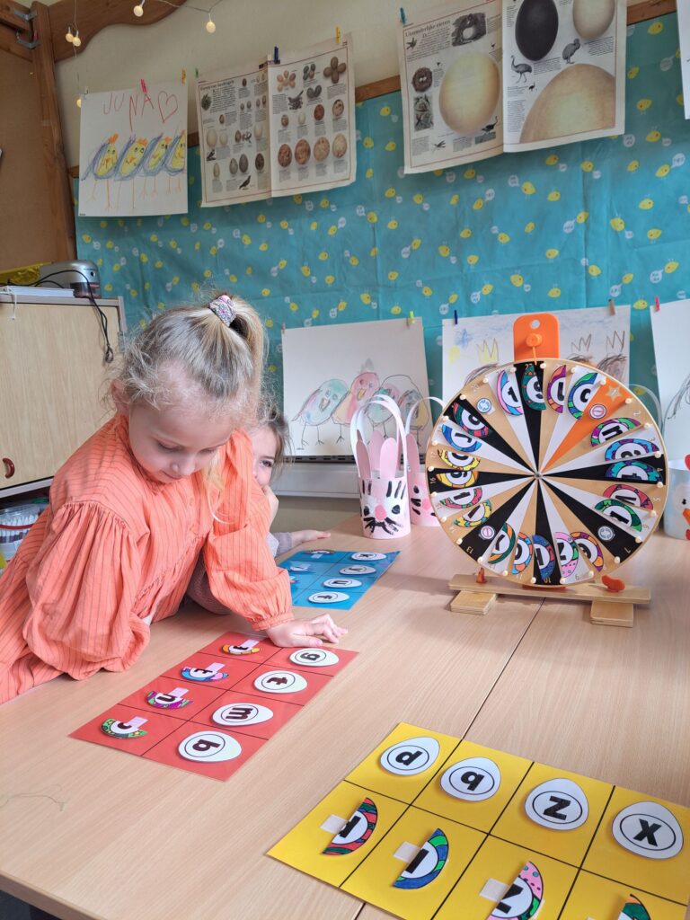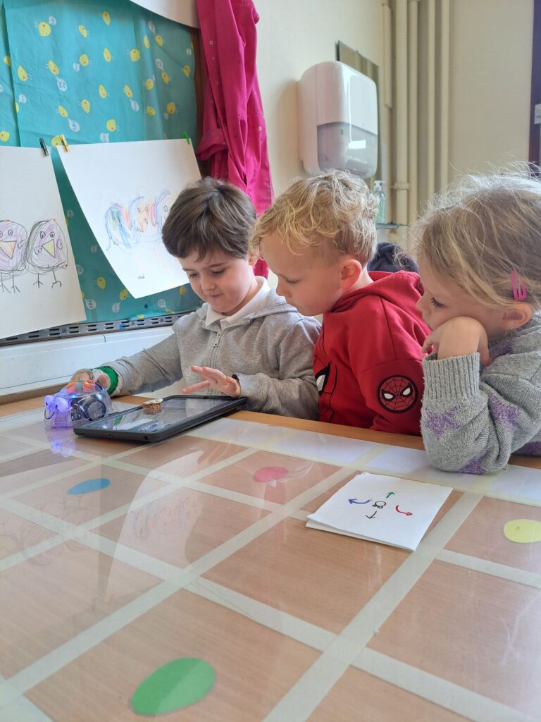 De laatste twee weken voor de paasvakantie zaten de kleuters helemaal in de paassfeer! We mochten eitjes versieren, kuikentjes ontmoeten, met de B-bot spelen, een eierzoektocht doen op de speelplaats, pijlen tekenen voor de paashaas, een paasmandje knutselen… Heel wat te beleven dus!