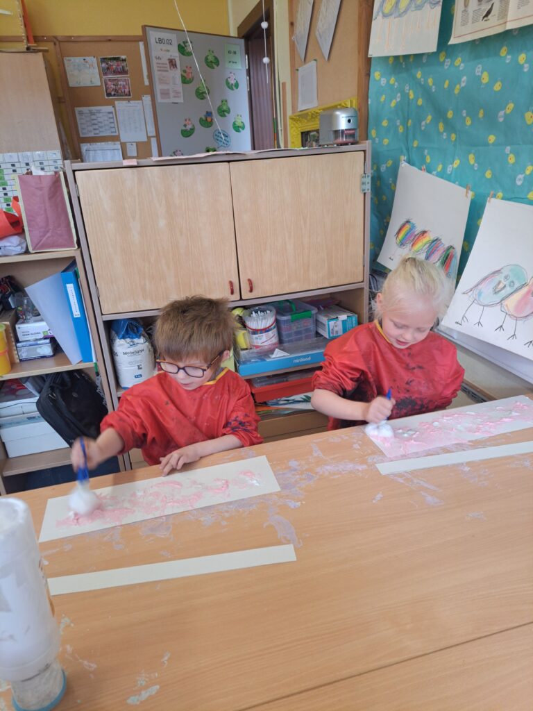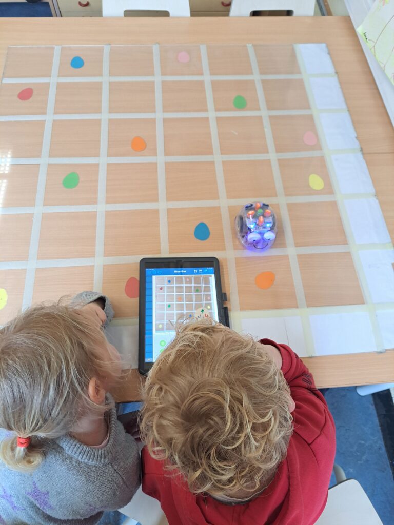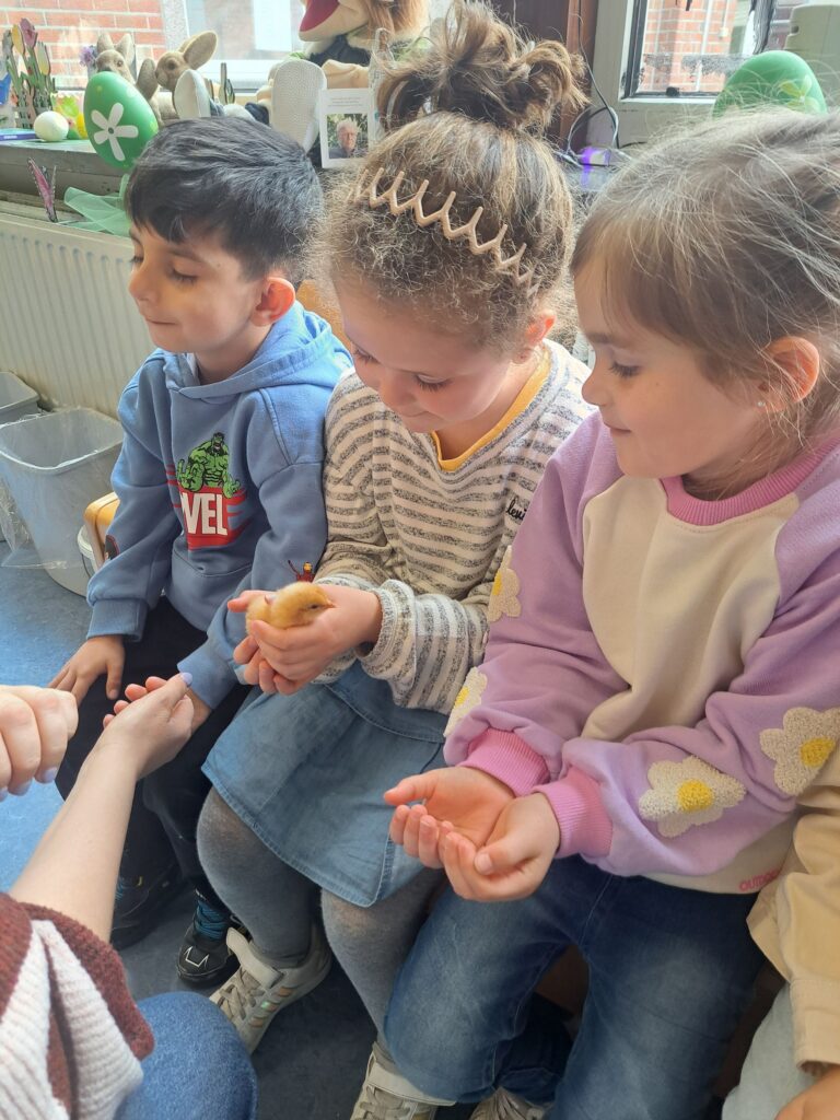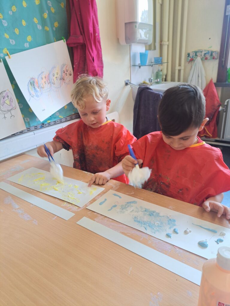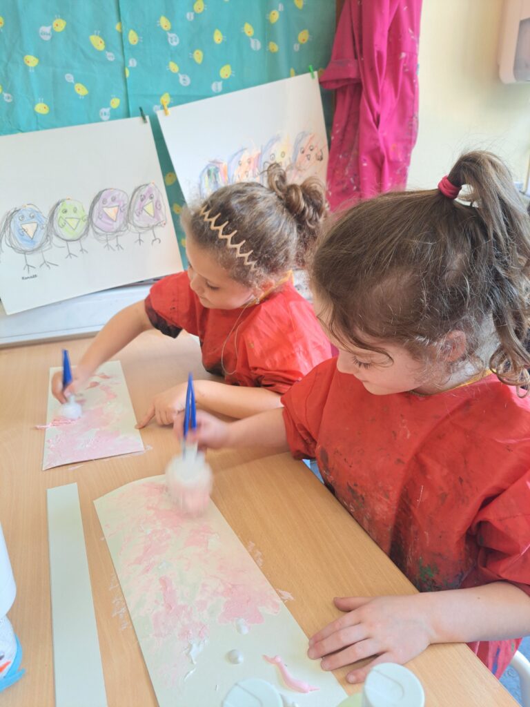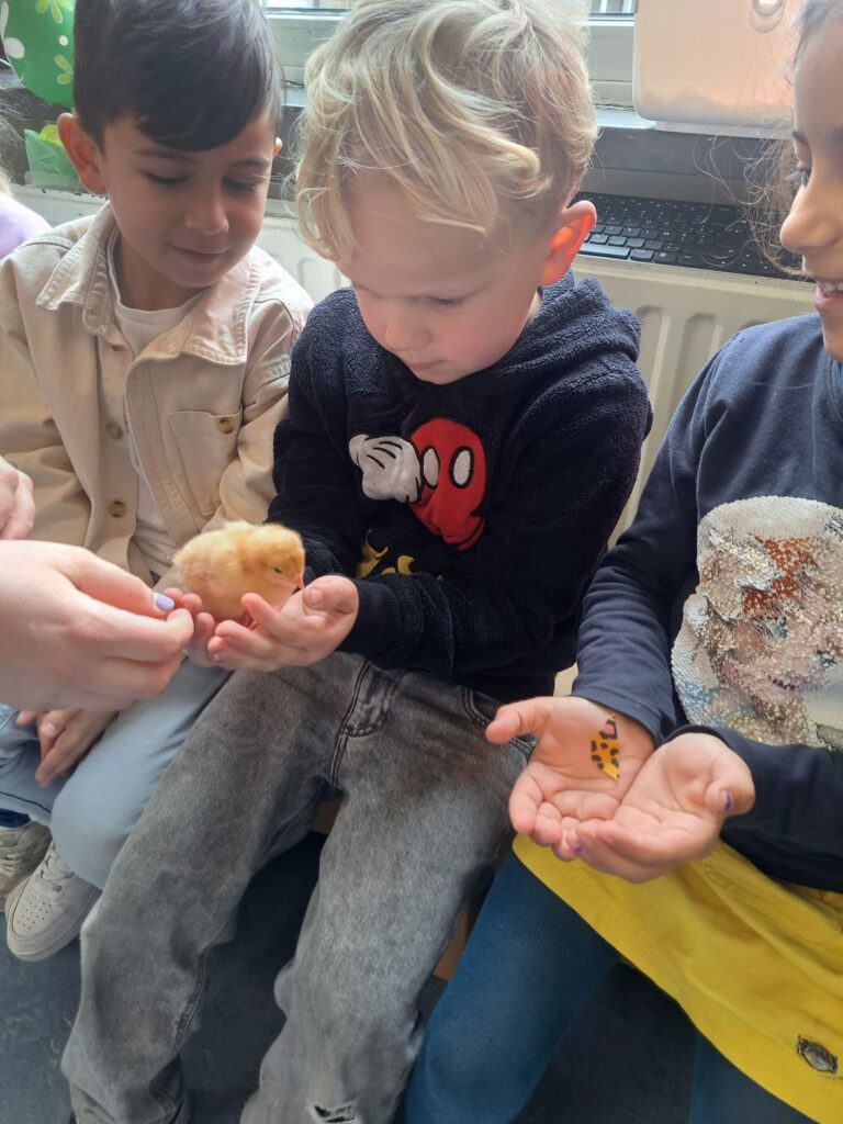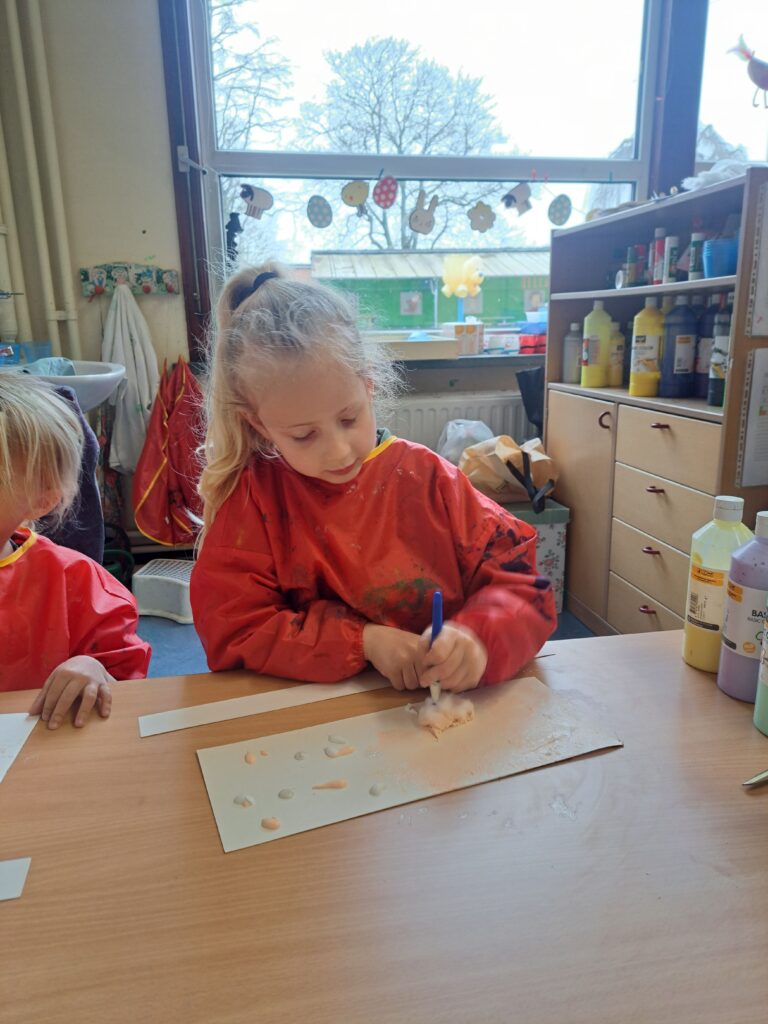 De laatste twee weken voor de paasvakantie zaten de kleuters helemaal in de paassfeer! We mochten eitjes versieren, kuikentjes ontmoeten, met de B-bot spelen, een eierzoektocht doen op de speelplaats, pijlen tekenen voor de paashaas, een paasmandje knutselen… Heel wat te beleven dus!