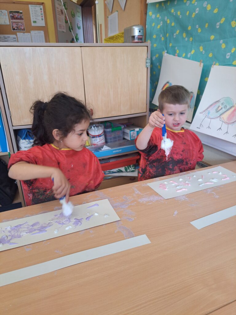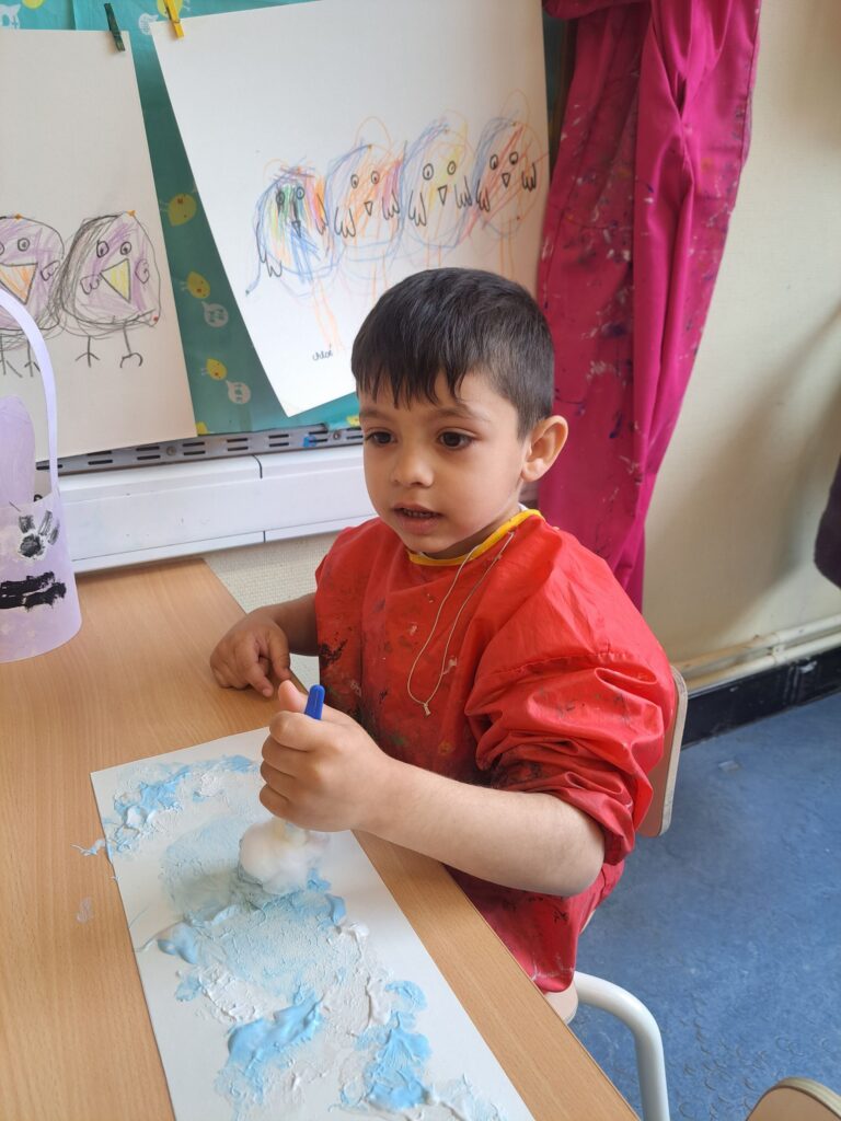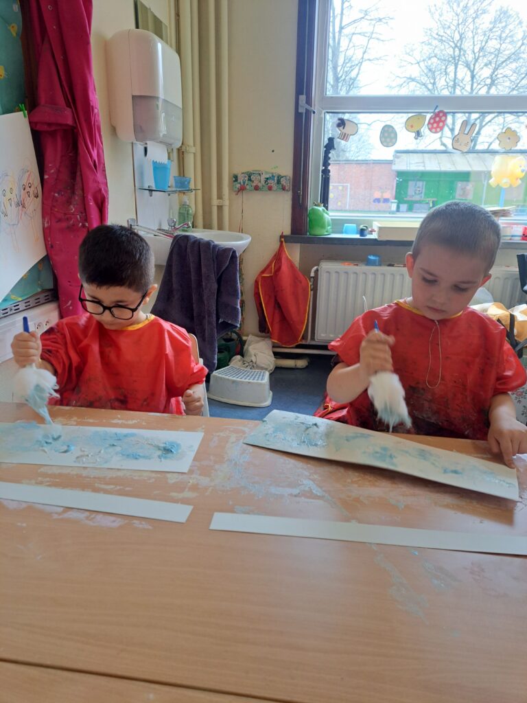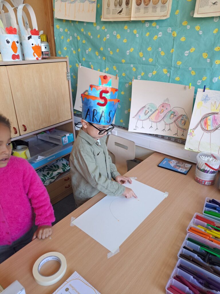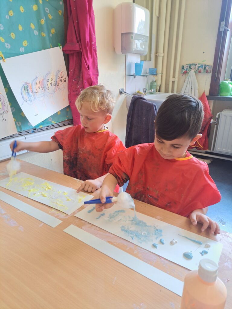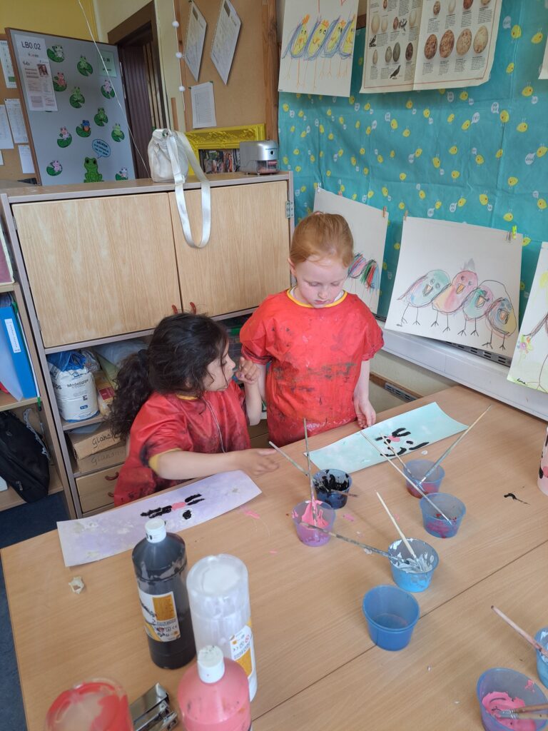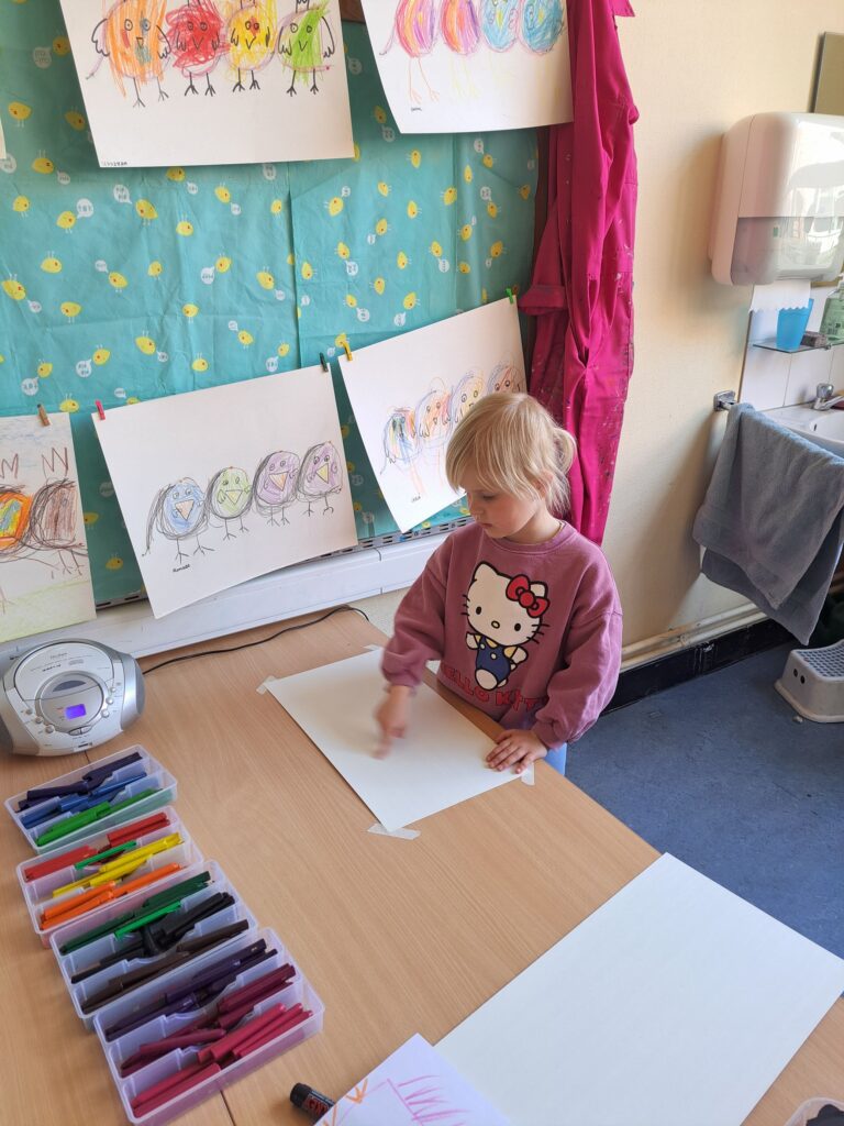 De laatste twee weken voor de paasvakantie zaten de kleuters helemaal in de paassfeer! We mochten eitjes versieren, kuikentjes ontmoeten, met de B-bot spelen, een eierzoektocht doen op de speelplaats, pijlen tekenen voor de paashaas, een paasmandje knutselen… Heel wat te beleven dus!